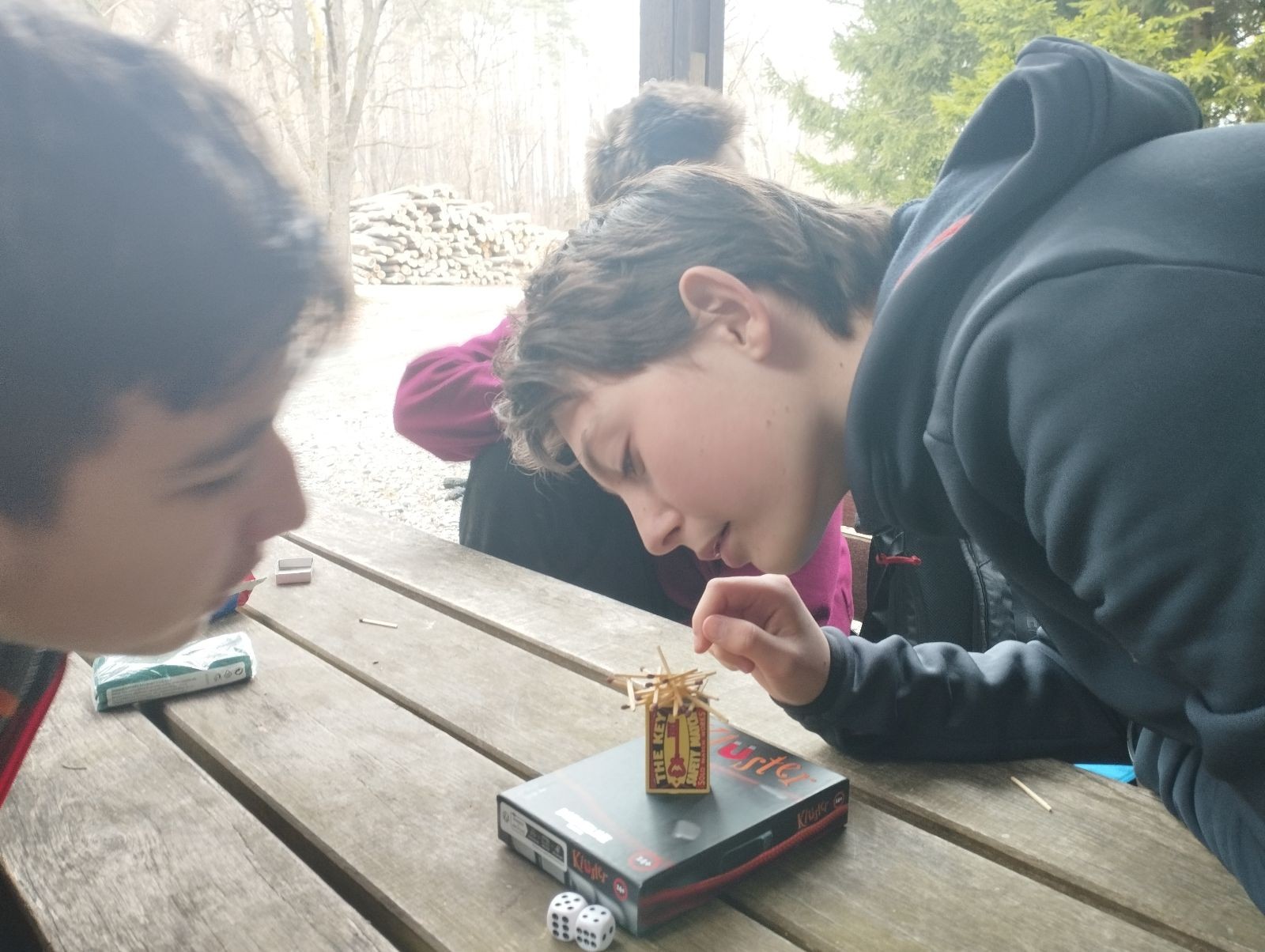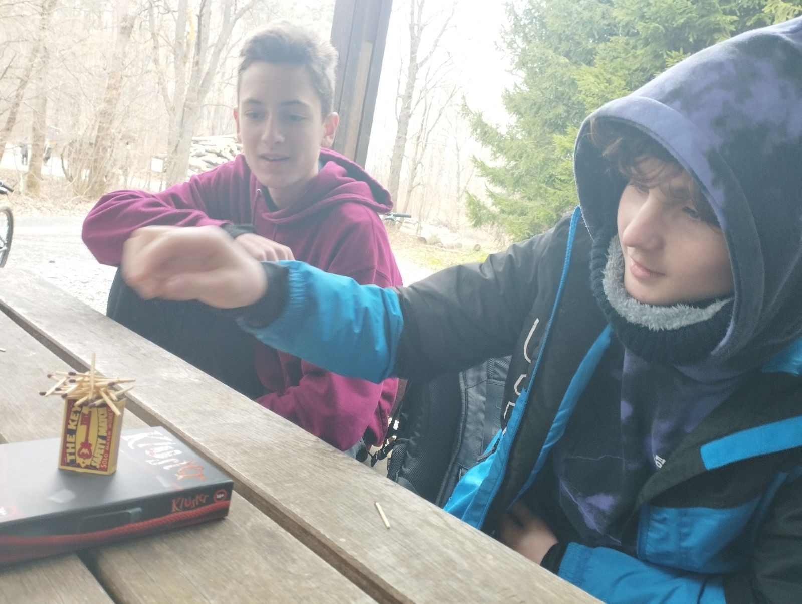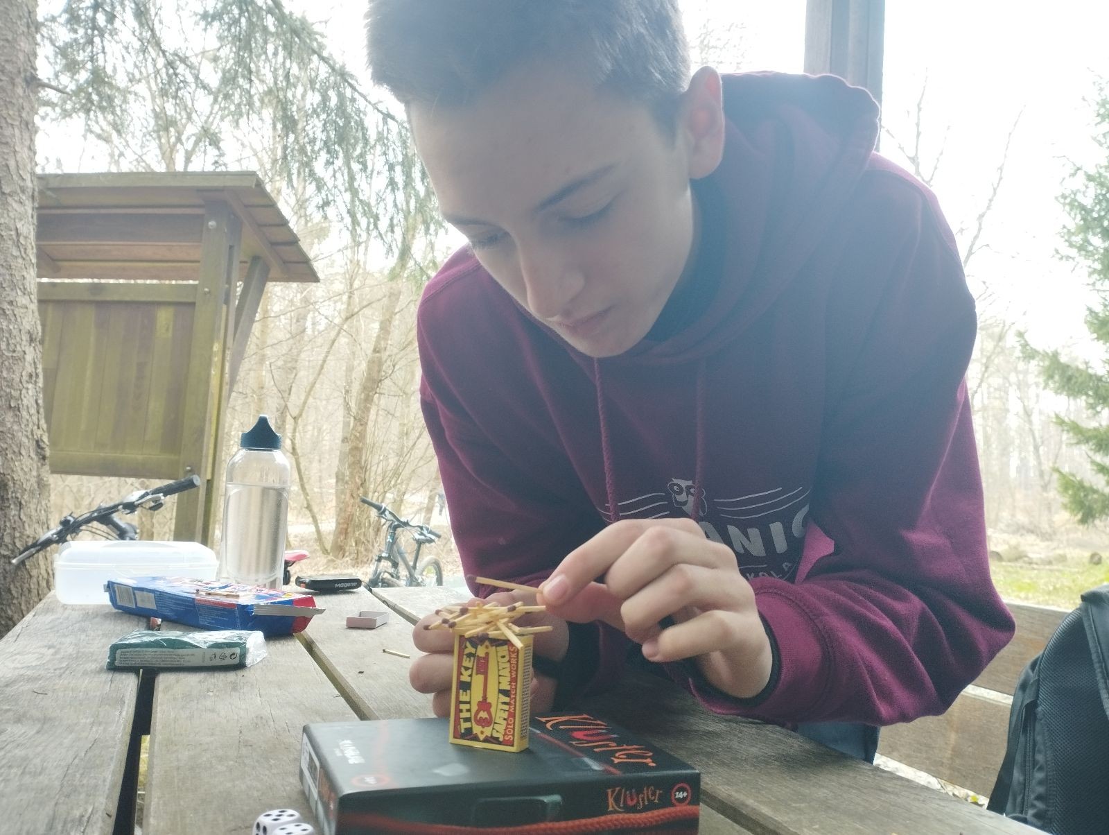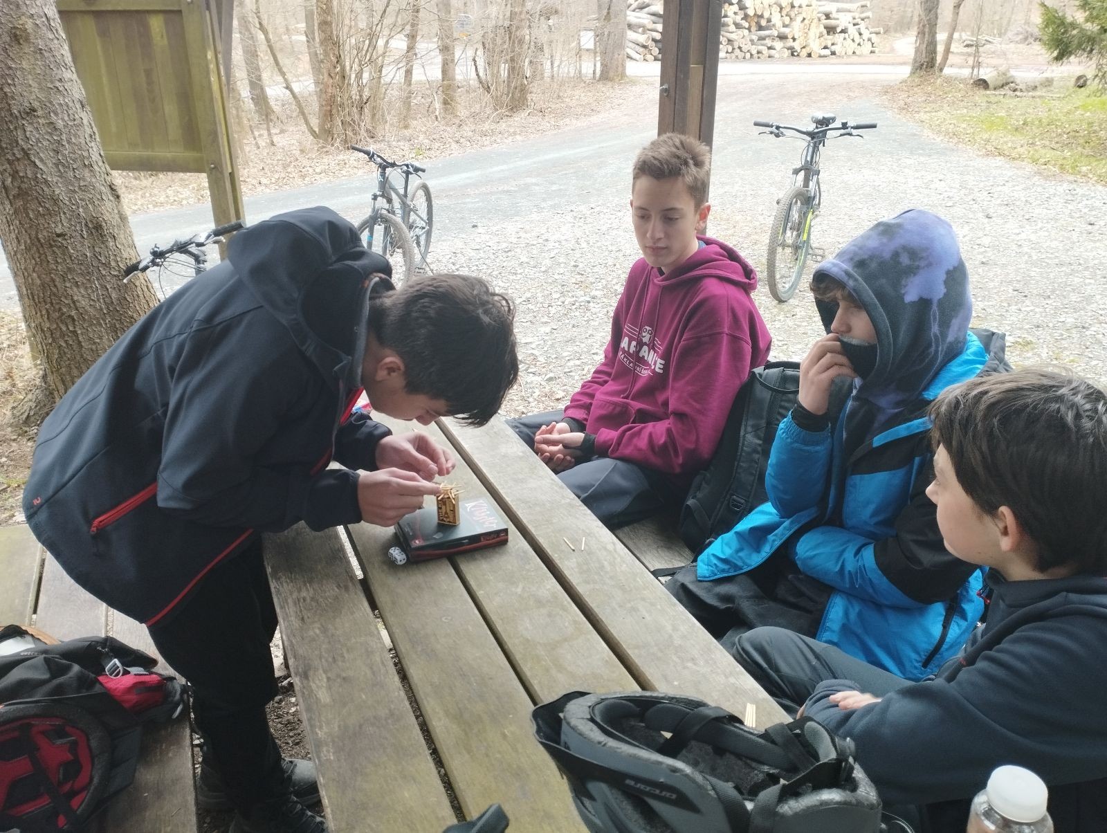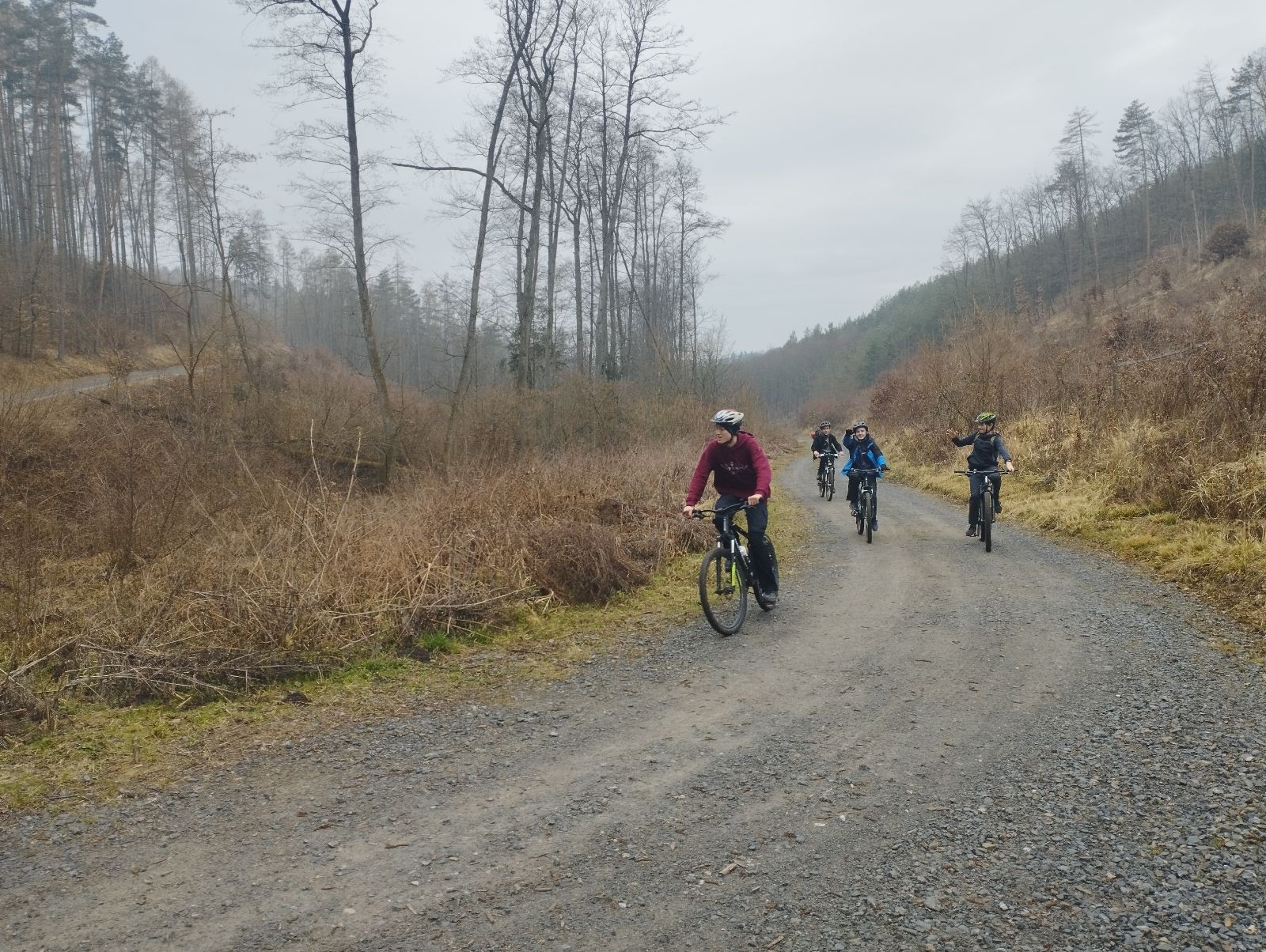Dne 31.3. jsme se setkali na Boudě v sestavě Venda, Dave, Tade, Ondra a Kloub. Prohlédli jsme si kola, počkali jsme než odejdou skauti, co šli uklidit Česko a vyrazili jsme. Cestou jsme si povídali a stavili se na hřiště, kde Dave zjistil, že mu lezou rifle do kola, a tak je s pomocí Ondry utáhli eska páskou. Jenže pak byla Davidovi zima a sundal si to. Jak jsma jeli do těch kopců, tak jsme špatně zabočili a udělali jsme nevědomky kolečko po cestě rozryté od kanců a koní. Cestou nám pak Kloub řekl, že narazíme na nějaký Z. kámen a jednoho nejmenovaného člena napadl Zrnův kámen, ale bohužel, když jsme k tomu přijeli, tak jsme zjistili, že to je Žalmanův kámen. A o pár kilometrů dál byl náš cíl Kalečník, kde jsme si dali oběd, dostali odměnu od Klouba (čokopiškoty), zahráli Macháčka a stavění věže ze sirek. Následovala cesta domů (z kopce), ve které se ve zkratce stalo: lození přes spadlé stromy, pár zastávek (jedna i na dopuštění vody a utáhnutí blatníku), občerstvení ve stánku u bobovky v Mariánu (kde se opět hrál Macháček) a rozhodlo se, že na trail nepojedeme a následná cesta domů.