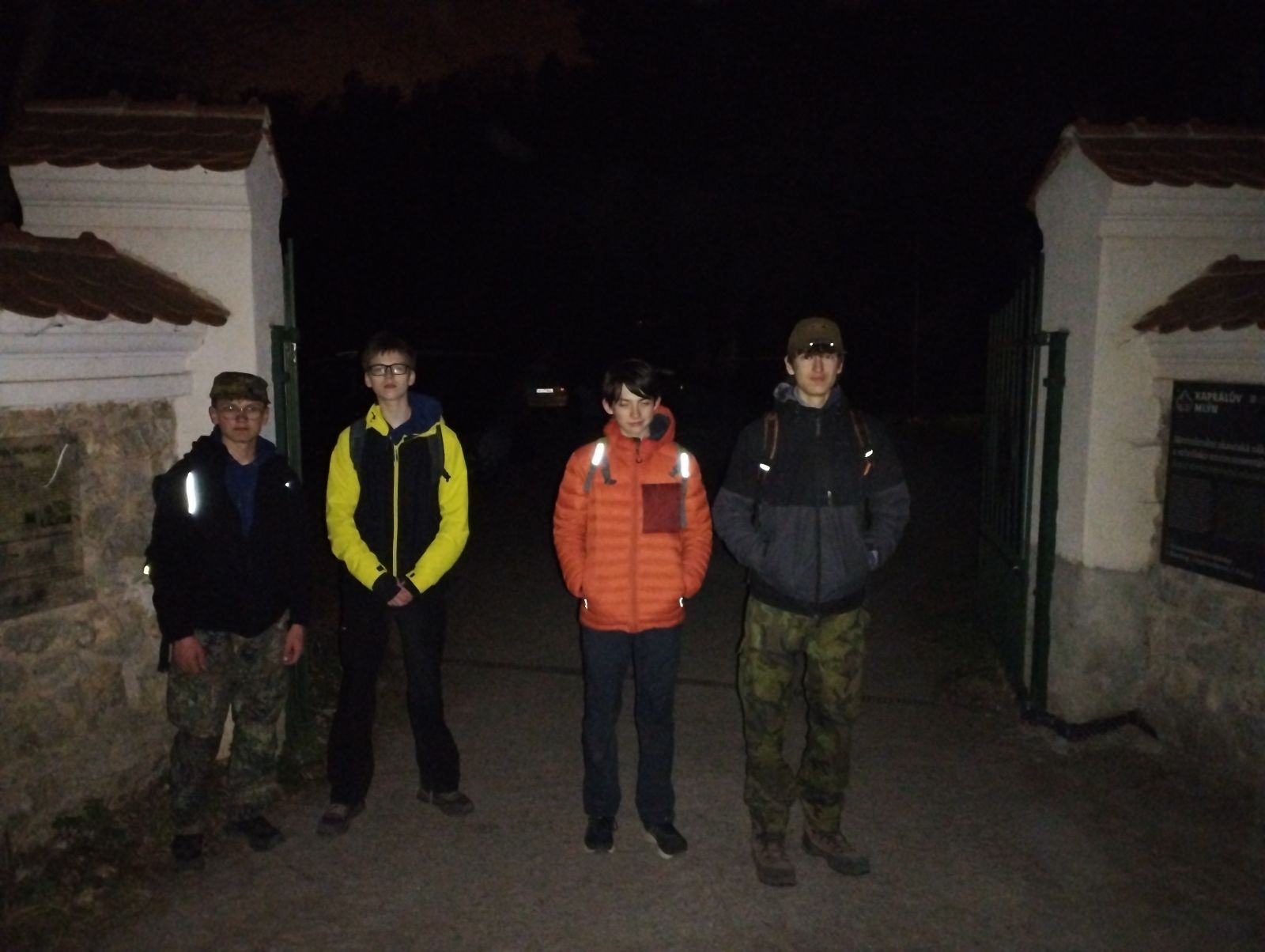 Na výpravě byl Štěpán, Junior, Ajťák, Vendelín a Kloub. Výprava probíhala nějak takhle: v 18:00 byl sraz na Boudě. V 18:29 nám jel trolejbus na Hlavní nádraží. 18:54 jsme dojeli k Hlavnímu nádraží a rychlým krokem jsme šli k vlaku, který nás zavezl do Adamova. Hned jak se dojeli do Adamova, tak jsme si udělali fotku a vydali se na cestu k rozhledně. Po cestě na rozhlednu jsme, jak je zvykem, pokoušeli zákon. Poté co jsme došli k Památníku lesníků, tak místo aby jsme šli do leva k rozhledně, tak jsme odbočili doprava od rozhledny. Poté co jsme si uvědomili omyl, tak jsme demokraticky rozhodli, zda-li se chceme otočit a jít na rozhlednu. Výsledek byl 5-0, to samozřejmě znamená že jsme šli dál. Po cestě se už začalo dost stmívat. Po delší cestě jsme došli do Babic nad Svitavou. Na konci vesnice jsme si dali menší pauzu. To někteří z nás nepochopili a vyndali všechno jídlo, co měli. Poté co jsme našli cestu po které půjdeme, tak jsme vyrazili na cestu. Když jsme šli, tak jsme našli lepší cestu, po které bychom mohli jít, tak jsme ani nenašly, tak jsme se rozhodli ji najít. Po několika minutách náhodného chození v lese jsme ji konečně našli. Po ní jsme pak došli do Kanic. Z Kanic jsme pak vyrazili do Mariánského údolí. Cestou tam jsme šli okolo Kaprálova mlýna. Po dlouhé cestě v Mariánském údolí jsme měli větší pauzu u bobovky. Od tama jsme šli až do Šlapanic. Na Boudu jsme došly cca 1:40 ráno. Tam jsme si hodili matračky na zem a šli spát. Ráno jsme měli budíček v 9:50 a v 10:00 nám končila výprava. Z výpravy nám zůstanou dobré vzpomínky a dobří pokémoni s hodně CP.