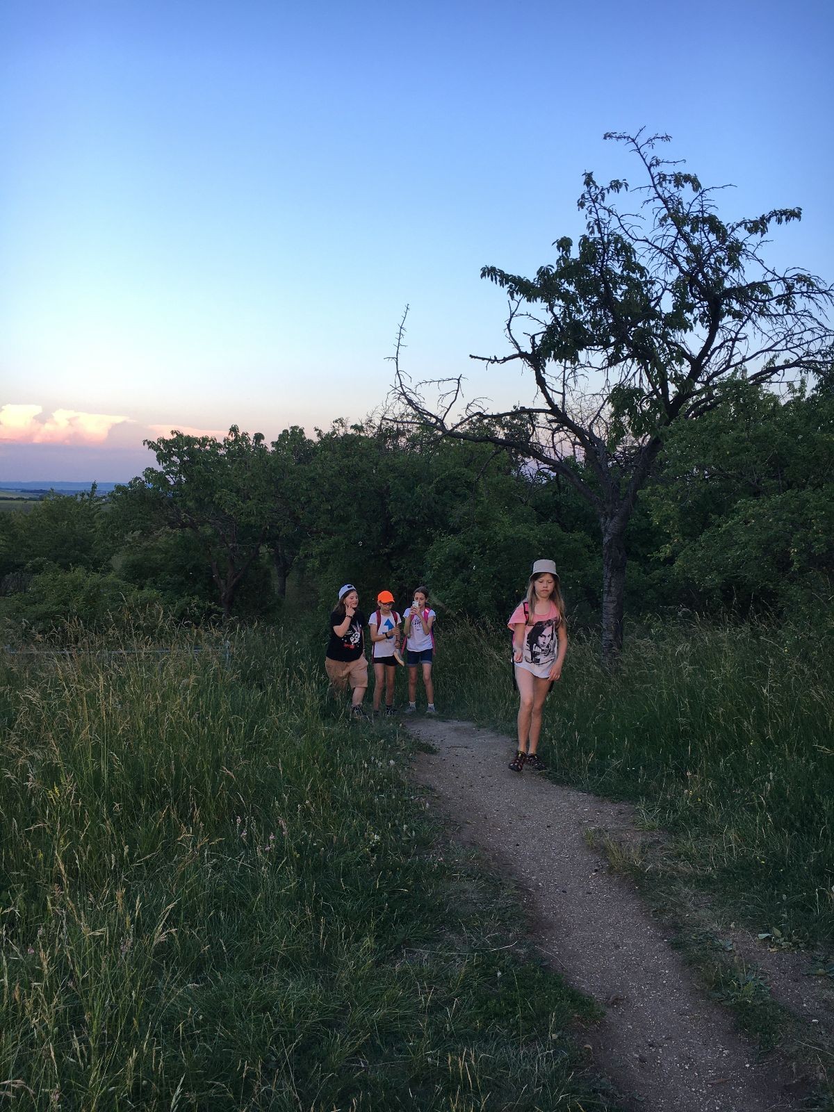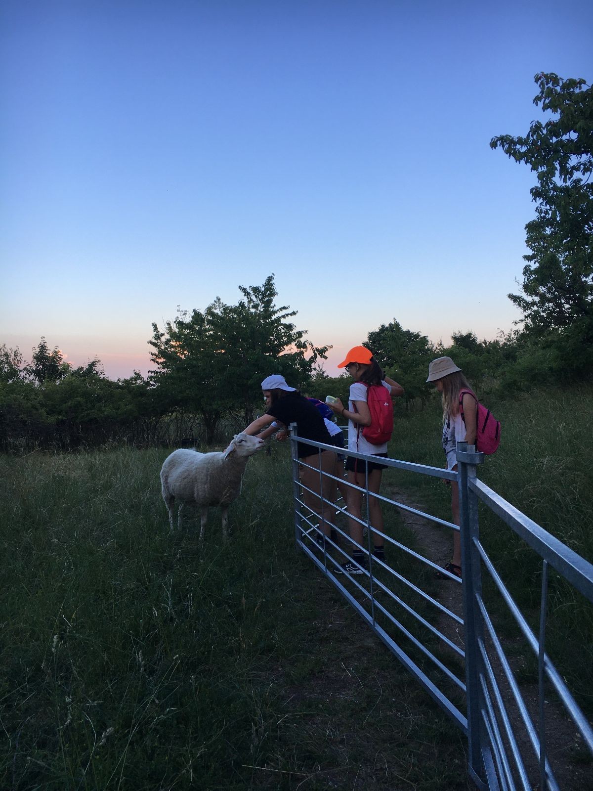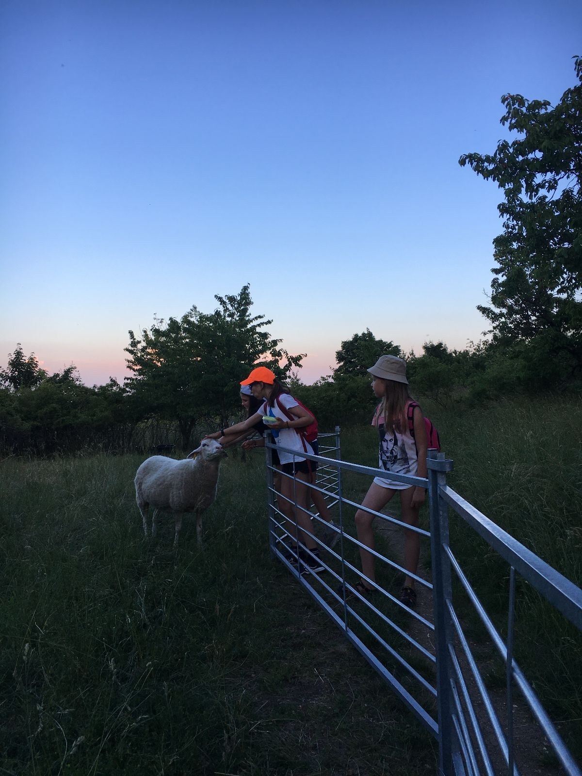 A to už se konečně ochladilo alespoň pod téměř nesnesitelných 30 stupňů. A tak jsme vyrazily na trolejbus a nejkratší cestou se vydaly směr Stránská skála. Nakoukly jsme do jeskyně, na nejvyšším bodě si daly svačinu, ale nejlepším bodem procházky byly jednoznačně ovečky a třešně. Když byly holky dostatečně nasyceny třešněmi a ovce byly dostatečně podrbány, vyrazili jsme na zastávku a pomalu se vracely nazpět na Boudu. Tam holky pod vedením hlavní firewoman Julči rozdělaly oheň. Někdo opekl špekáček, někdo hermelín a někdo ještě dojídal tousty, které zbyly ze svačiny.