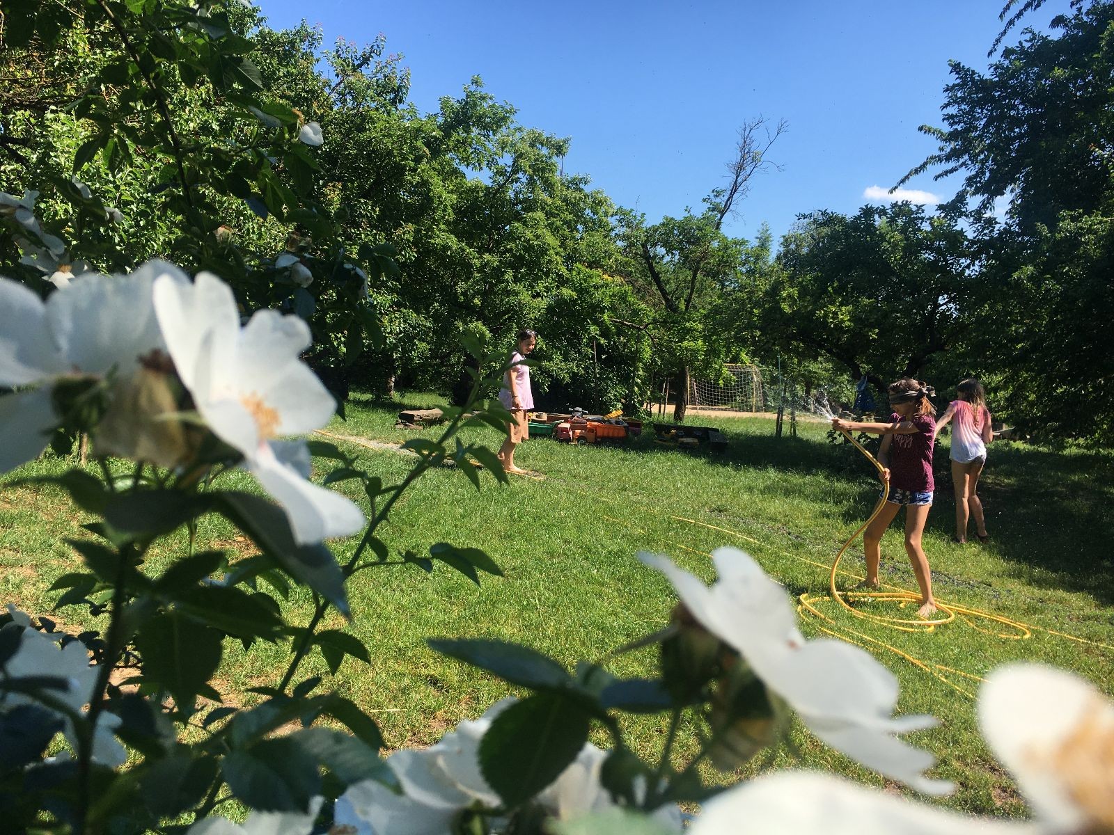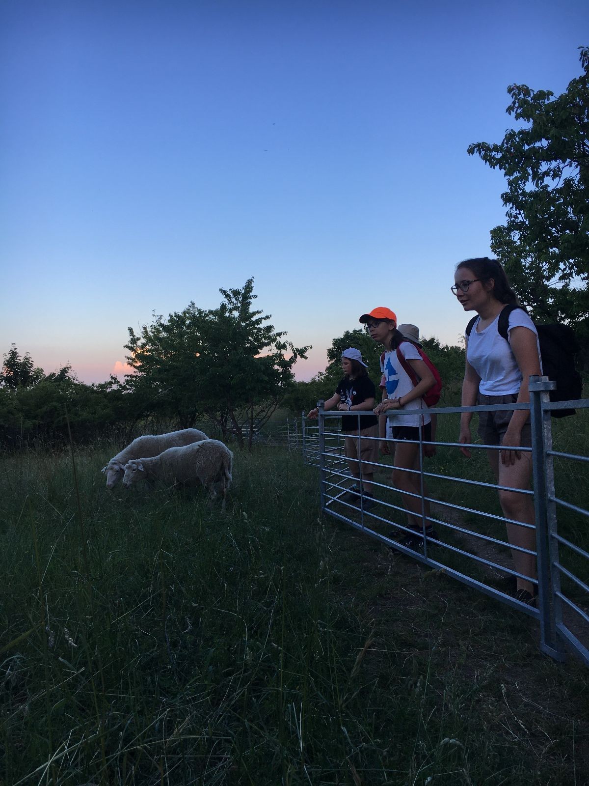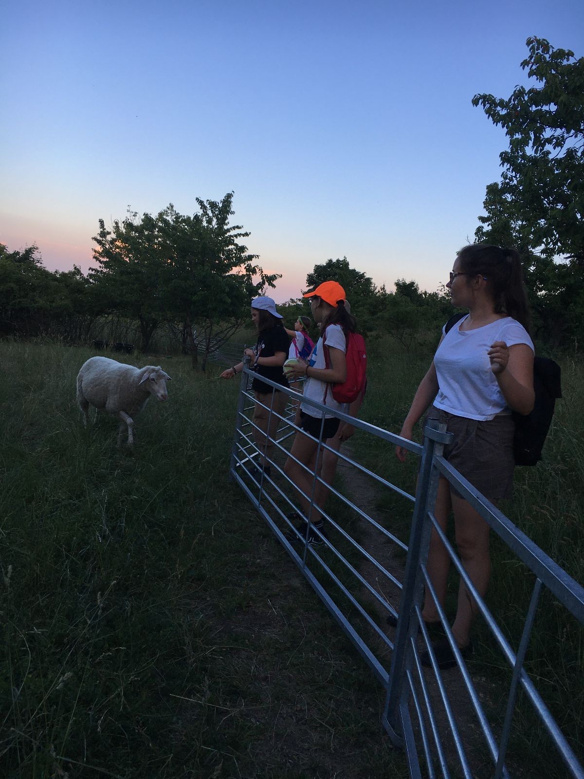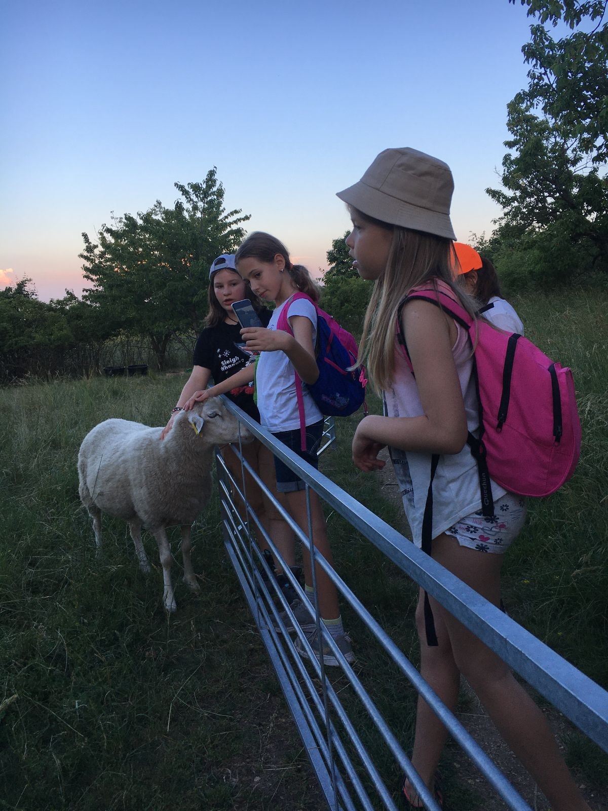 A to už se konečně ochladilo alespoň pod téměř nesnesitelných 30 stupňů. A tak jsme vyrazily na trolejbus a nejkratší cestou se vydaly směr Stránská skála. Nakoukly jsme do jeskyně, na nejvyšším bodě si daly svačinu, ale nejlepším bodem procházky byly jednoznačně ovečky a třešně. Když byly holky dostatečně nasyceny třešněmi a ovce byly dostatečně podrbány, vyrazili jsme na zastávku a pomalu se vracely nazpět na Boudu. Tam holky pod vedením hlavní firewoman Julči rozdělaly oheň. Někdo opekl špekáček, někdo hermelín a někdo ještě dojídal tousty, které zbyly ze svačiny.