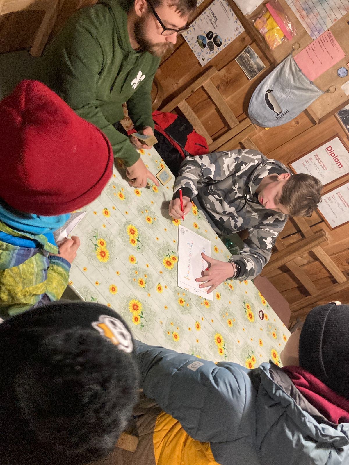 My s Fandou jsme během toho rozdělili týmy. Účast byla krásným 29 dětiček a 14 vedoucích.