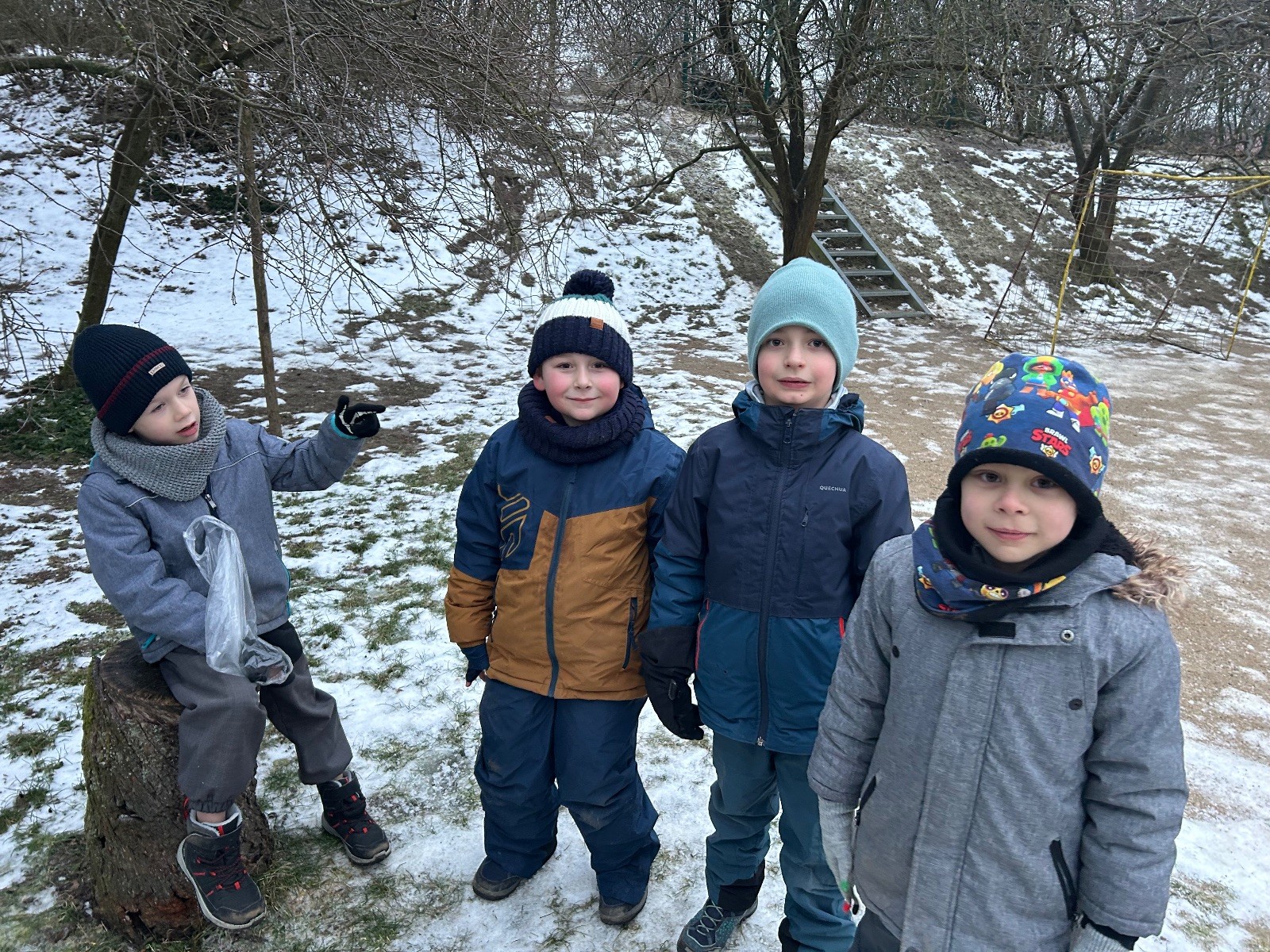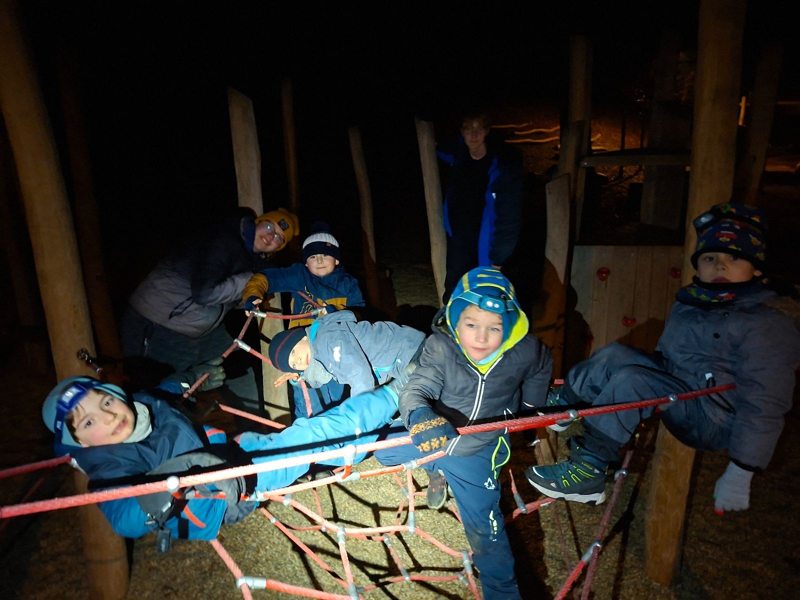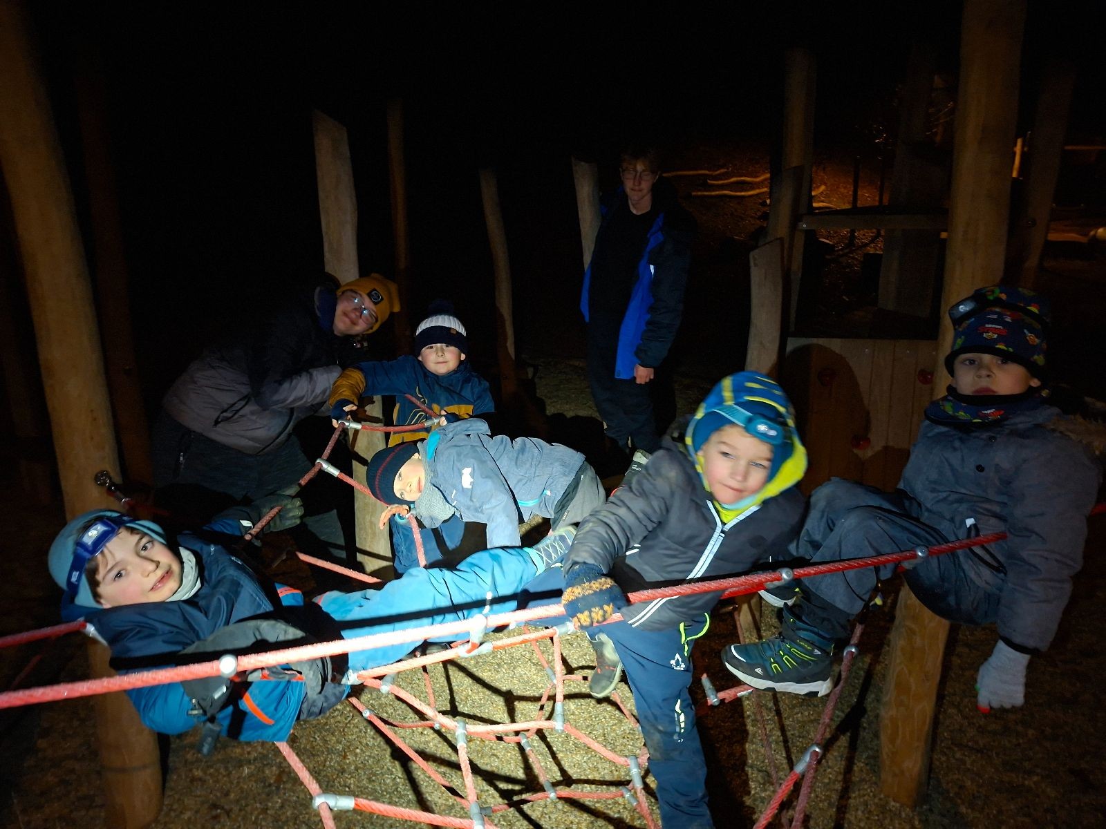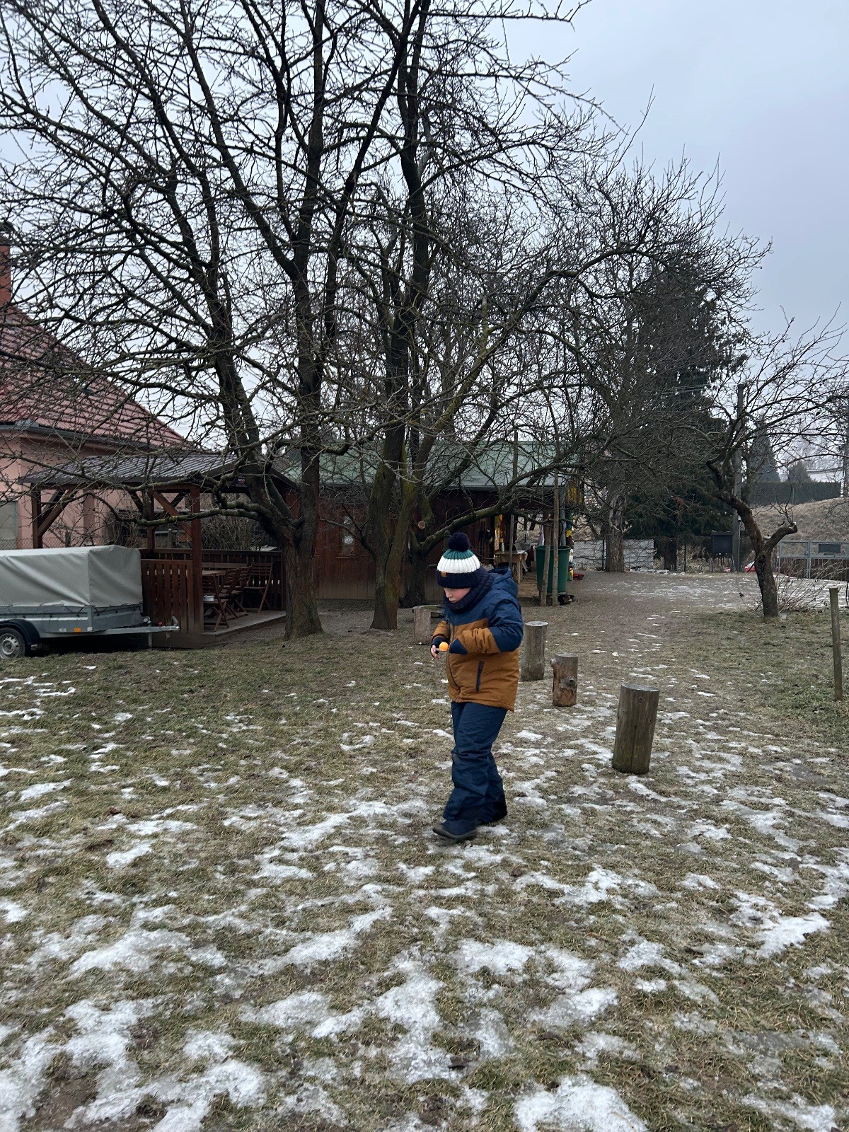 Sešli jsme se na schůzce v pěkném počtu pěti dětí a hned jsme se vrhli na první aktivitu, opičí dráhu po zahradě. Přestože bylo vše namrzlé, kluci to zvládli skvěle a obešlo se to bez jediného pádu. Poté jsme si dali svačinu a zahráli si Babylonskou věž. Jak se začalo smrákat, vydali jsme se na noční procházku Šlapanicemi. Cestou jsme hráli hru Bomba, potopa, nálet, i když větší problém než samotná hra nám dělalo náledí. I přesto jsme se všichni vrátili na boudu zdraví a v pořádku.