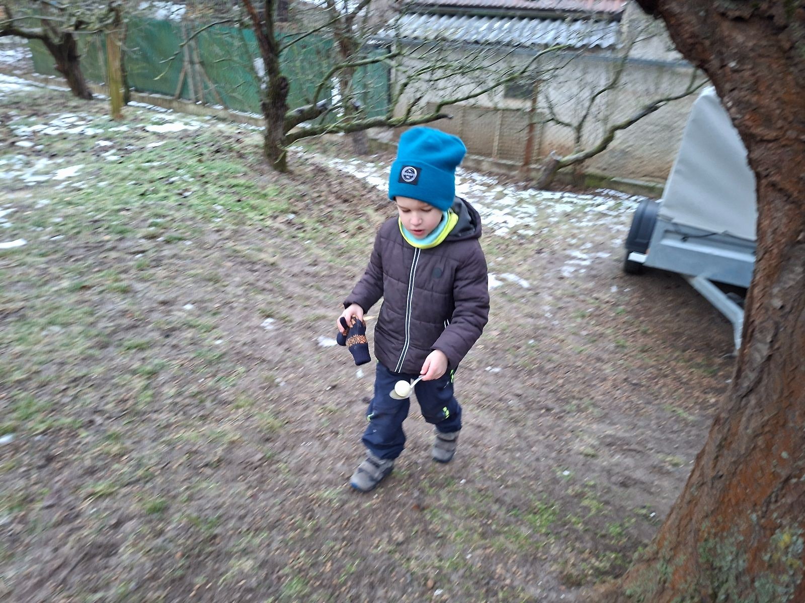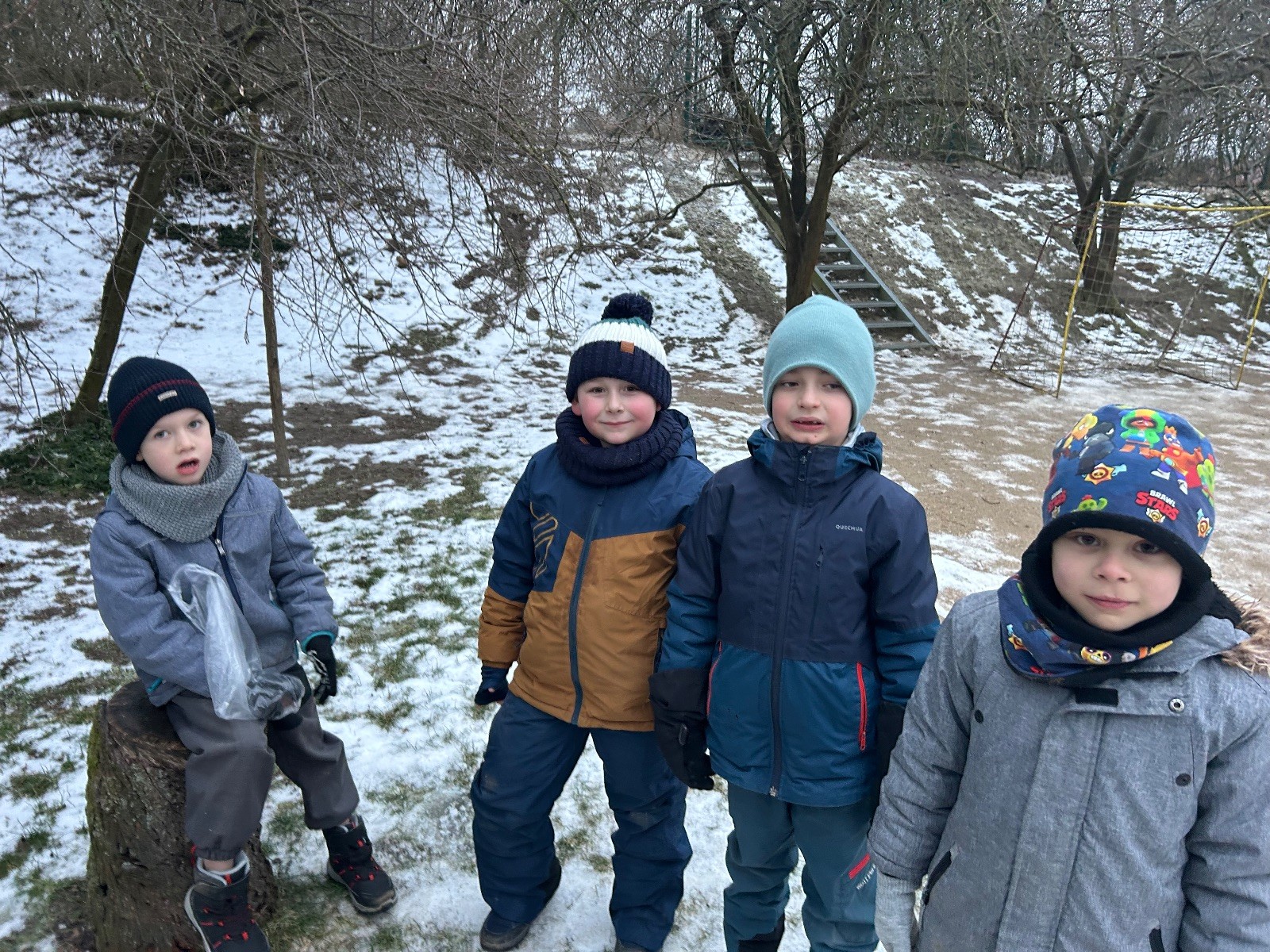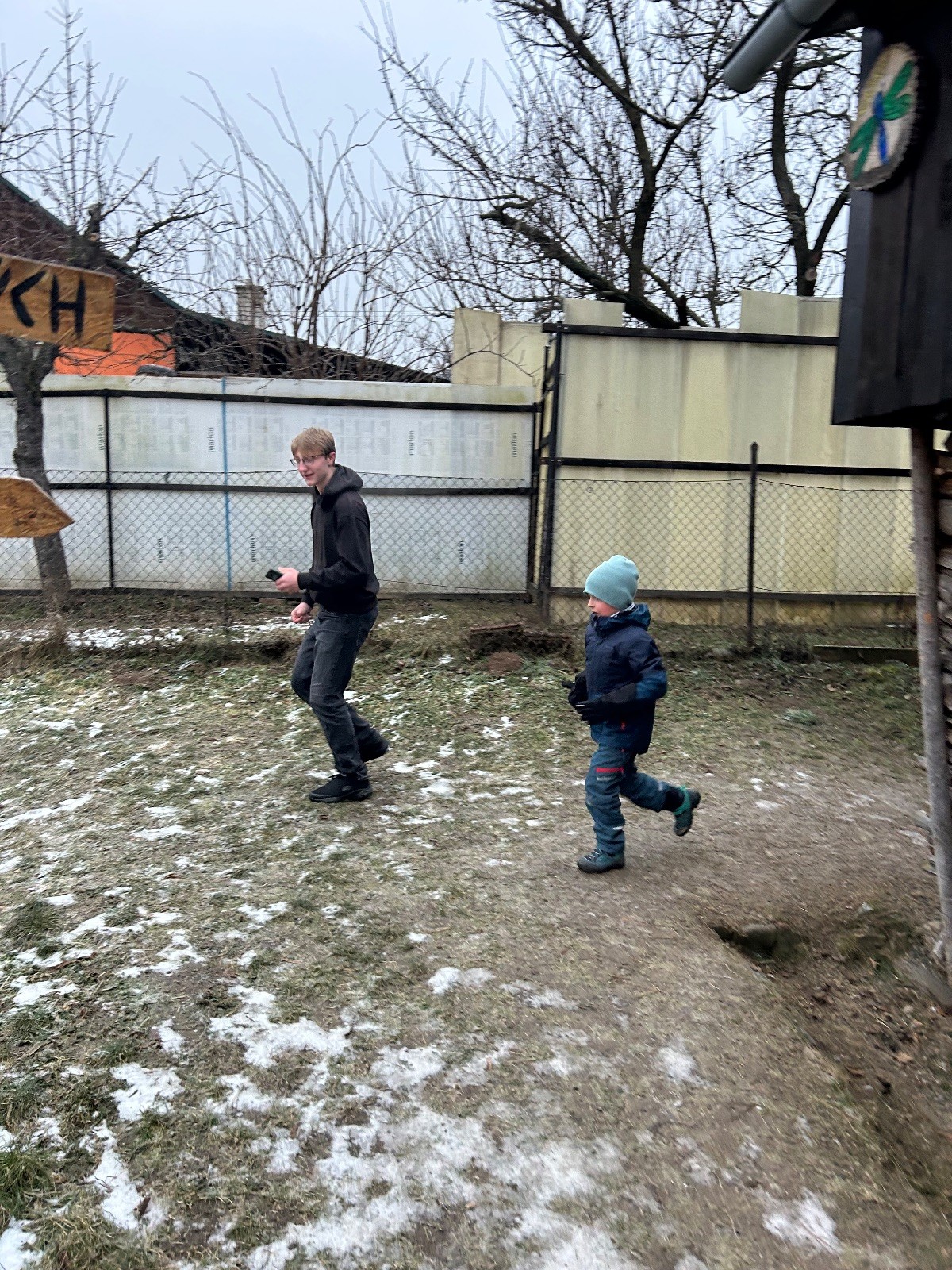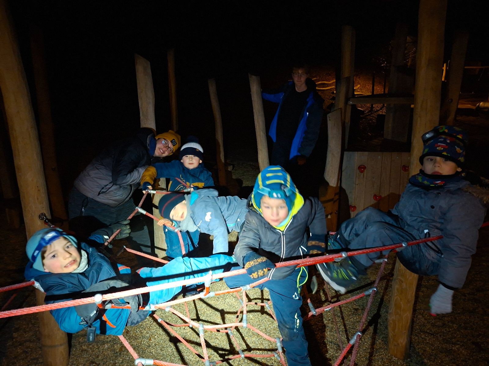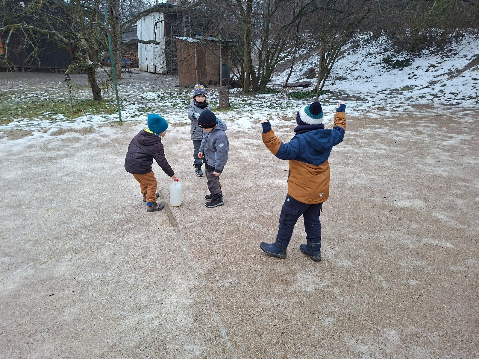 Sešli jsme se na schůzce v pěkném počtu pěti dětí a hned jsme se vrhli na první aktivitu, opičí dráhu po zahradě. Přestože bylo vše namrzlé, kluci to zvládli skvěle a obešlo se to bez jediného pádu. Poté jsme si dali svačinu a zahráli si Babylonskou věž. Jak se začalo smrákat, vydali jsme se na noční procházku Šlapanicemi. Cestou jsme hráli hru Bomba, potopa, nálet, i když větší problém než samotná hra nám dělalo náledí. I přesto jsme se všichni vrátili na boudu zdraví a v pořádku.