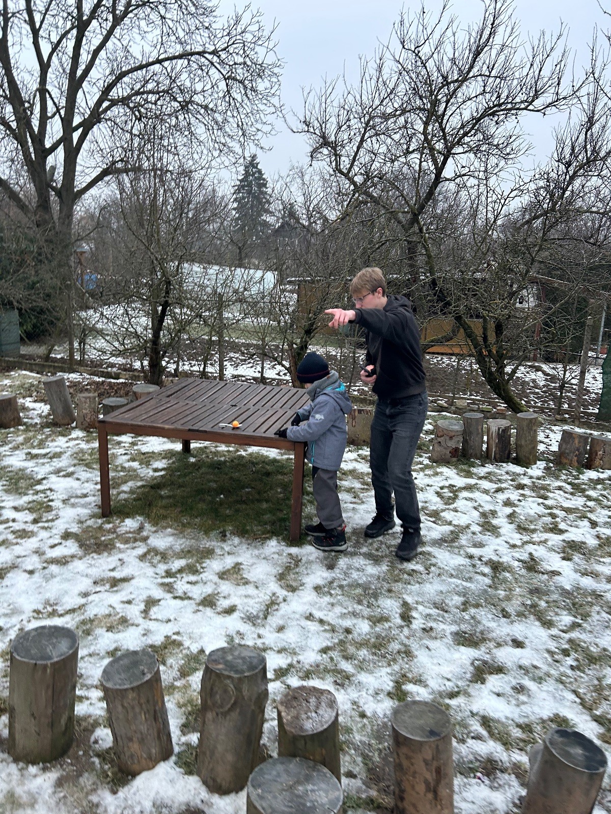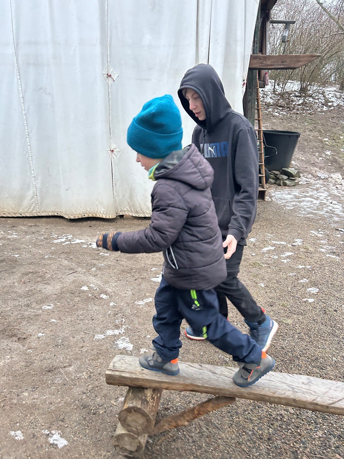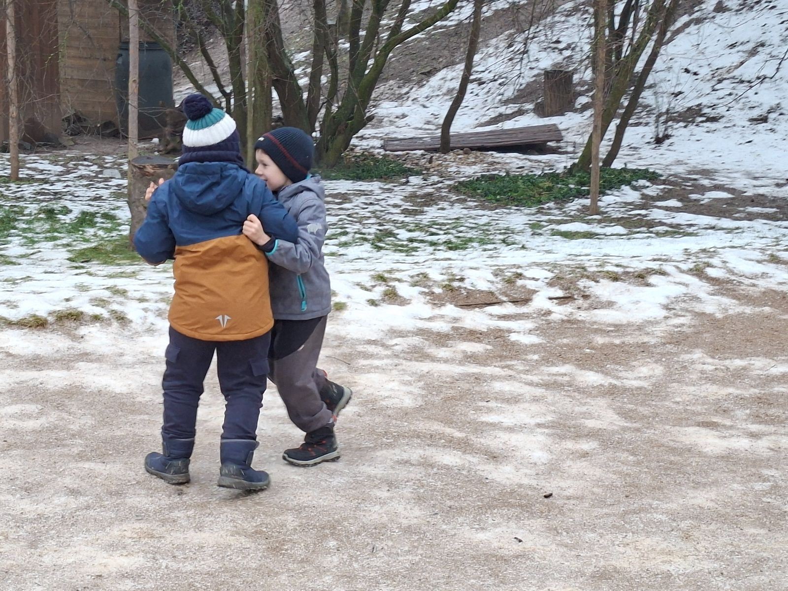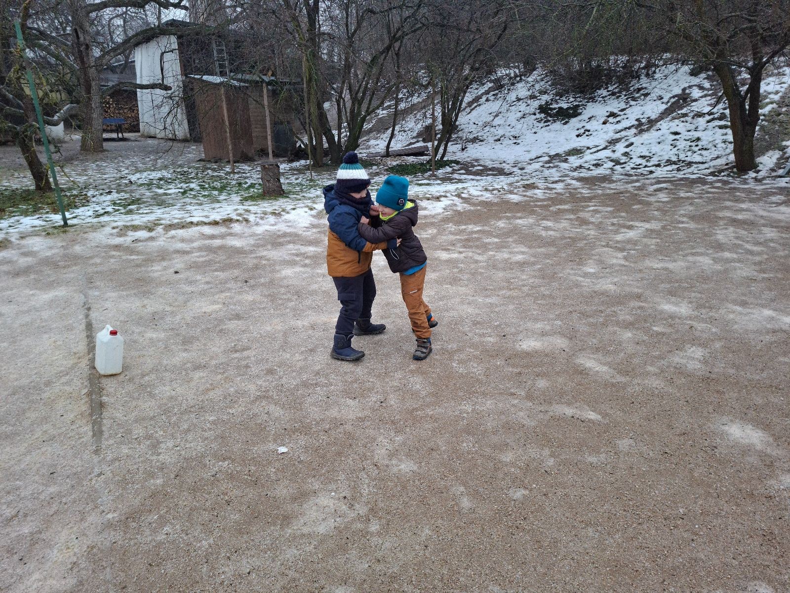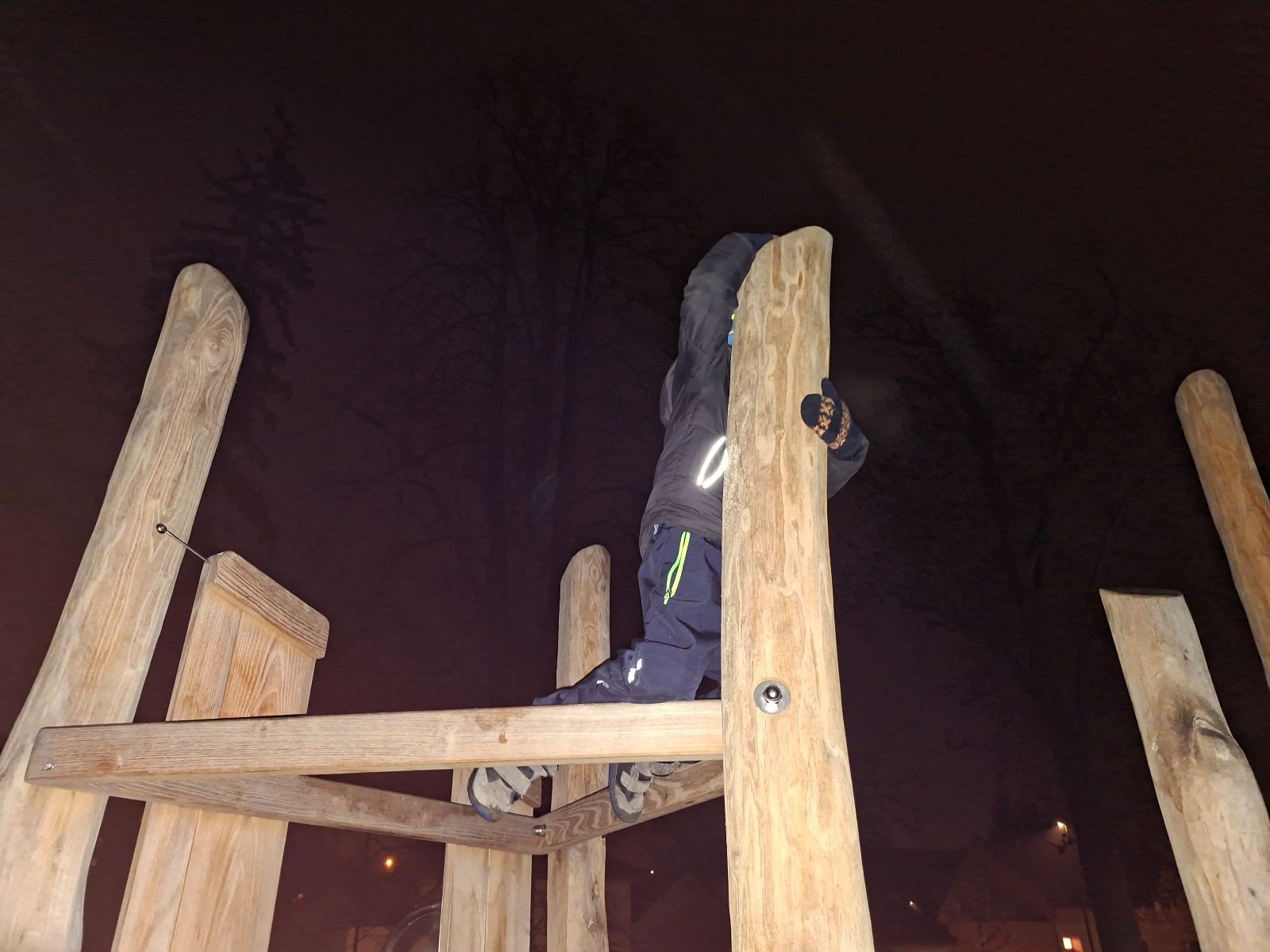 Sešli jsme se na schůzce v pěkném počtu pěti dětí a hned jsme se vrhli na první aktivitu, opičí dráhu po zahradě. Přestože bylo vše namrzlé, kluci to zvládli skvěle a obešlo se to bez jediného pádu. Poté jsme si dali svačinu a zahráli si Babylonskou věž. Jak se začalo smrákat, vydali jsme se na noční procházku Šlapanicemi. Cestou jsme hráli hru Bomba, potopa, nálet, i když větší problém než samotná hra nám dělalo náledí. I přesto jsme se všichni vrátili na boudu zdraví a v pořádku.