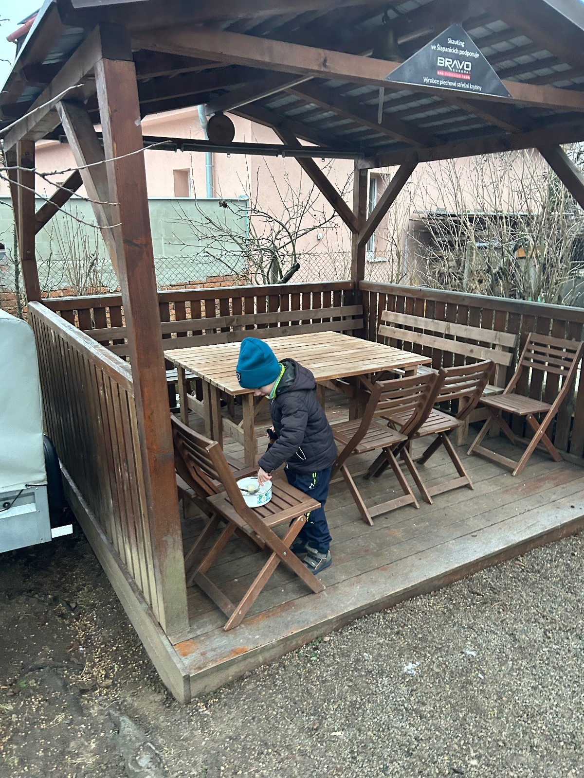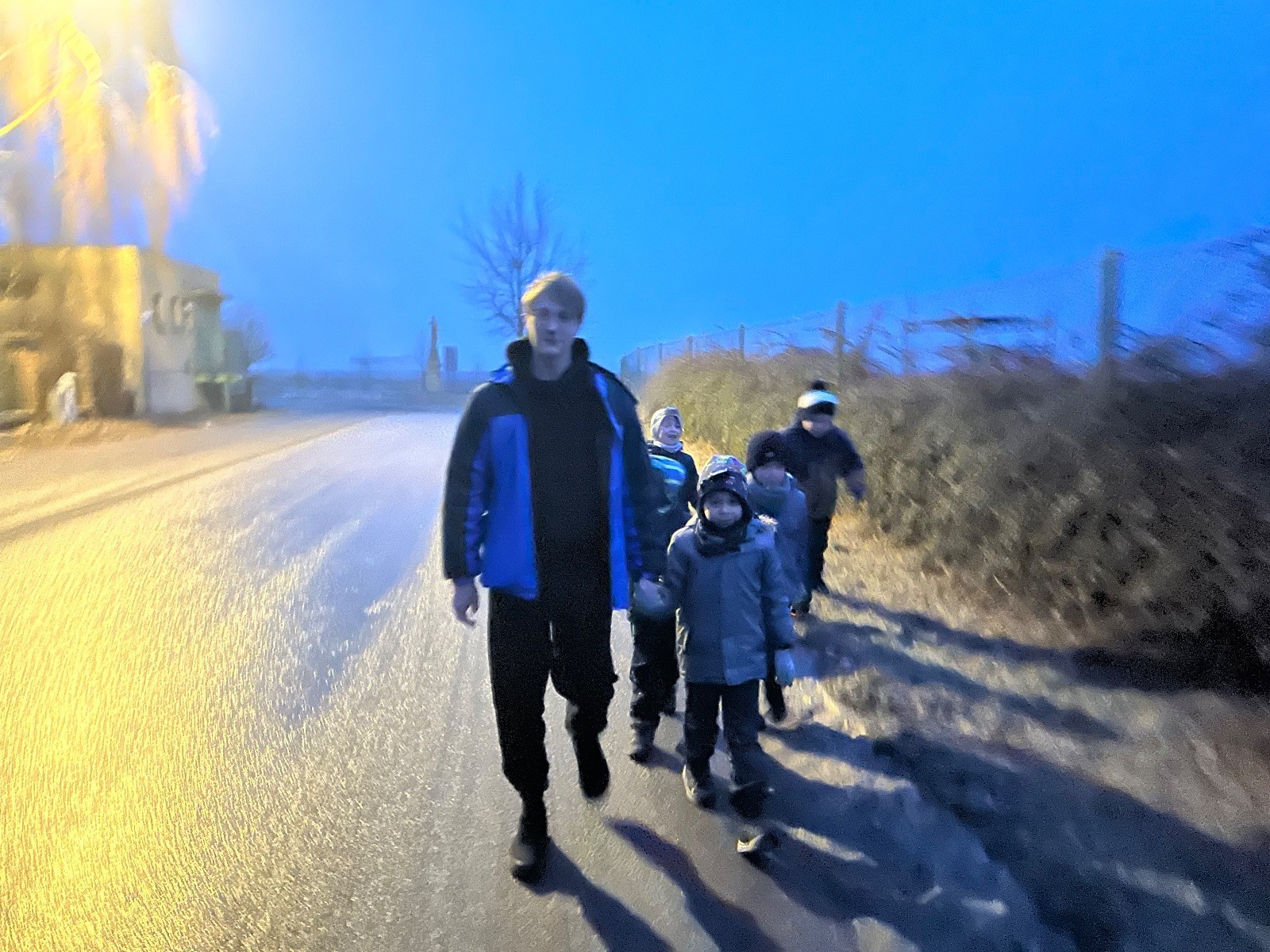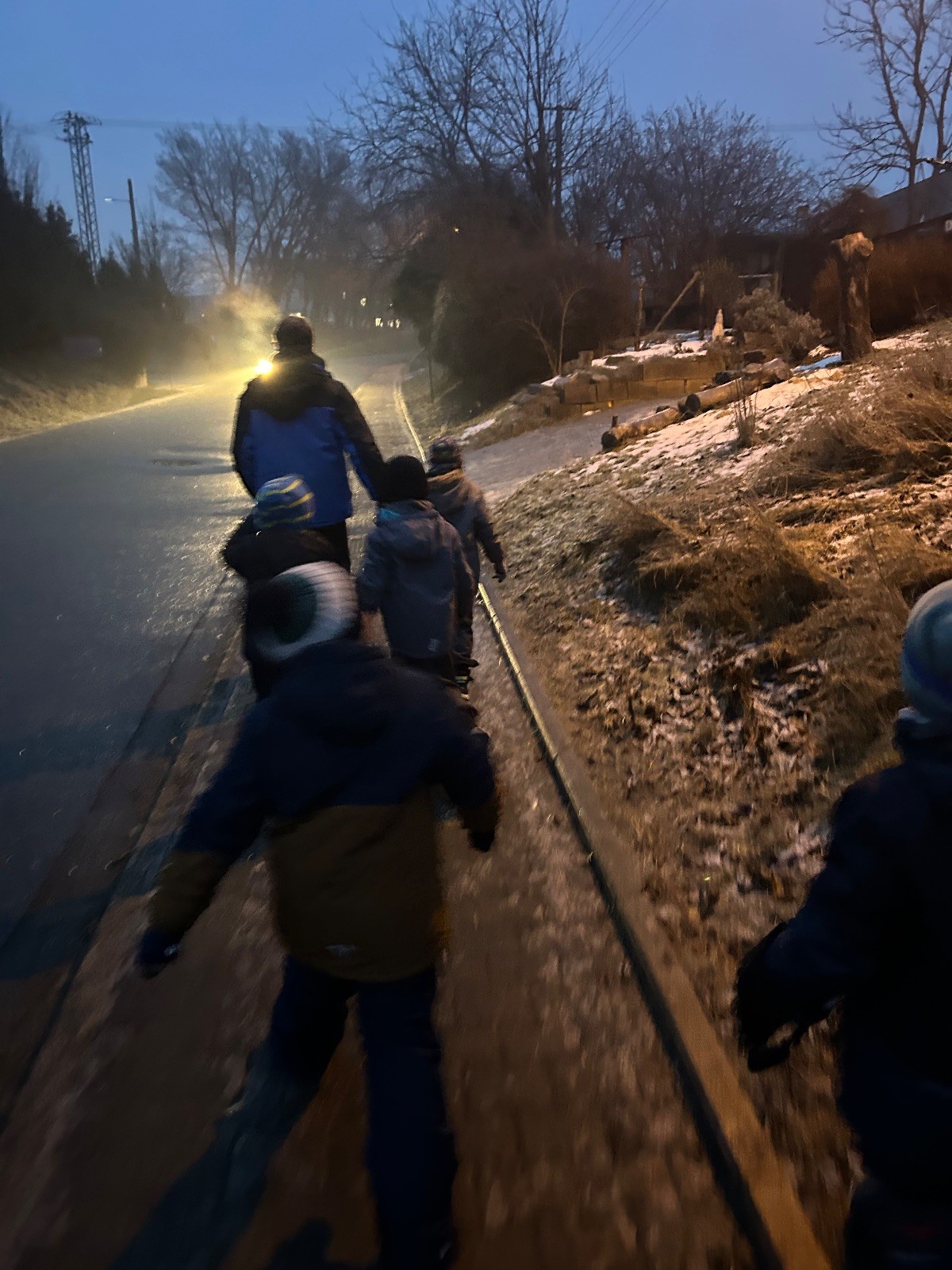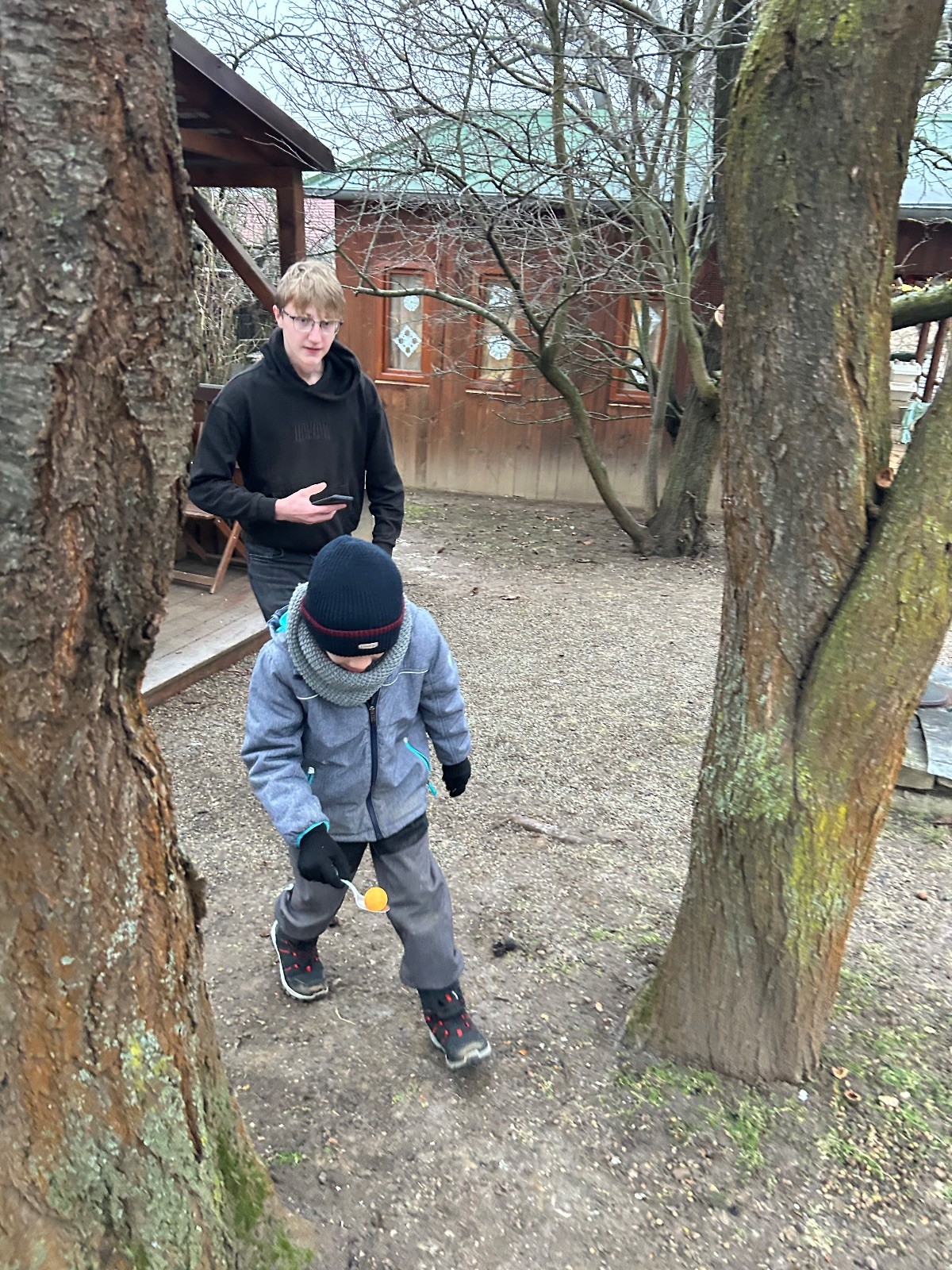 Sešli jsme se na schůzce v pěkném počtu pěti dětí a hned jsme se vrhli na první aktivitu, opičí dráhu po zahradě. Přestože bylo vše namrzlé, kluci to zvládli skvěle a obešlo se to bez jediného pádu. Poté jsme si dali svačinu a zahráli si Babylonskou věž. Jak se začalo smrákat, vydali jsme se na noční procházku Šlapanicemi. Cestou jsme hráli hru Bomba, potopa, nálet, i když větší problém než samotná hra nám dělalo náledí. I přesto jsme se všichni vrátili na boudu zdraví a v pořádku.
