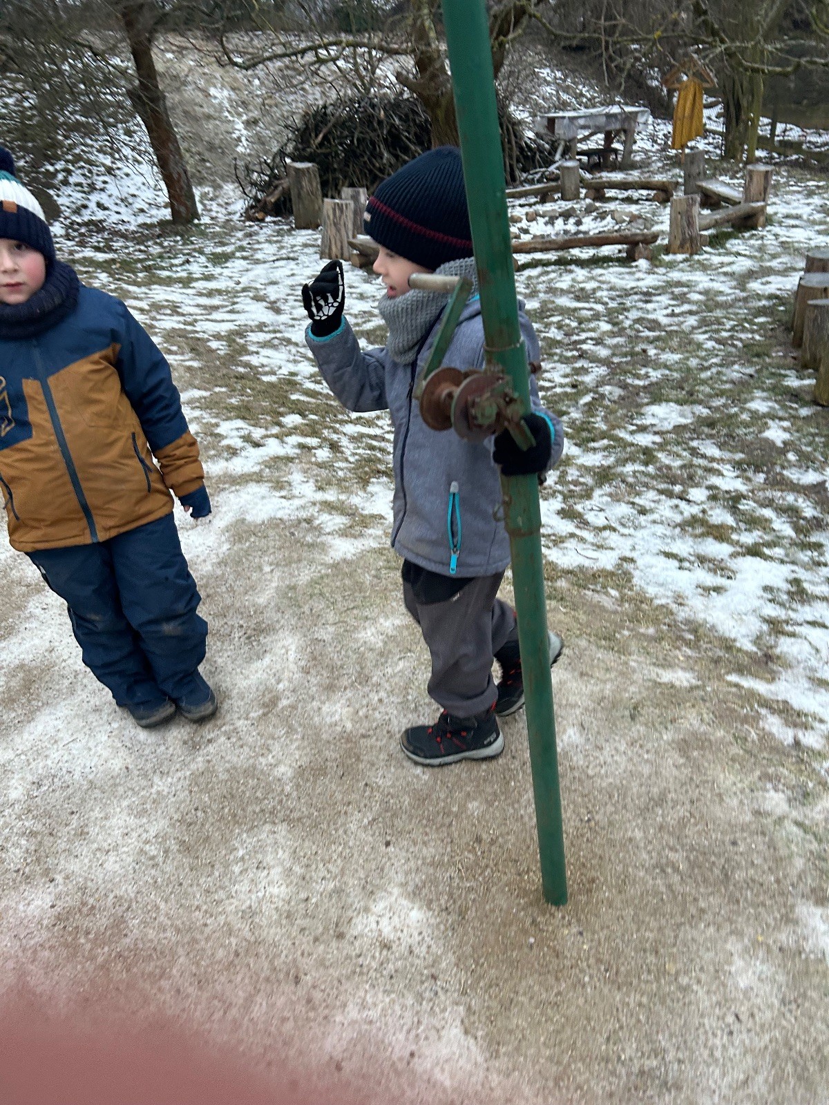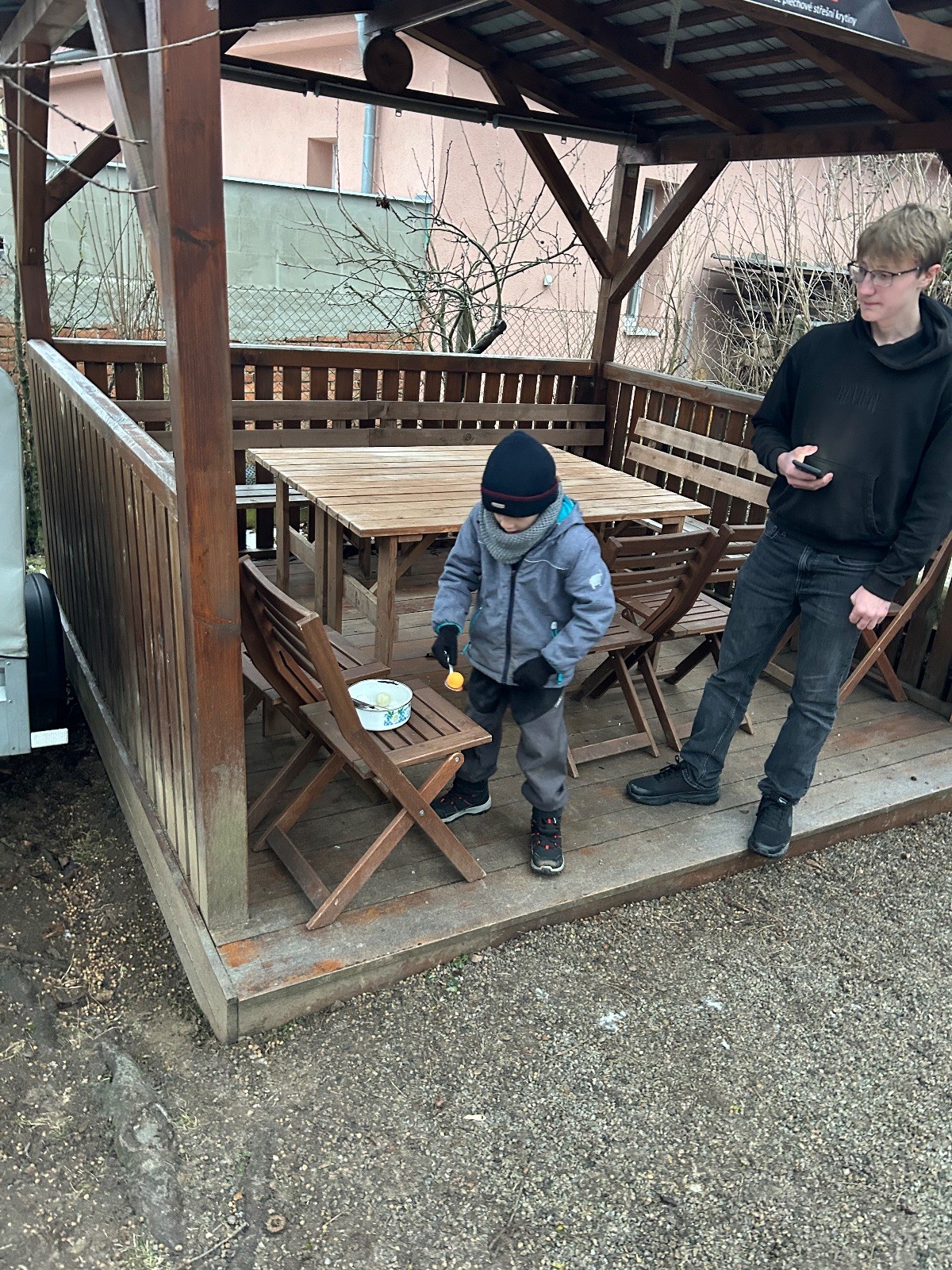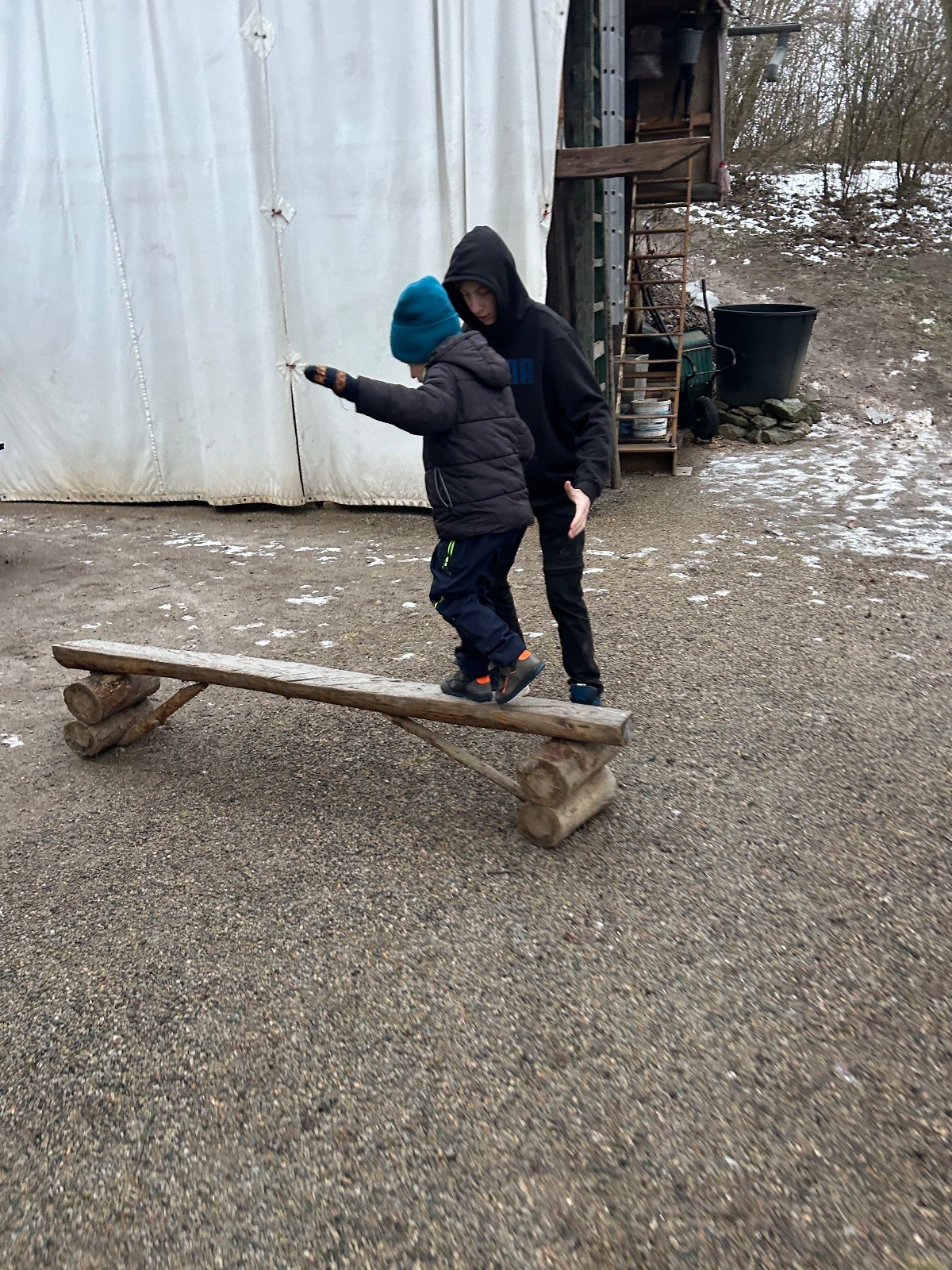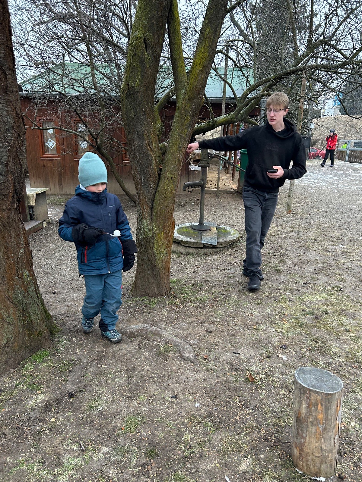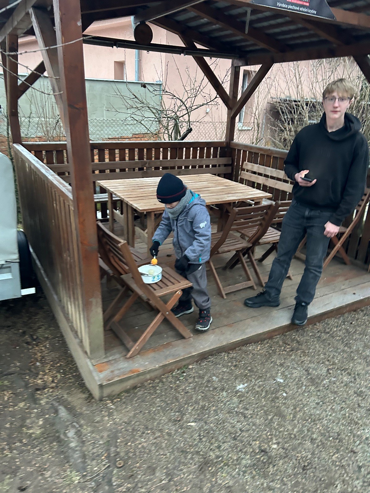 Sešli jsme se na schůzce v pěkném počtu pěti dětí a hned jsme se vrhli na první aktivitu, opičí dráhu po zahradě. Přestože bylo vše namrzlé, kluci to zvládli skvěle a obešlo se to bez jediného pádu. Poté jsme si dali svačinu a zahráli si Babylonskou věž. Jak se začalo smrákat, vydali jsme se na noční procházku Šlapanicemi. Cestou jsme hráli hru Bomba, potopa, nálet, i když větší problém než samotná hra nám dělalo náledí. I přesto jsme se všichni vrátili na boudu zdraví a v pořádku.