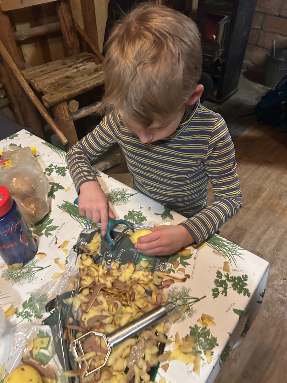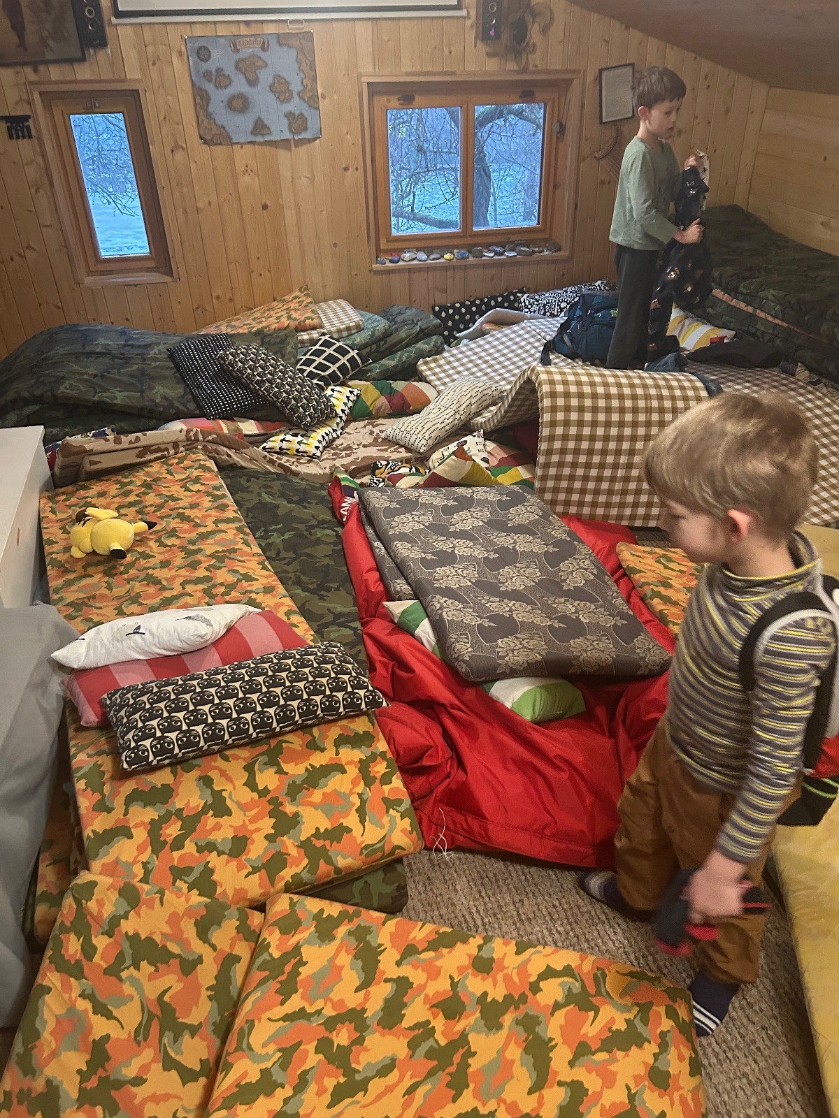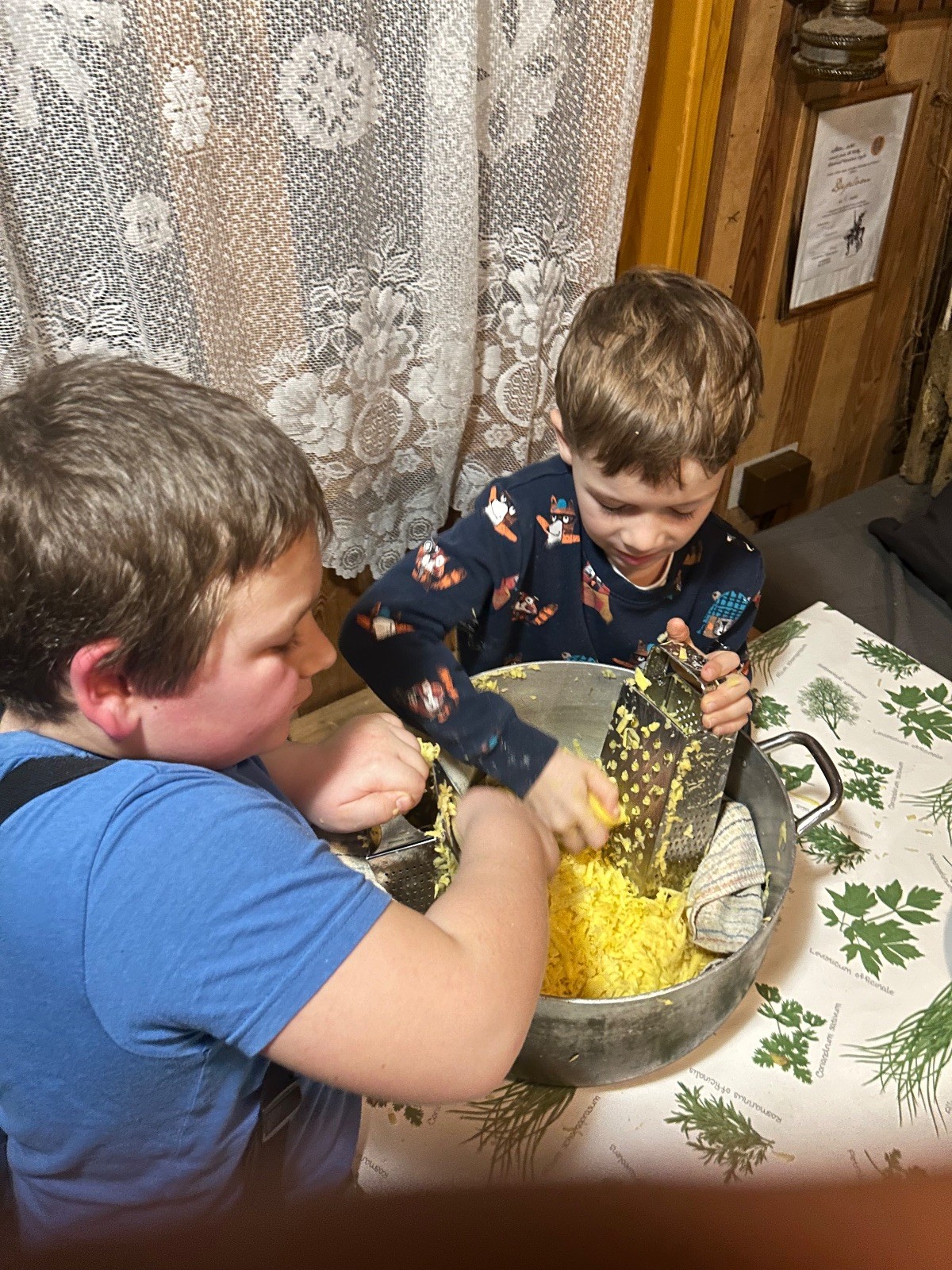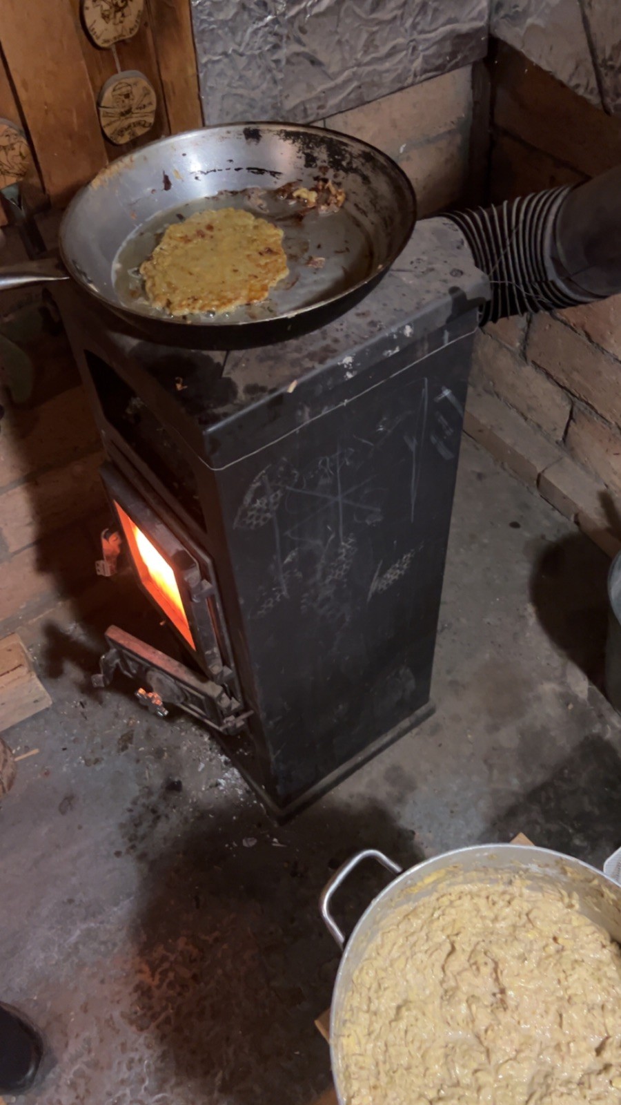 Po návratu přišel vrchol večera – příprava bramboráků. Dali jsme dohromady vše potřebné a pustili se do vaření. Kluci byli velmi šikovní a zvládli loupat i strouhat brambory. Smažení jsme si vzali na starost my, vedoucí, zatímco kluci se mezitím zabydlovali v horním patře, kde postavili obrovskou matracovou pevnost, kterou ocenili i vedoucí z vedlejší boudy. Po dosmažení jsme se pustili do jídla, bramboráky všem chutnaly, jen jsme jich připravili víc, než bylo potřeba. Večer jsme zakončili filmem, osobní hygienou a šli jsme spát.