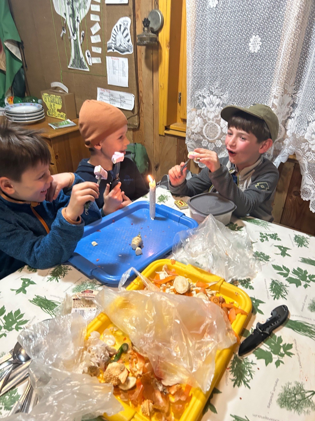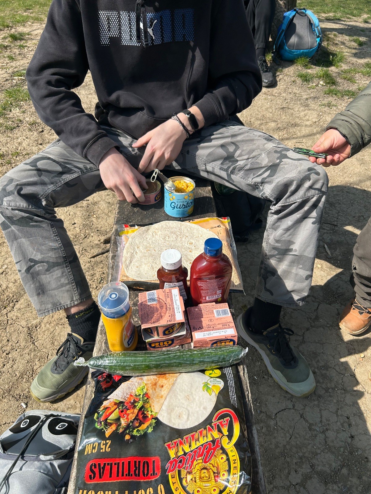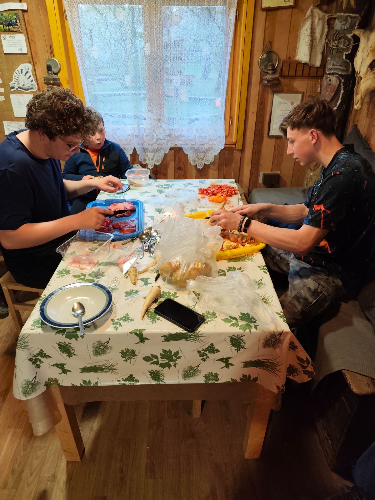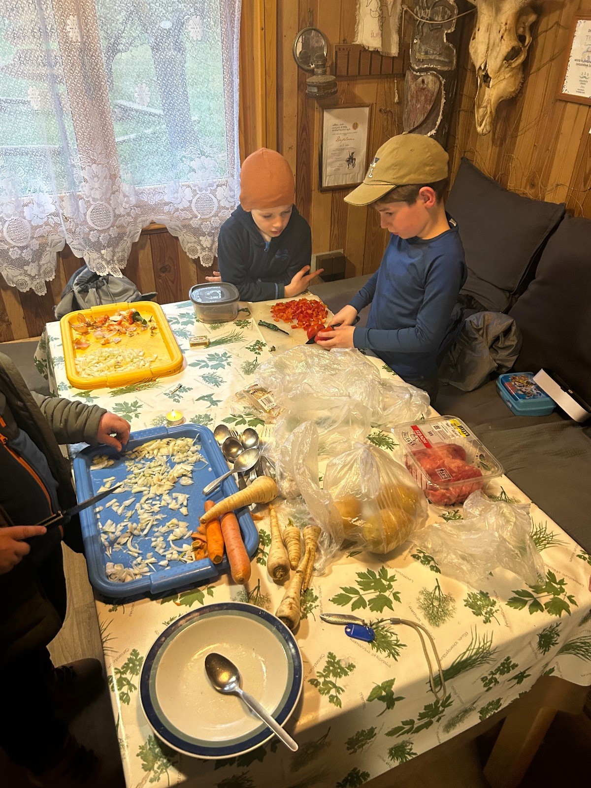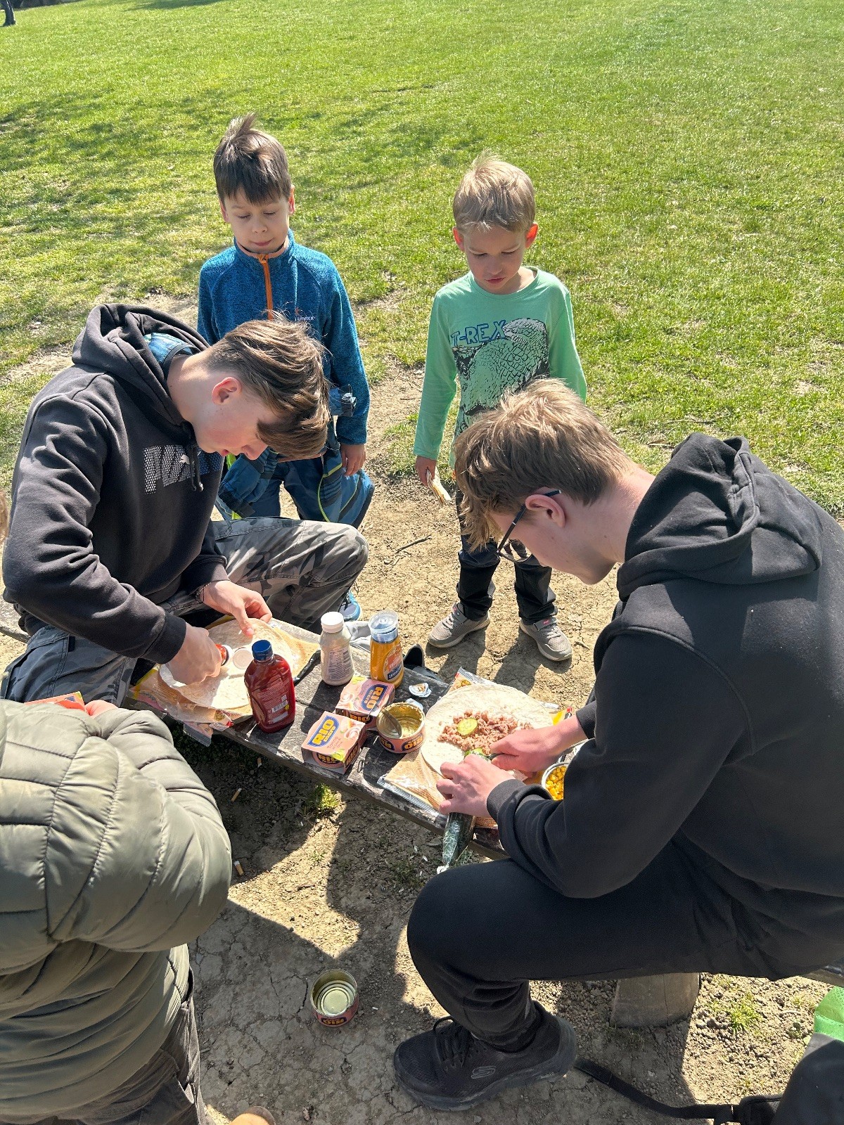 Sešli jsme se na schůzce v krásném počtu 5 dětí a 3 vedoucích. V pátek večer jsme strávili docela dost času venku, během kterého jsme si zahráli spoustu her. Poté jsme začali připravovat guláš a všechny nás to hodně dojalo a začali jsme brečet. Radomír však přišel s radou, že prý svíčka pomáhá, a světe div se, ono to na tu cibuli docela fungovalo.