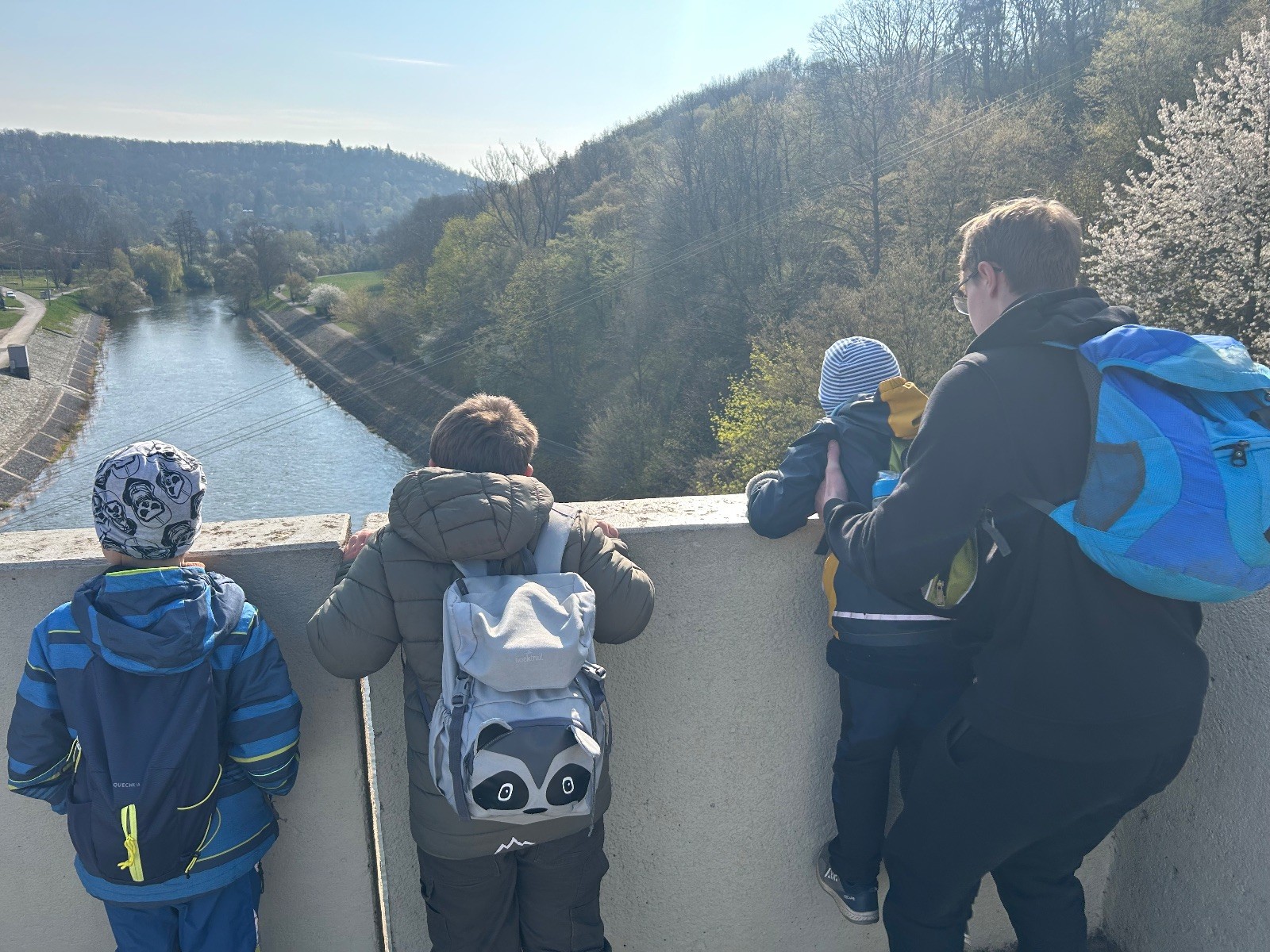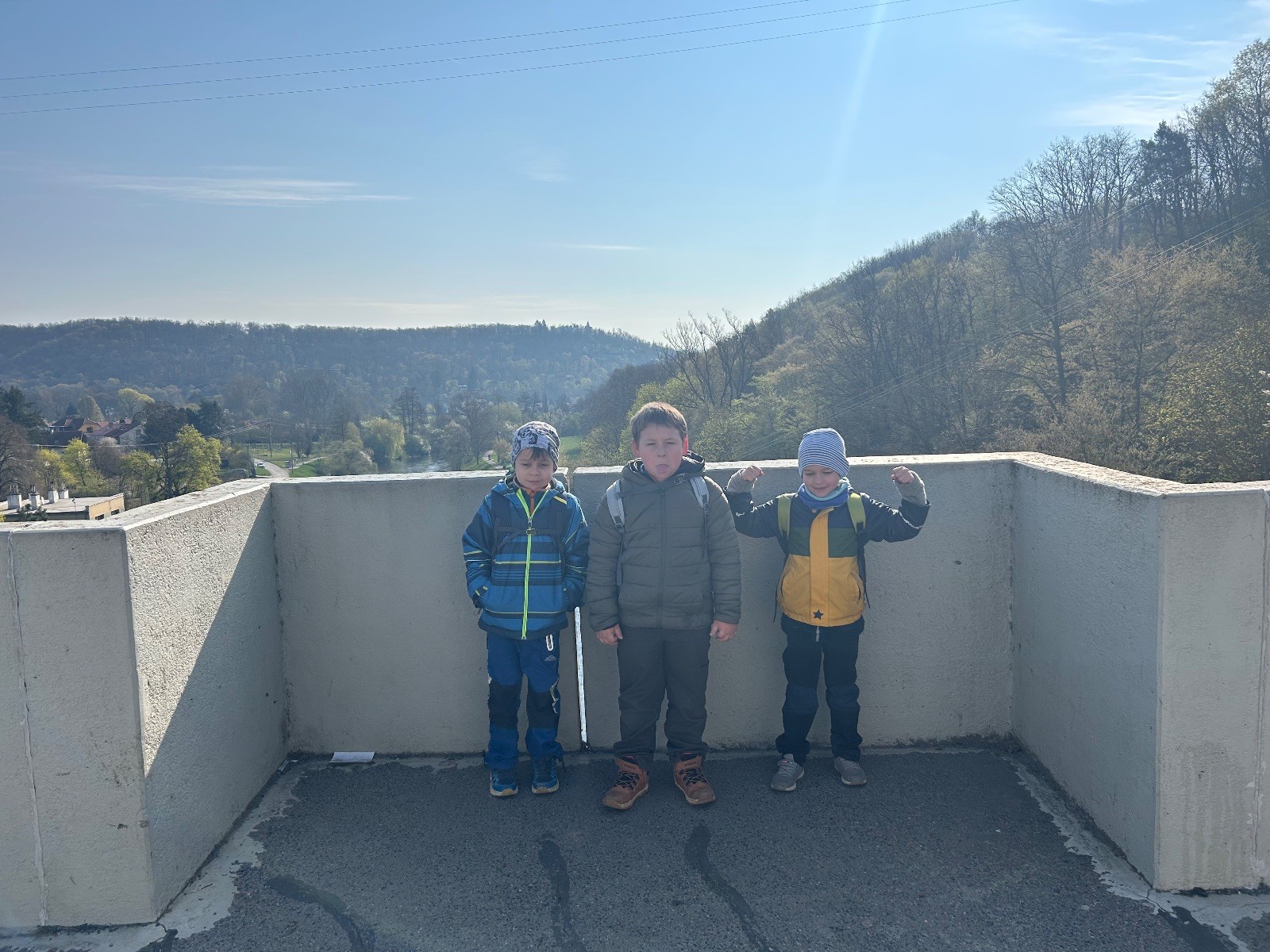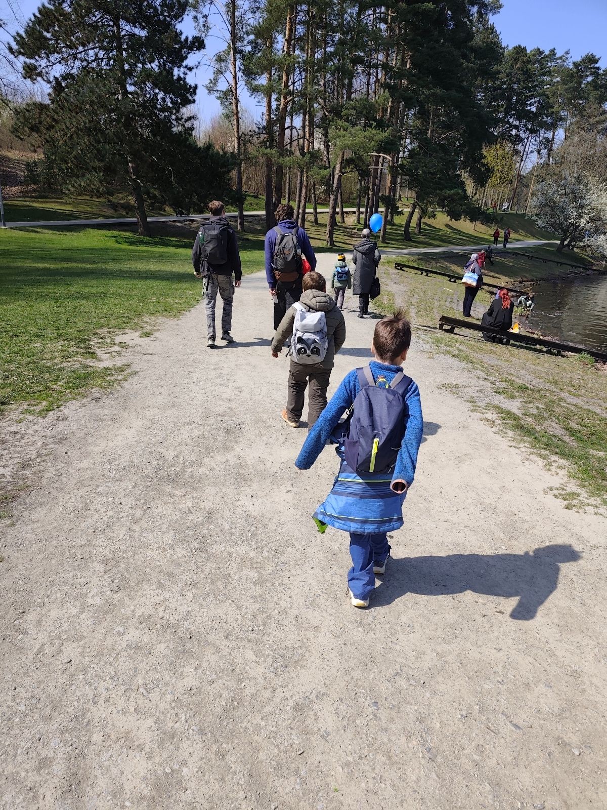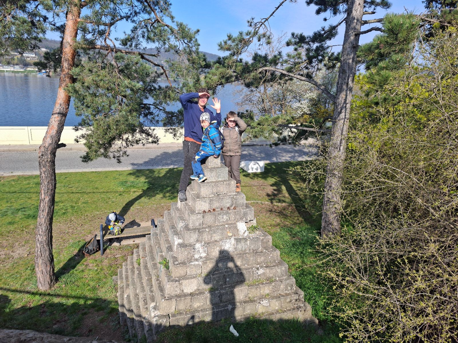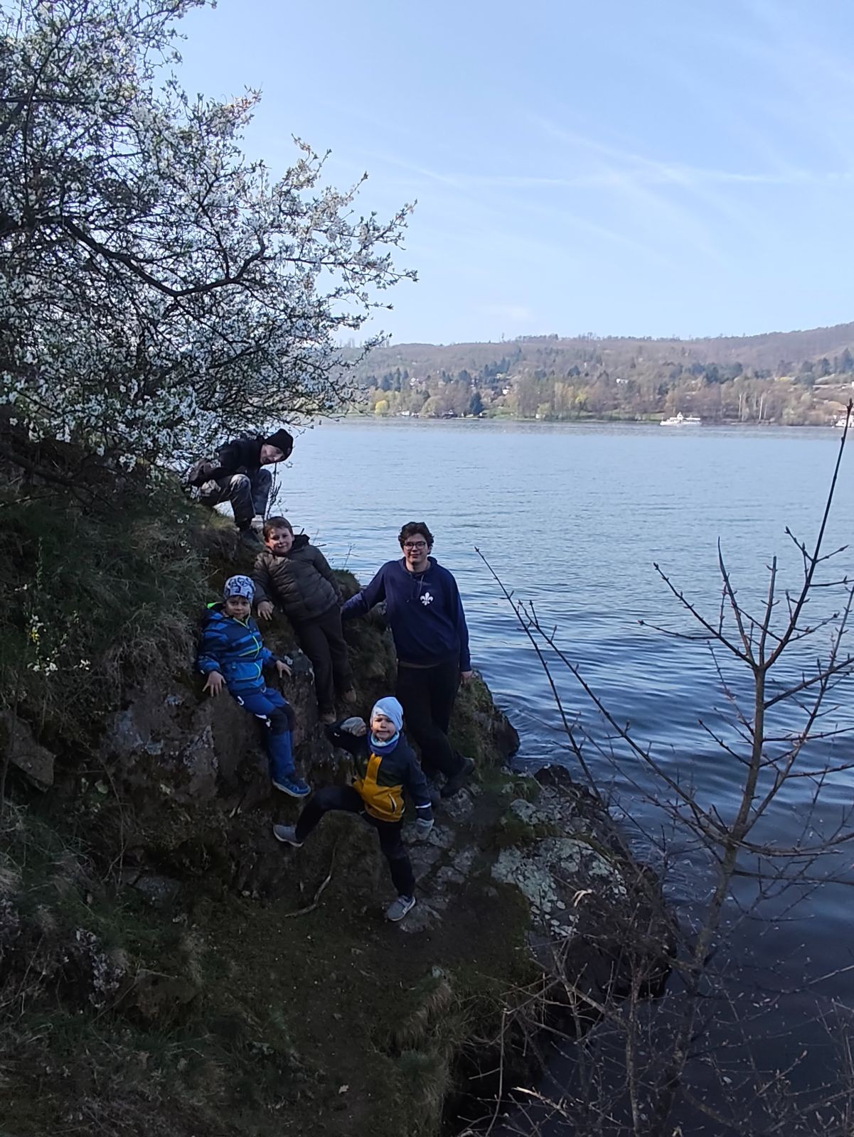 Po příjezdu jsme se odtrhli od hlavního davu, který mířil na ceremoniál, protože my jsme měli trochu jiný cíl. Udělali jsme si kratší procházku okolo přehrady, nutno podotknout, že s velkým počtem zastávek. Mezi ně patřila například hřiště nebo i nějaké lezení po kamenech pár metrů od hladiny. Při jednom z takových lezení se stalo první neštěstí, Vydrýsek nám nohou zahučel do vody, naštěstí se s tím popral, přeci jenom taky už je to vedoucí. Z malých Lemurů tam prozatím nikdo nespadl.