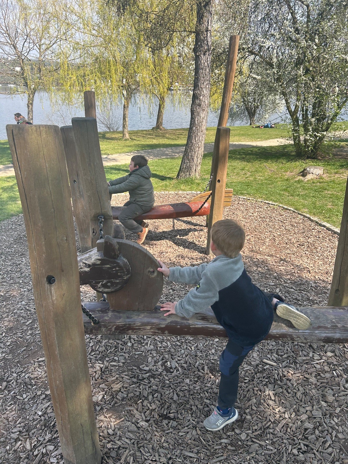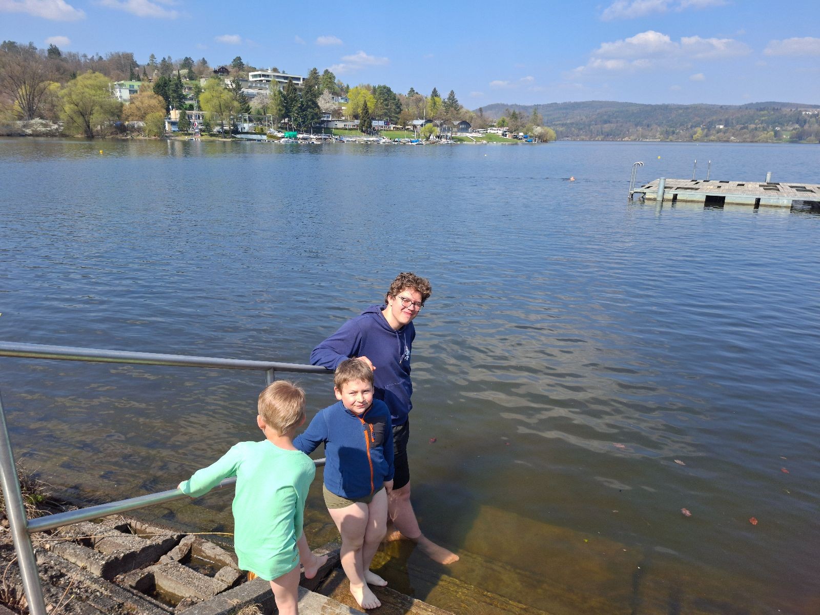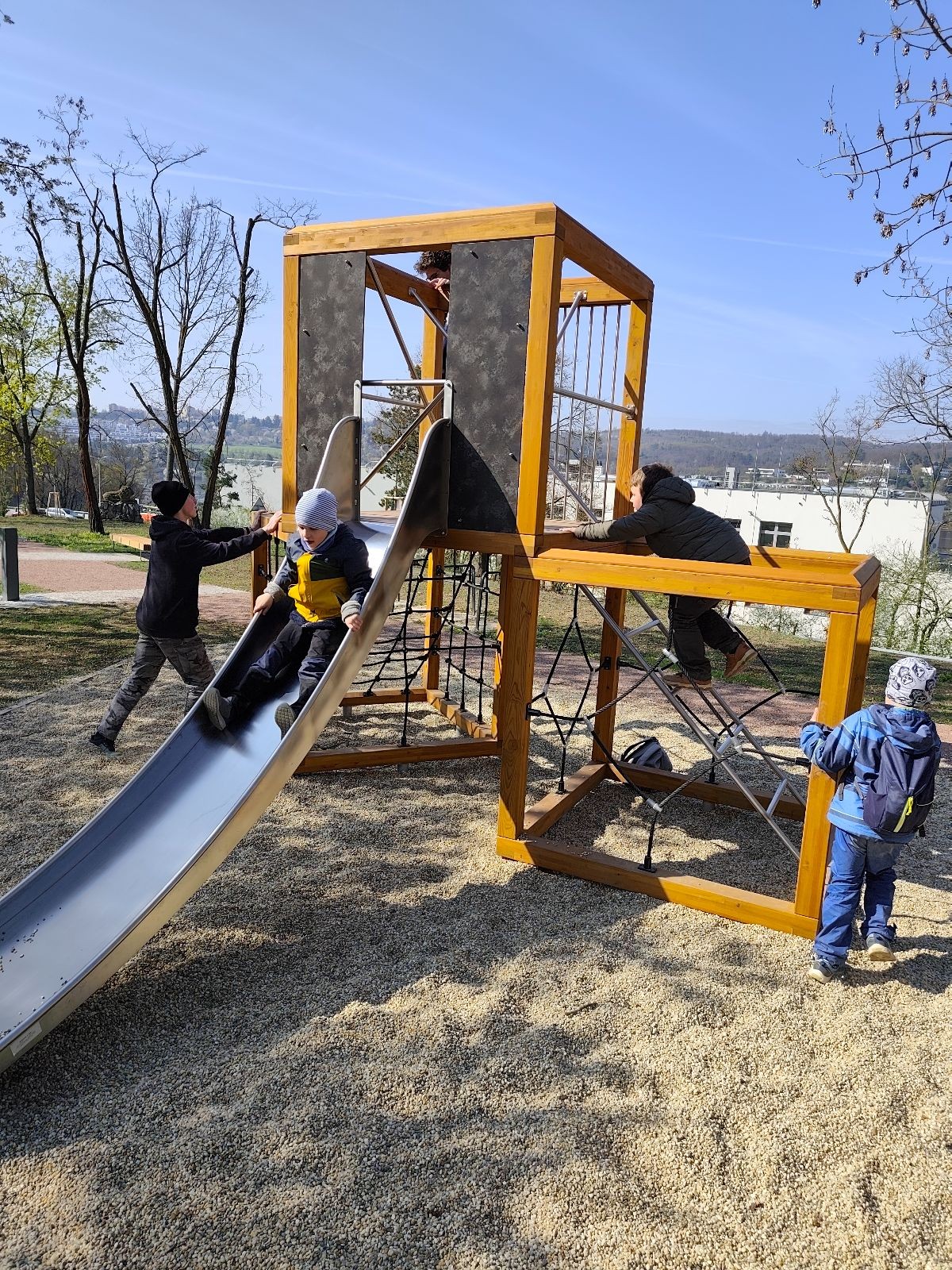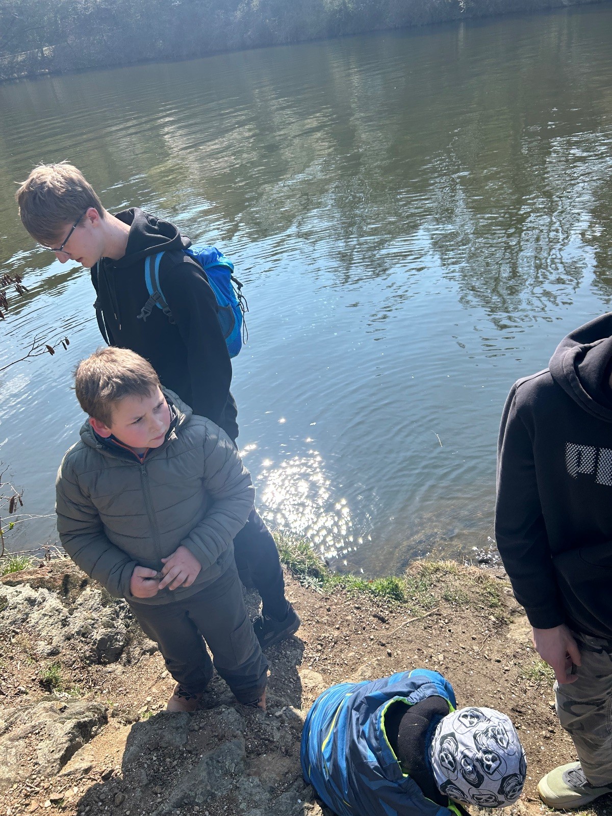 Po příjezdu jsme se odtrhli od hlavního davu, který mířil na ceremoniál, protože my jsme měli trochu jiný cíl. Udělali jsme si kratší procházku okolo přehrady, nutno podotknout, že s velkým počtem zastávek. Mezi ně patřila například hřiště nebo i nějaké lezení po kamenech pár metrů od hladiny. Při jednom z takových lezení se stalo první neštěstí, Vydrýsek nám nohou zahučel do vody, naštěstí se s tím popral, přeci jenom taky už je to vedoucí. Z malých Lemurů tam prozatím nikdo nespadl.