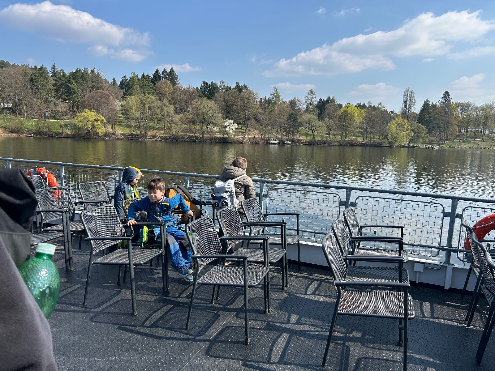 Došli jsme až k zastávce lodičky. U ní jsme počkali do příjezdu, nasedli a jeli zpět do Bystrce. Na lodičce se nic moc zajímavého nestalo, ale všichni jsme byli fascinovaní pozorováním motoru.