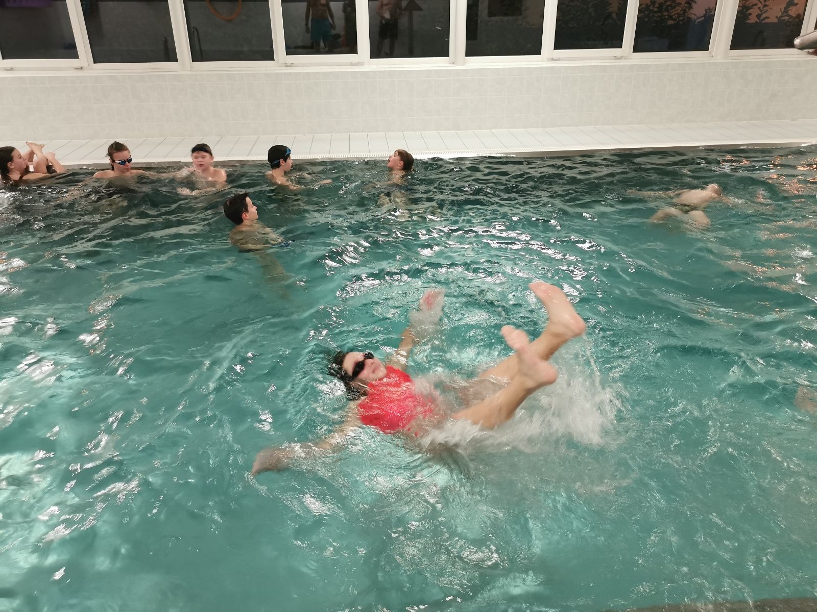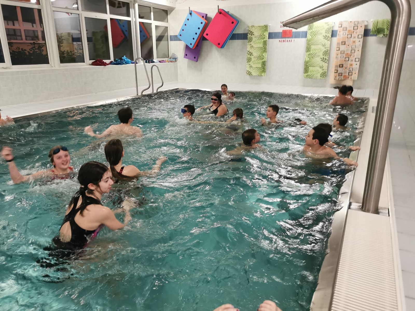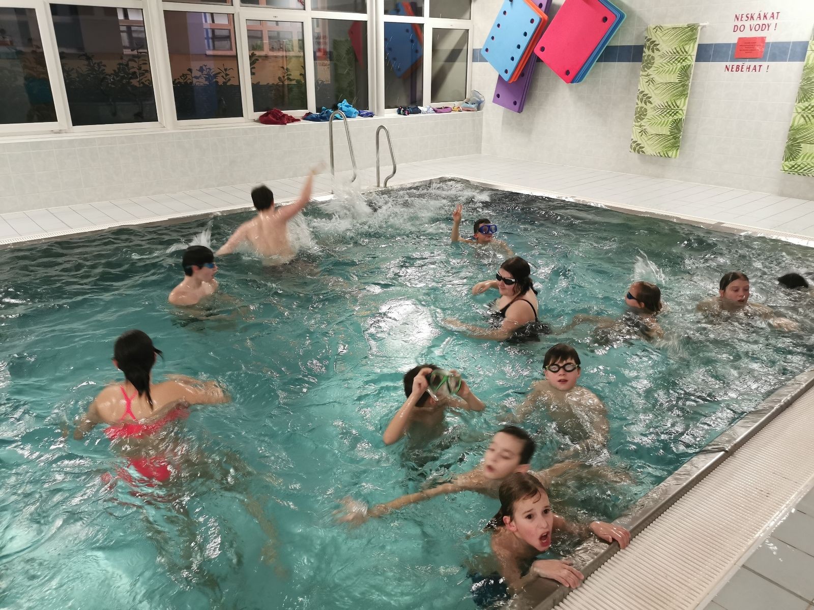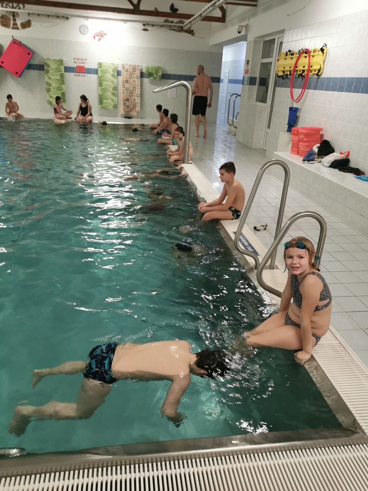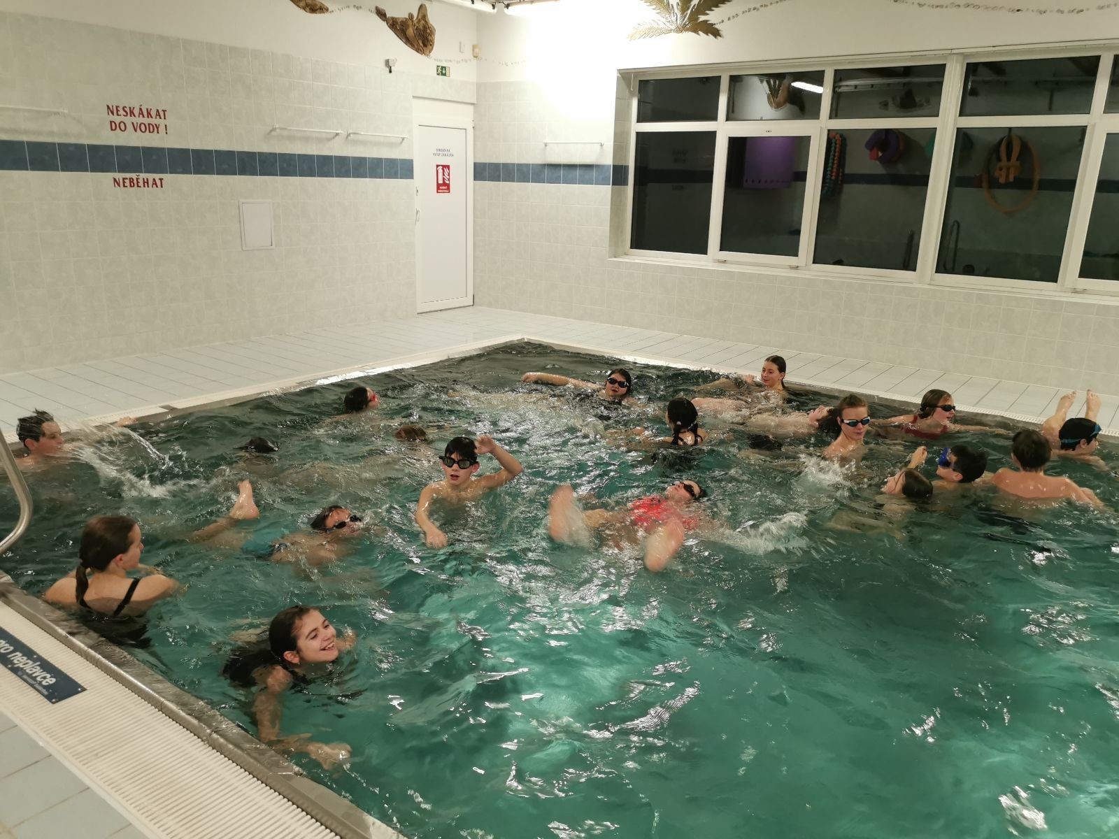 Na dnešní oddílovku jsme opět bookli bazén ve Fryčovicích. Dáváme sraz v 16:40 na myslivně, ať maximalizujeme čas na bazéně, kam přijíždíme lehce před 17. hodinou. Po příjezdu probíhá rychlá šatna, plavky, sprcha a všichni už se hrnou do bazénu. Ze začátku dáváme volný program na seznámení s vodou, která je příjemně teplá. Dokonce i vzduch má teplotu a vlhkost blízkou tropickému podnebí. To velice cením, protože mým hobby od začátku roku se staly neustálé, otravné rýmičky a nachlazení.