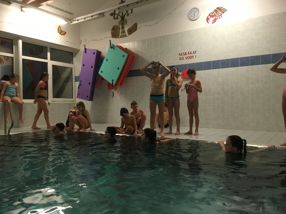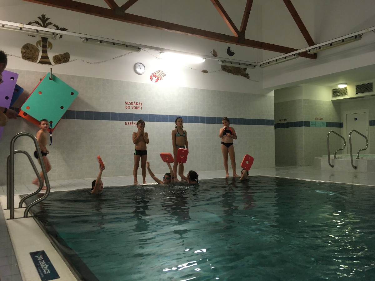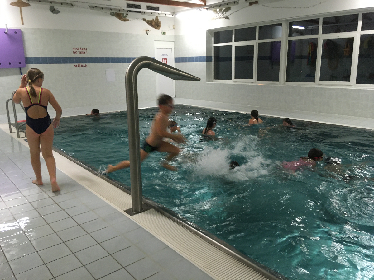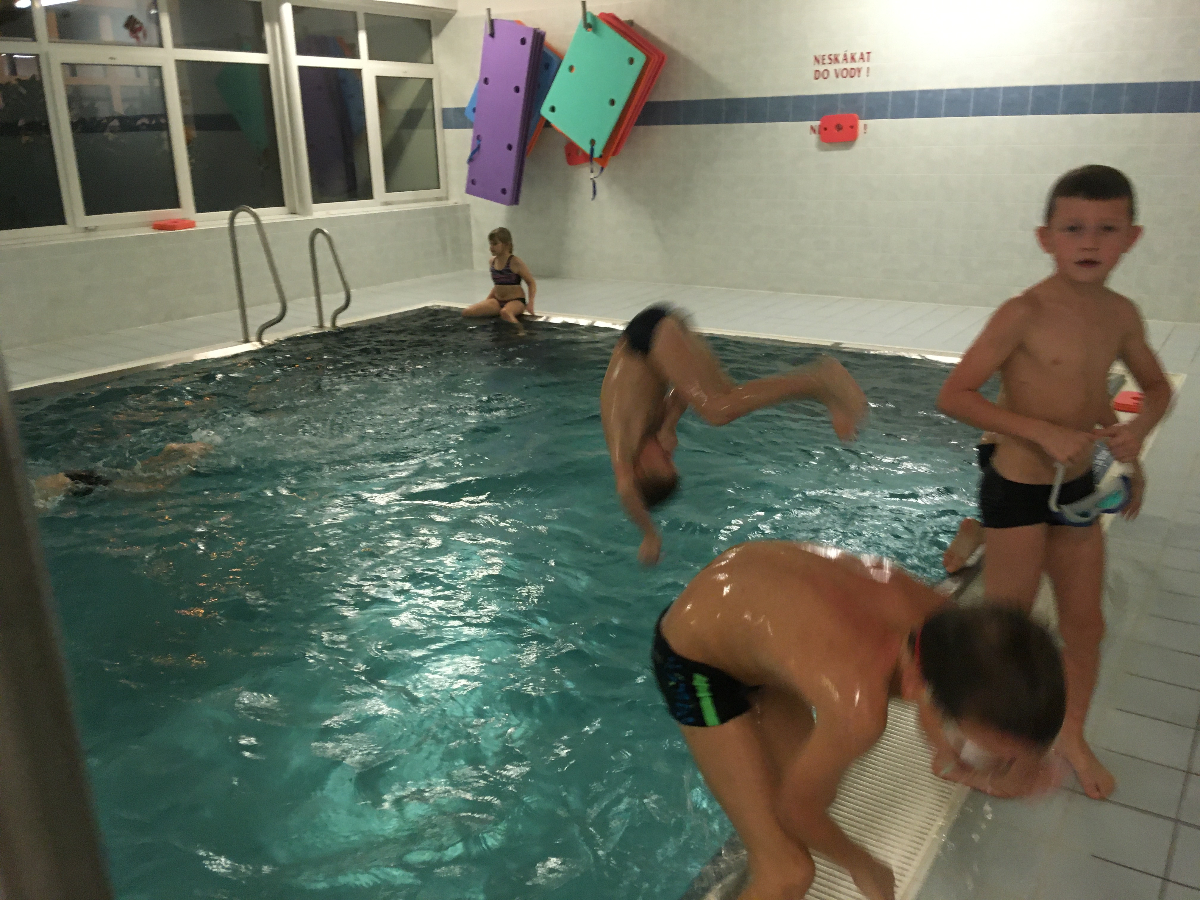 Na pondělní schůzce se kluci a holky z Lišek, společně s Lenkou a Patem, vydali do Fryčovic na bazén. Děcek bylo 16, s autem nám vypomohl Renda tam i zpět. Na začátku jsme dali "rozplavbu" pro zahřátí. Následovaly štafety mezi 4 skupinkami, první na rychlost, druhá na plavbu s "hořícím ohněm" a třetí na nejdelší doplavání pod vodou. V mezipauzách mohly děcka skočit do vířivky, nebo se osprchovat pod proudem. Akce se povedla, do budoucna bazén určitě znovu zopakujeme!
