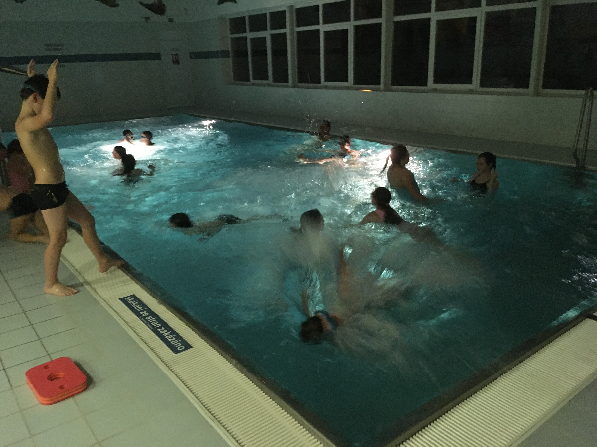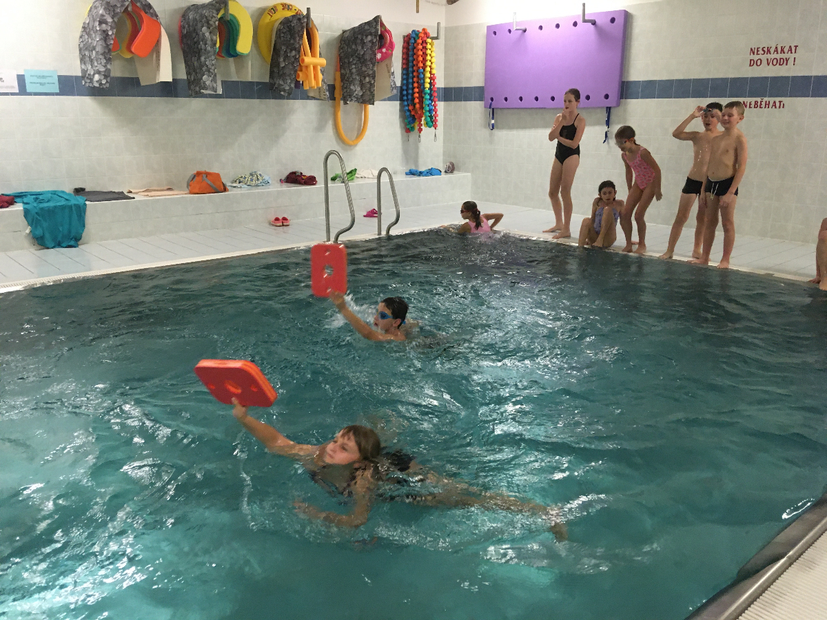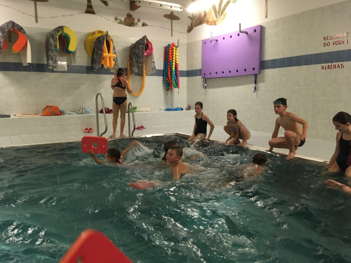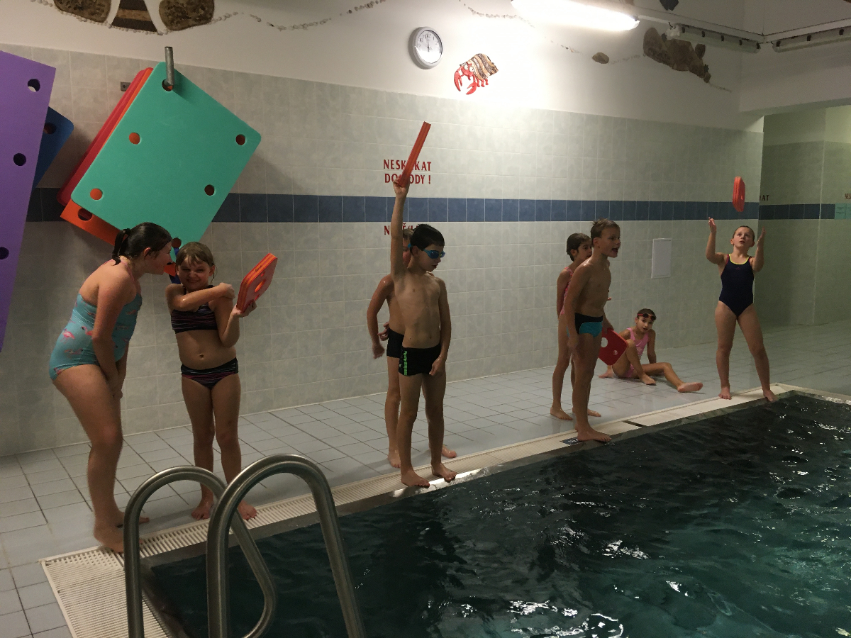 Na pondělní schůzce se kluci a holky z Lišek, společně s Lenkou a Patem, vydali do Fryčovic na bazén. Děcek bylo 16, s autem nám vypomohl Renda tam i zpět. Na začátku jsme dali "rozplavbu" pro zahřátí. Následovaly štafety mezi 4 skupinkami, první na rychlost, druhá na plavbu s "hořícím ohněm" a třetí na nejdelší doplavání pod vodou. V mezipauzách mohly děcka skočit do vířivky, nebo se osprchovat pod proudem. Akce se povedla, do budoucna bazén určitě znovu zopakujeme!