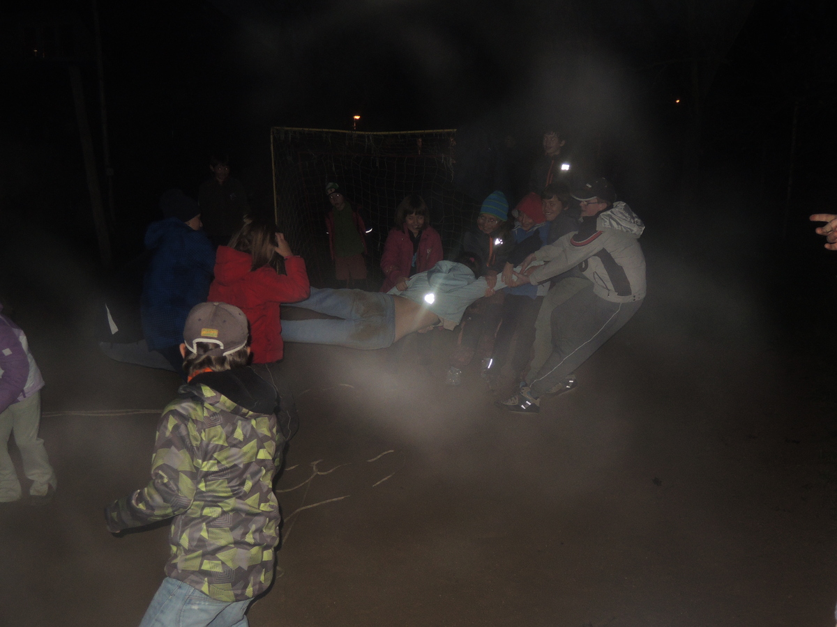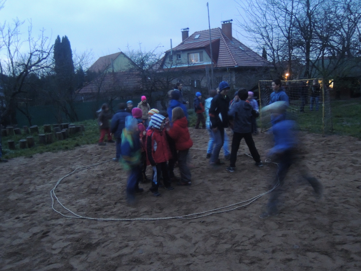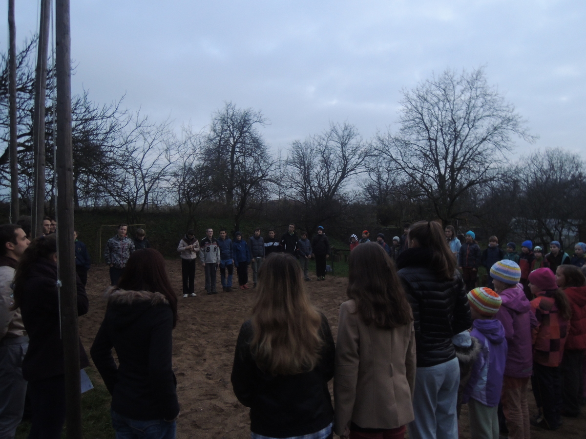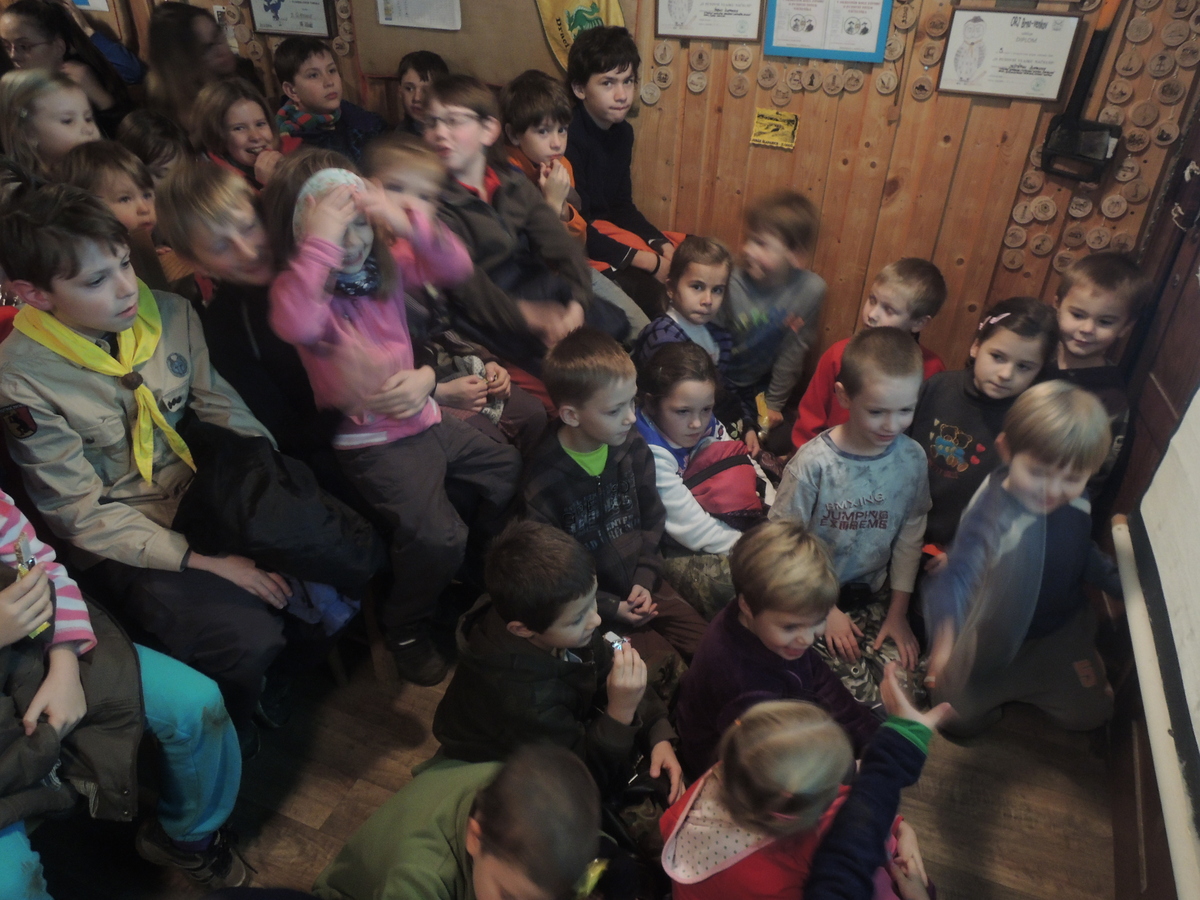 Měsíc před Vánocemi se na Boudě uskutečnila oddílová schůzka s nad očekávání dobrou účastí. Dorazilo skoro 80 členů. Oddílovku jsme zahájili tradičním nástupem a vyvěšením vlajky. Malí Svišti se oddělili a měli svůj vlastní program, ostatní si na rozehřátí v tom ne úplně pěkném počasí zahráli tzv. Dobývání hradu. Kvůli velkému počtu hráčů jsme je rozdělili na dvě skupiny, která hrála každá na své půlce hřiště, nezávisle na sobě. Na každé půlce jsme vytyčili kruh pomocí lana, představující hrad, uvnitř kterého byli jeho obránci a kolem něj jeho dobyvatelé. Úkolem bylo přetáhnout protihráče do svého pole. Kdo je přetažen, vypadává. Hra měla úspěch, někteří Draci ji už znali, a tak taktizovali, tvořili řetězy...nakonec byl každý tým odměněn sladkými čočkami. Po skončení etapy ještě proběhlo vyhlášení Kašovy vědomostní soutěže Vyznáte se?, a to už se všichni, včetně Svišťů, mohli přesunout do Trojky, kde měl následovat hlavní a dlouho očekávaný bod programu, film z tábora. Nějak se nás dovnitř všech osmdesát vtěsnalo, i když to bylo celkem naknop. Film se Bengimu opravdu povedl, všem se moc líbil a stoprocentně to bylo super lákadlo pro spoustu nováčků, proč určitě nevynechat tábor. Hlavně Lentil si ve filmu zahrál zase jednou hlavní roli :-). Po skončení filmu se postupně všichni začali trousit domů. Oddílovka se vydařila. Babů