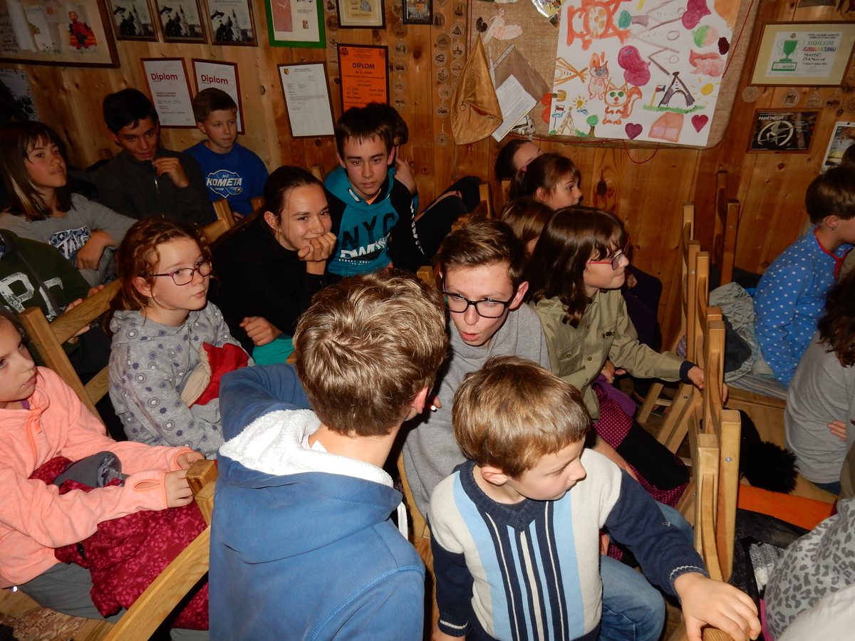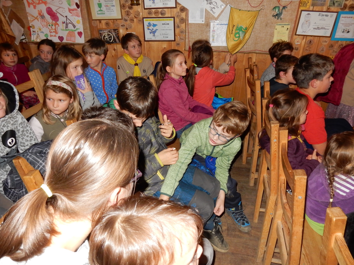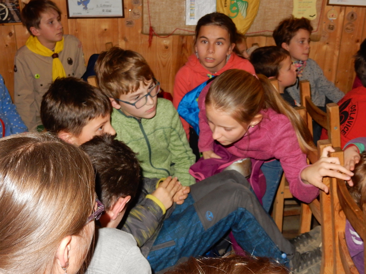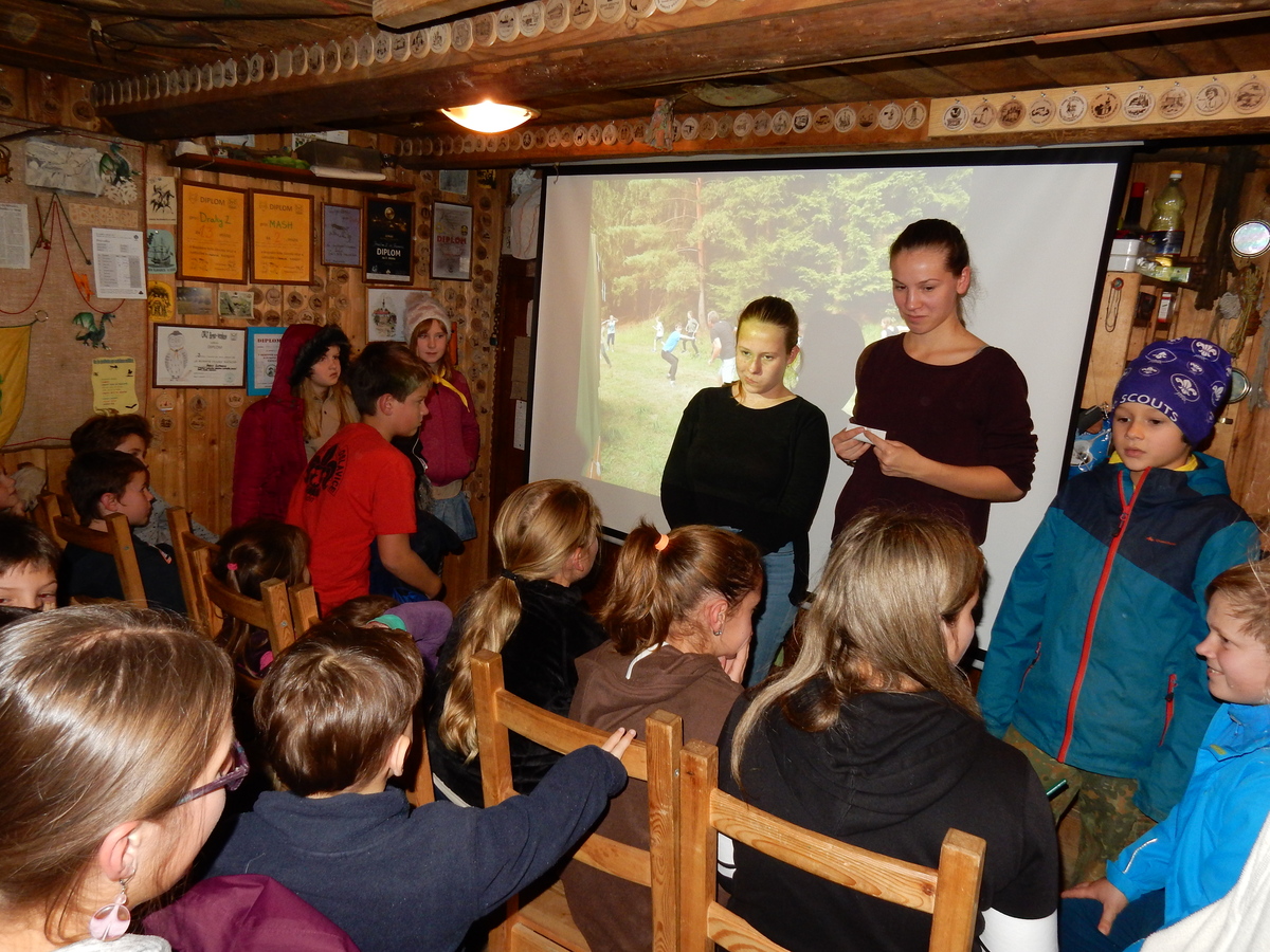 Dne 14.11. se nás sešlo asi 60 na listopadovou oddílovku. Začali jsme okolo čtvrté hodiny nástupem, poté následovala jediná sportovně zaměřená hra této oddílovky, a sice hra Toaleťákovaná. Soutěžící se rozdělili do šesti skupin, ve kterých se snažili přenést přes hrací pole co nejvíce toaleťáku. Po napínavé a mimořádně zábavné bitvě jsme se všichni přesunuli do Boudy. Tam se totiž promítal film z tábora. Začalo se trailerem, který měl navodit tu správnou atmosféru, a potom následoval samotný film. Ten zpracoval Kaša, a moc se mu povedl. Poté proběhl kvíz filmu, a vše bylo nakonec zakončeno soutěží Vyznáte se? A to už byl konec oddílovky a všichni jsme se rozešli (převážně v dobrém).