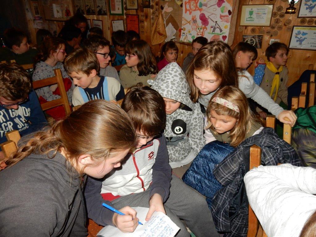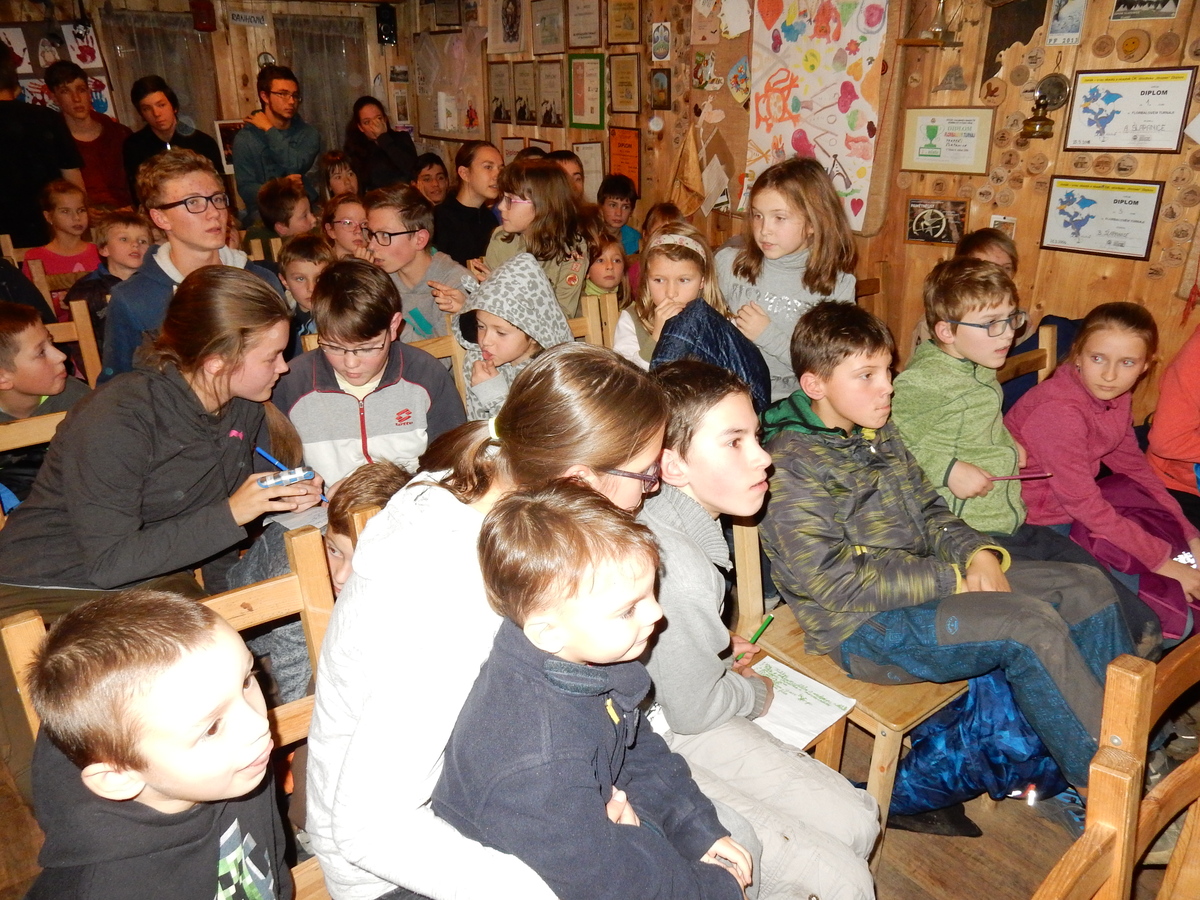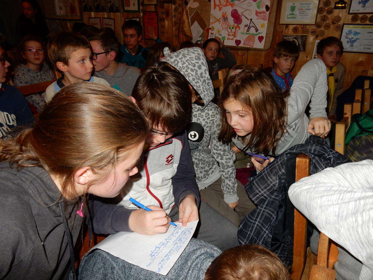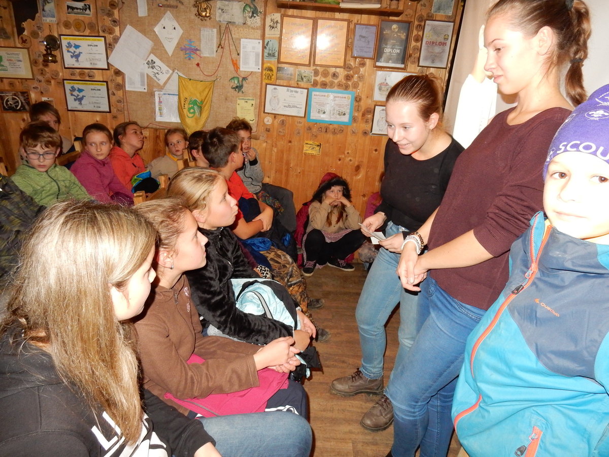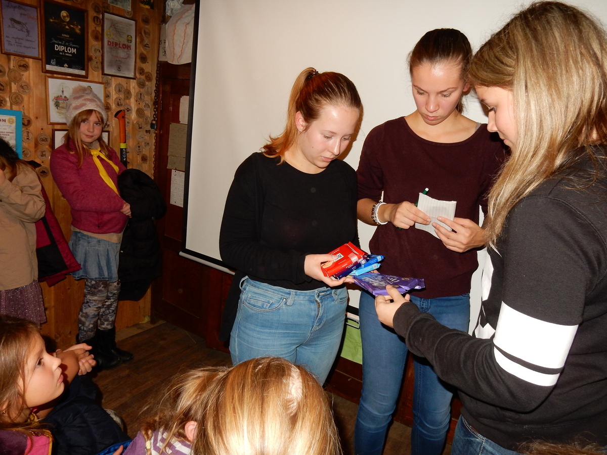 Dne 14.11. se nás sešlo asi 60 na listopadovou oddílovku. Začali jsme okolo čtvrté hodiny nástupem, poté následovala jediná sportovně zaměřená hra této oddílovky, a sice hra Toaleťákovaná. Soutěžící se rozdělili do šesti skupin, ve kterých se snažili přenést přes hrací pole co nejvíce toaleťáku. Po napínavé a mimořádně zábavné bitvě jsme se všichni přesunuli do Boudy. Tam se totiž promítal film z tábora. Začalo se trailerem, který měl navodit tu správnou atmosféru, a potom následoval samotný film. Ten zpracoval Kaša, a moc se mu povedl. Poté proběhl kvíz filmu, a vše bylo nakonec zakončeno soutěží Vyznáte se? A to už byl konec oddílovky a všichni jsme se rozešli (převážně v dobrém).