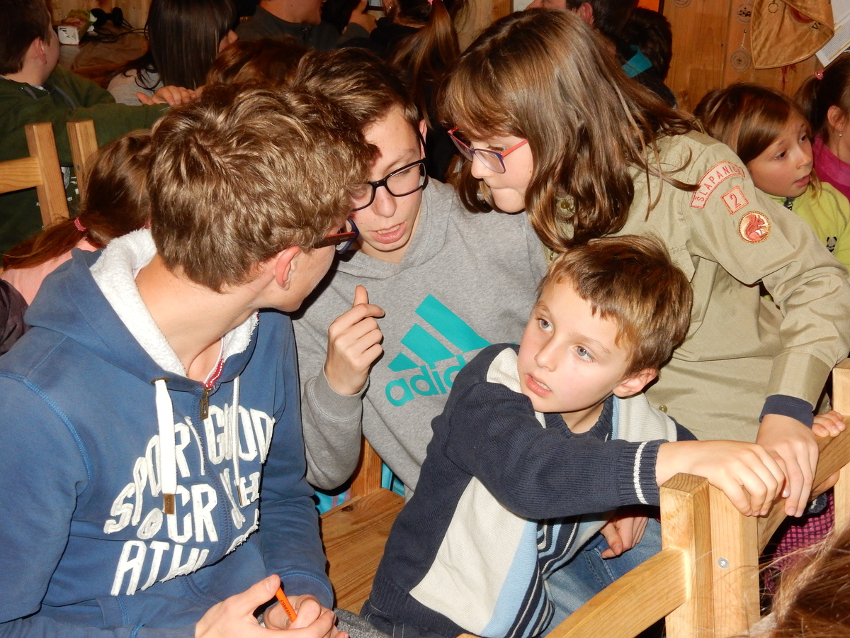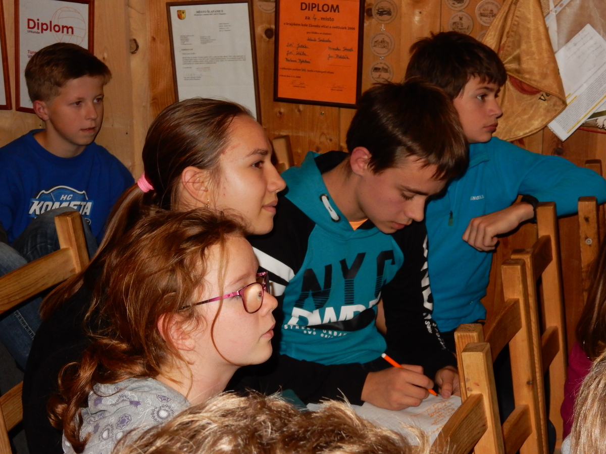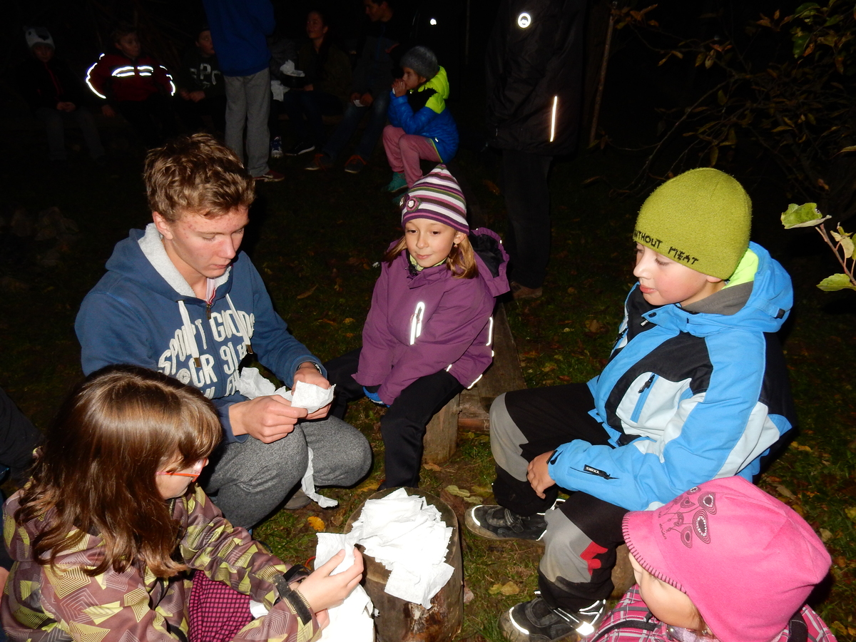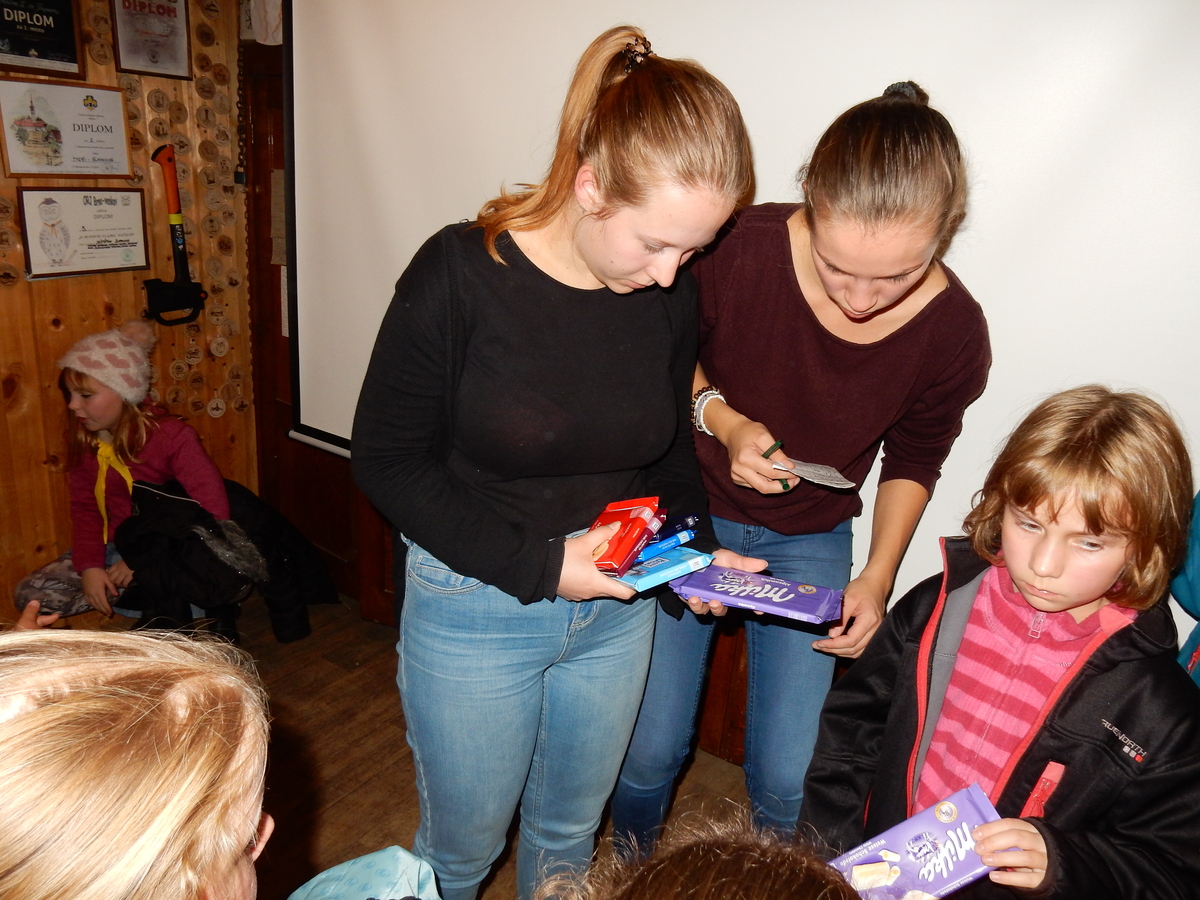 Dne 14.11. se nás sešlo asi 60 na listopadovou oddílovku. Začali jsme okolo čtvrté hodiny nástupem, poté následovala jediná sportovně zaměřená hra této oddílovky, a sice hra Toaleťákovaná. Soutěžící se rozdělili do šesti skupin, ve kterých se snažili přenést přes hrací pole co nejvíce toaleťáku. Po napínavé a mimořádně zábavné bitvě jsme se všichni přesunuli do Boudy. Tam se totiž promítal film z tábora. Začalo se trailerem, který měl navodit tu správnou atmosféru, a potom následoval samotný film. Ten zpracoval Kaša, a moc se mu povedl. Poté proběhl kvíz filmu, a vše bylo nakonec zakončeno soutěží Vyznáte se? A to už byl konec oddílovky a všichni jsme se rozešli (převážně v dobrém).