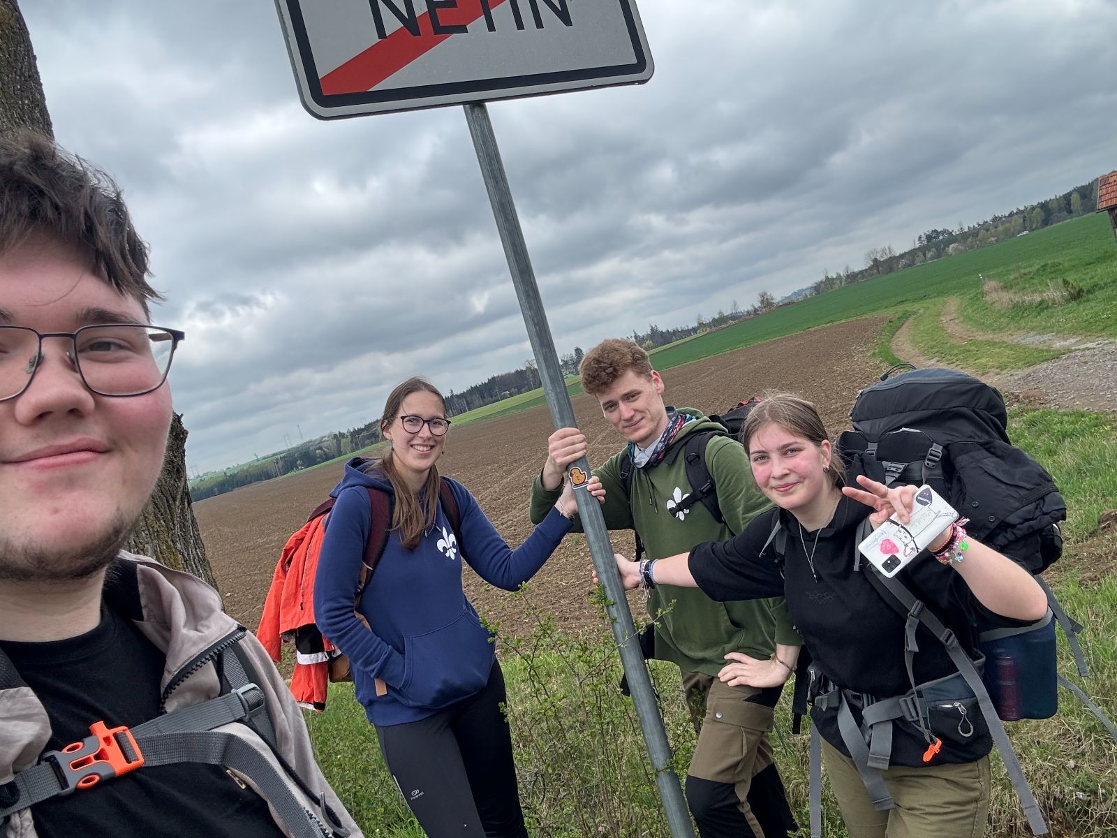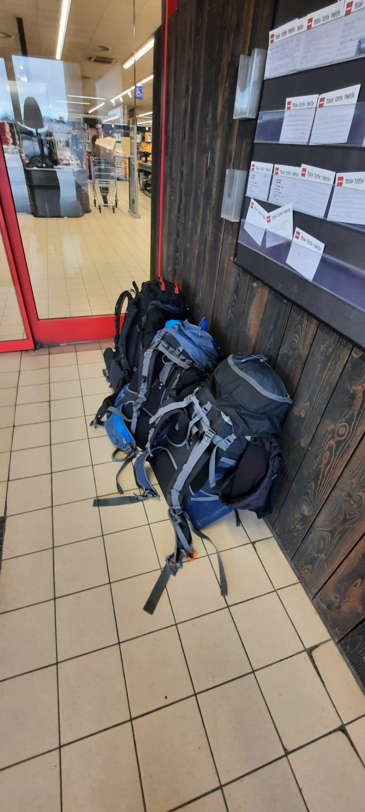 Kláda byla sbalená už týden předem a zbytek nás se zabalil v klidu chvíli před odjezdem. No a 19.4. v Sobotu jsme se sešli ve Šlapanicích na zastávce a s krosnami se vydali na Hlavní nádraží do Brna. Odtud jsme odjeli vlakem do Křižanova a poté do velkého Meziříčí. Zde jsme si nakoupili jídlo na cestu v Penny na pravé straně řeky :) a poté jsme se vydali Velkým Meziříčím směrem na Lavičky a dále směr Netín.