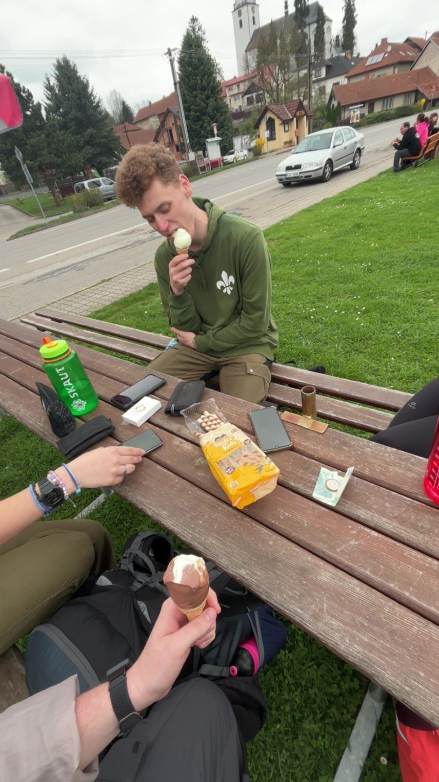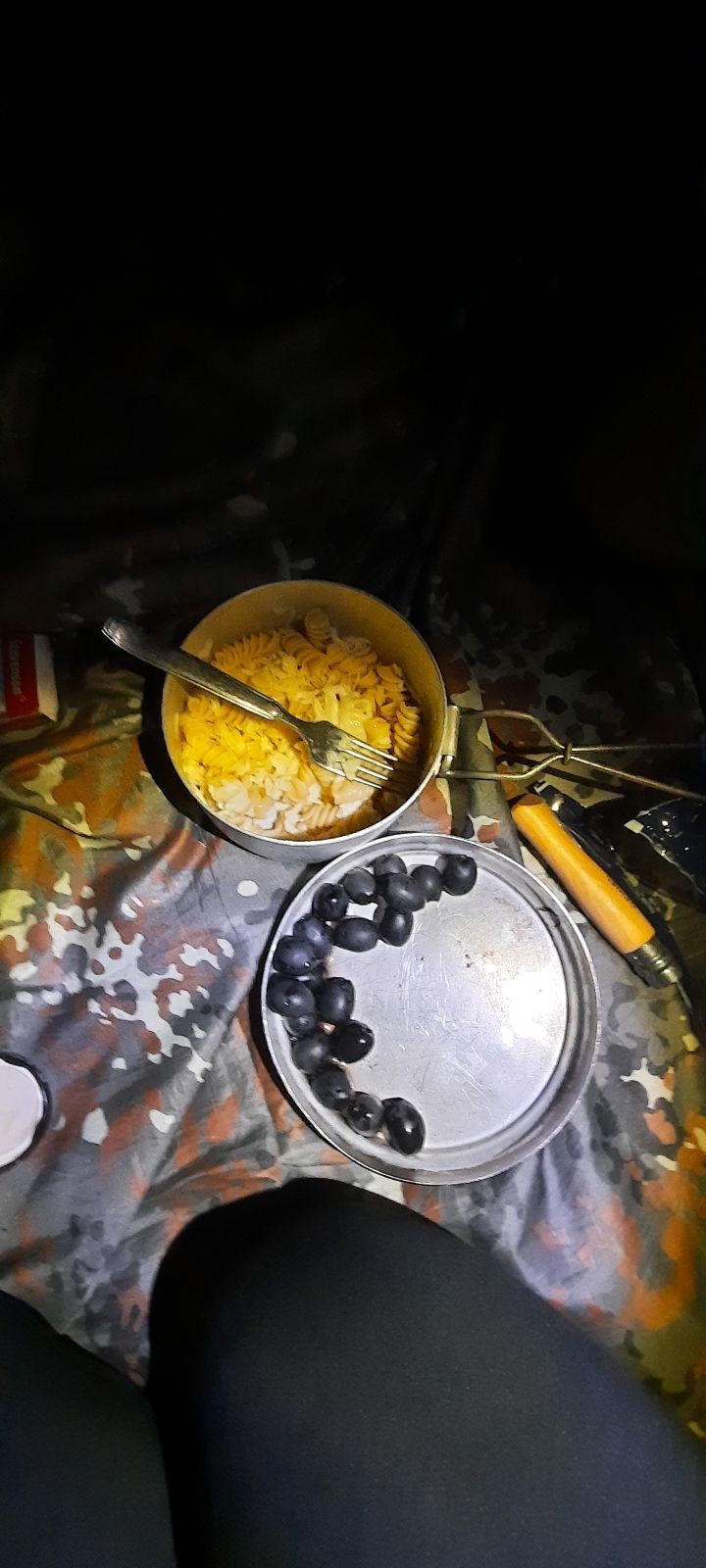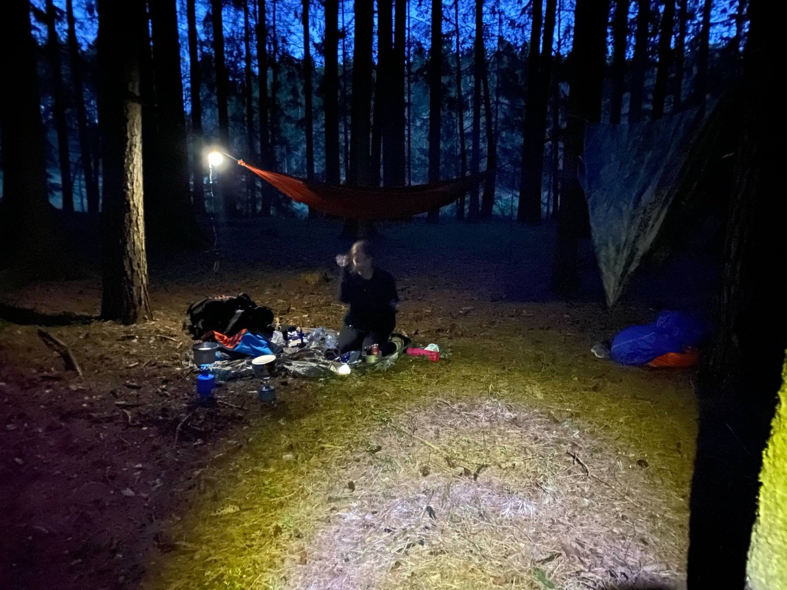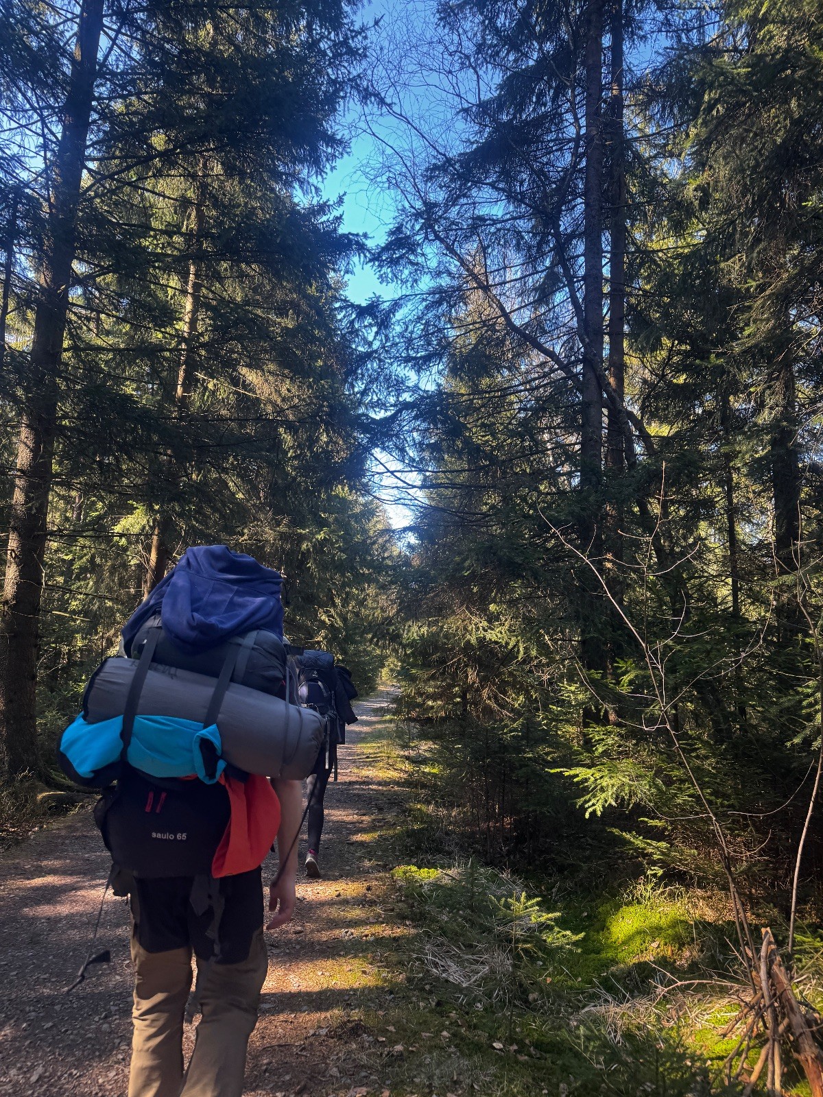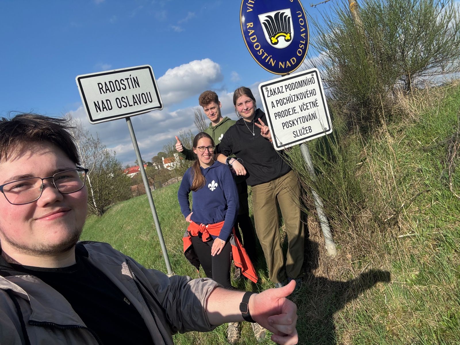 Nohy začínaly bolet po necelých 15 kilometrech a Terka se bohužel musela oddělit a s lehčím batohem se rychlejším tempem vydat do Žďáru nad Sázavou, aby stihla práci další den. No a chudák Ufon už pár kilometrů před tím blbě došlápnul na nerovné cestě a vyvrknul si kotník, proto se s námi nakonec musel také rozloučit. Ale výprava i v menším počtu pokračovala dále a to přes Radostín nad Oslavou, Kotlasy a nakonec až Březí. Z Březí jsme šli cestou kolem tábora a v blízkosti rozcestí se utábořili. Na večeři jsme měli boloňské s těstovinami a olivami. (Jedny boloňské se nám podařilo omylem rozbít v obchodě.) Po jídle už však jen zbývalo zabalit se do spacáku a jít na kutě.