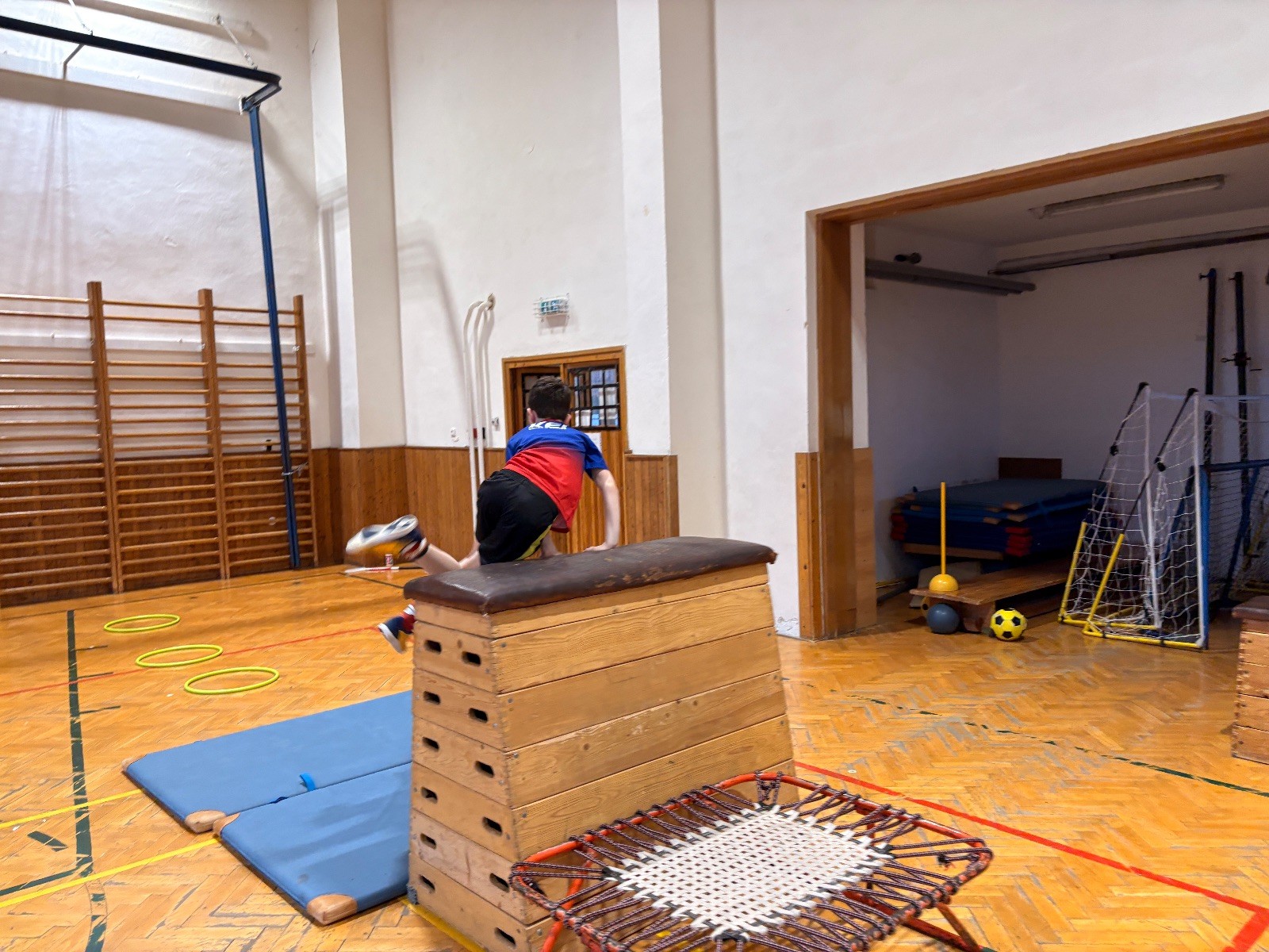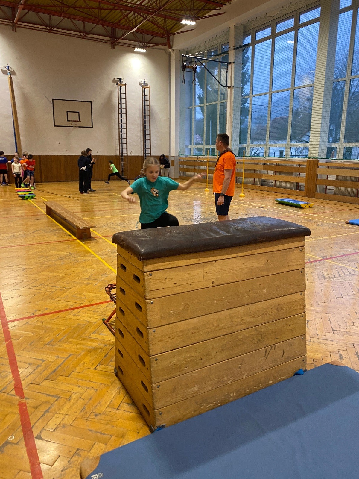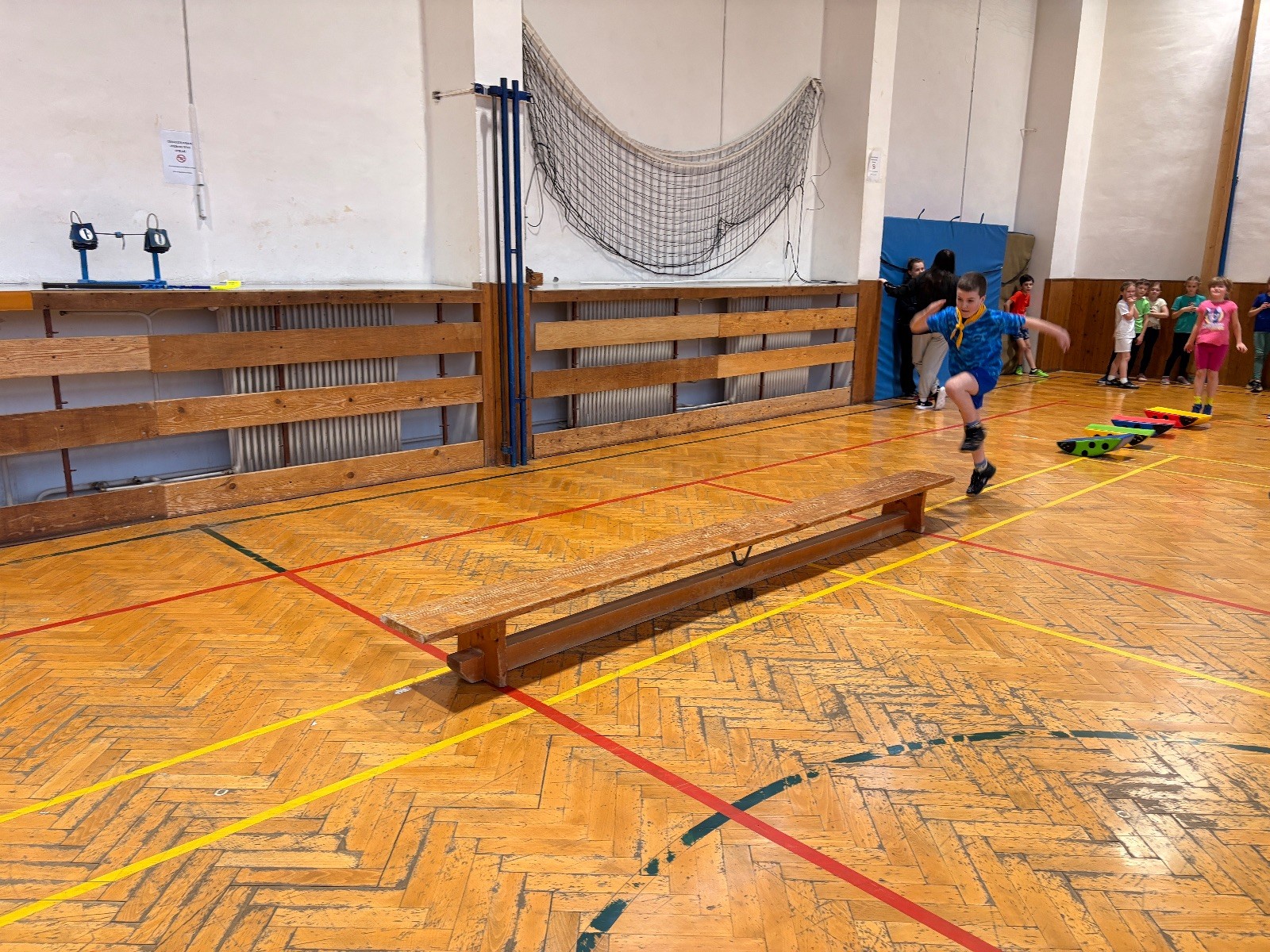 V úterý jsme měli oddílovku, tentokrát pro změnu v tělocvičně. Jako první jsme si s mladšíma dali kreativní opičí dráhu, kterou jsme běželi víckrát, protože všichni byli plní elánu a chtěli si zlepšovat čas.