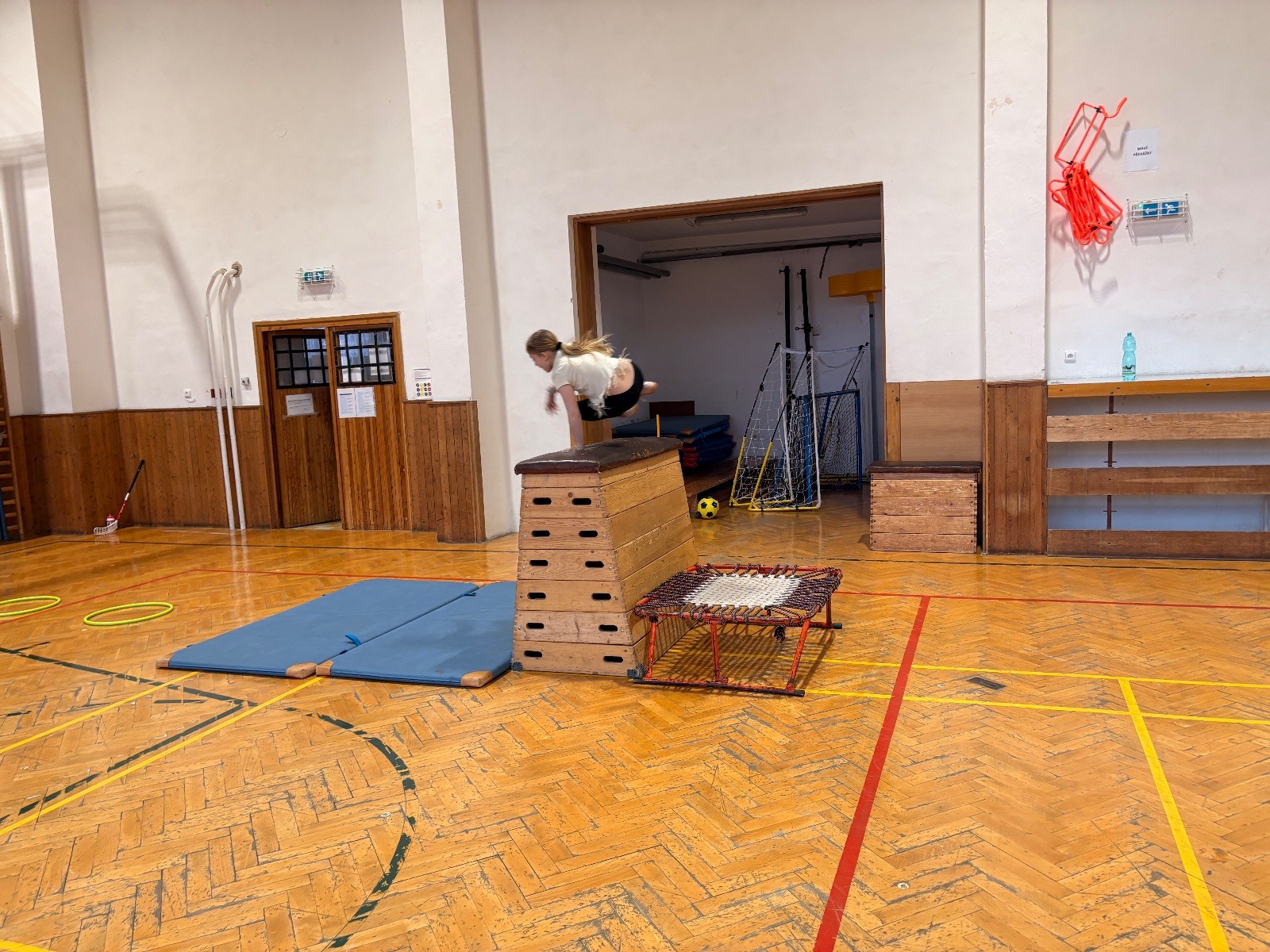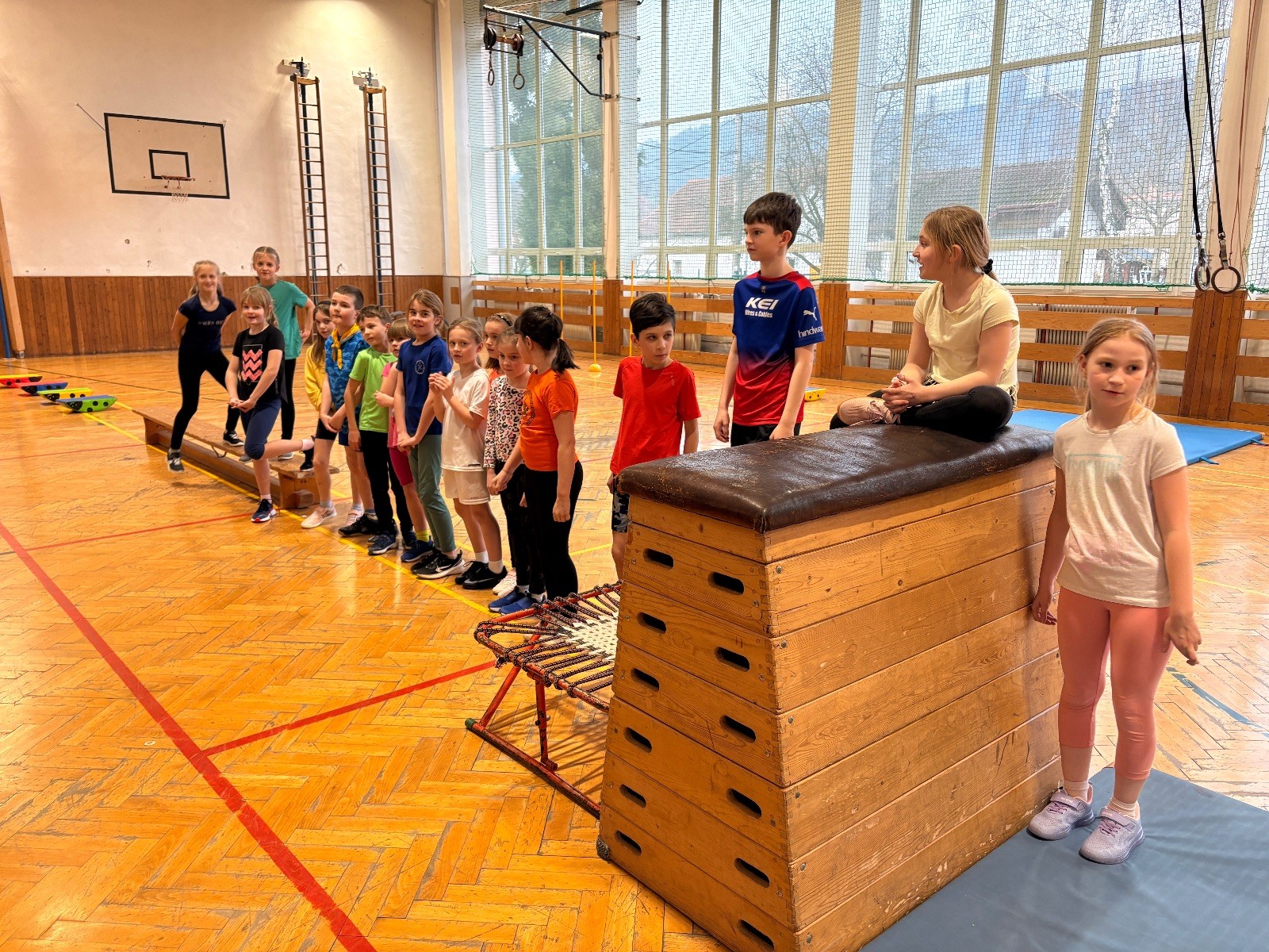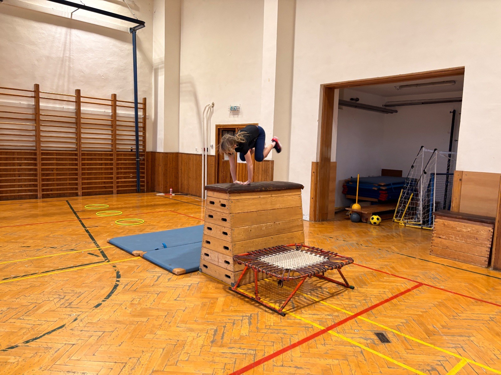 V úterý jsme měli oddílovku, tentokrát pro změnu v tělocvičně. Jako první jsme si s mladšíma dali kreativní opičí dráhu, kterou jsme běželi víckrát, protože všichni byli plní elánu a chtěli si zlepšovat čas.