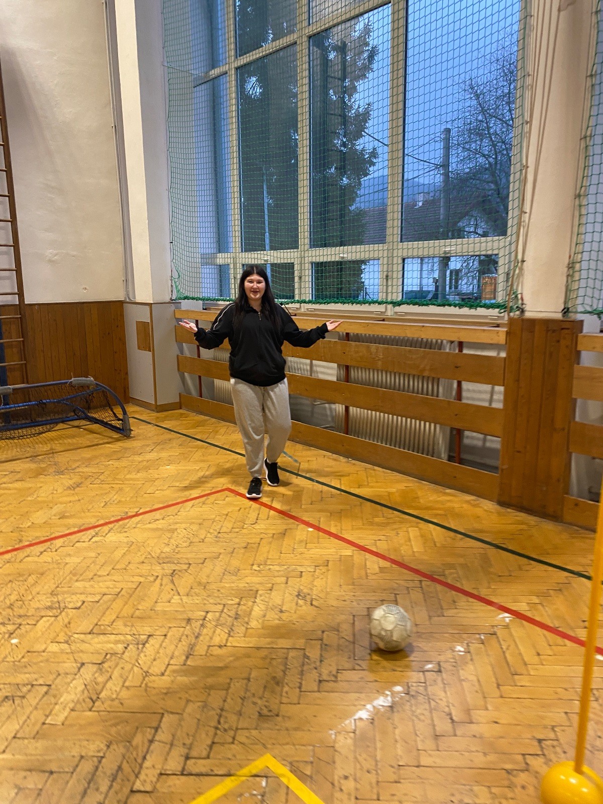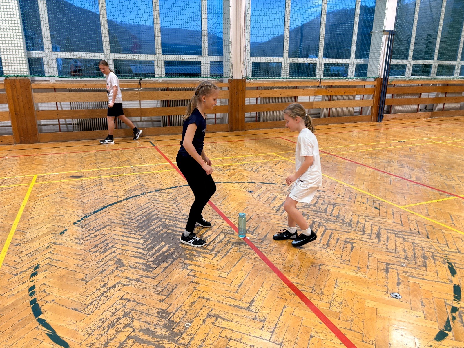Potom jsme se rozloučili s mladšíma, ale pár odvážlivců zůstalo, takže jsme si ještě zahráli florbal. Dali jsme dvě kapitánky – Valču (pisatelku tohoto textu) a Pátu. No a samozřejmě Páťa udělala chybu a vybrala si do týmu Klepeta… nechtěla bych