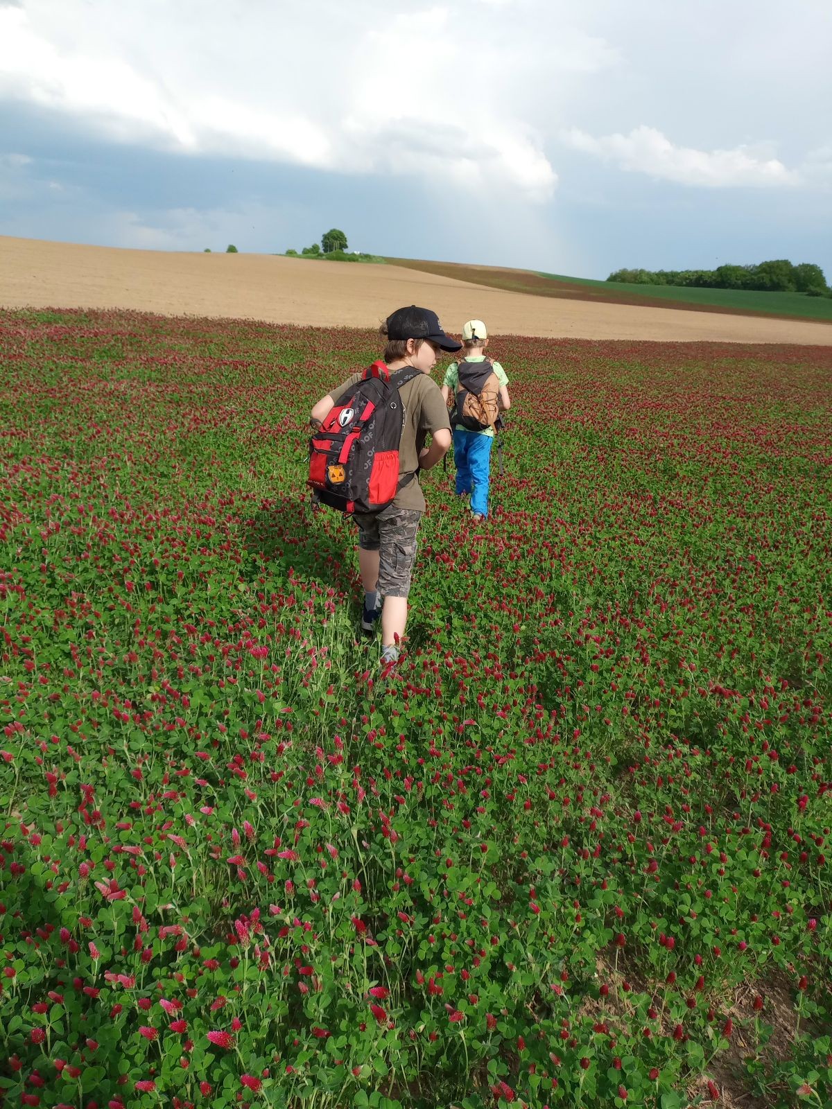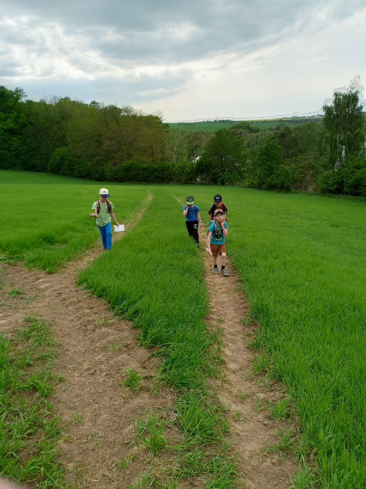 V sobotu jsme se potkali na Boudě a vydali se na výlet po okolí. Naši cestu vedl navigátor Tom a směřovala okolo cihelny, přes les a pole, na Horku a až na Žuráň. Odtud jsme se vraceli zpátky na Boudu, opět přes pole. Ani ne proto, že bychom se ztratili, ale byla to nejkratší cesta a odpoledne mělo začít pršet.