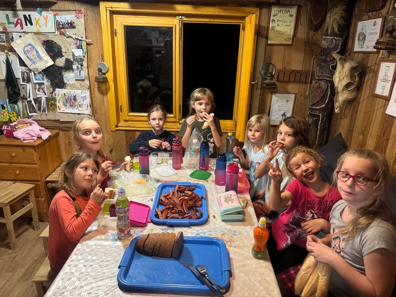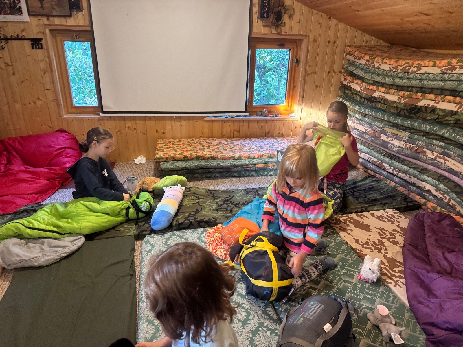 V pátek 27.9. jsme se v plném počtu sešly na Boudě, kde jsme si nejprve připravily místa na spaní a poté začaly s programem. Přesto, že většina naší družinky už zažila skauting ve formě družinky Svišťů, čeká nás spousta nových věcí. Řekly jsme si jak vypadá skautský kroj, rozlišování šátků a pustily jsme si i film z tábora 2023, abychom si ukázaly jak vypadají tábory. Po filmu jsme si udělaly večeři, která měla být původně opékaná nad ohněm, ale počasí nám bohužel nepřálo, tak jsme si špekáčky osmažily na pánvičce. Po jídle nás čekala hygiena a filmový večer s Na vlásku, který taky zakončil celý večer a šlo se spát. Ráno jsme už jen poklidily boudu, sbalily spacáky, zahrály si pár her na hřišti a rozutekly se domů. Všem děkujeme za přespávačku a za méně než měsíc nás čeká další výprava tak doufáme, že se opět sejdeme v plném počtu.