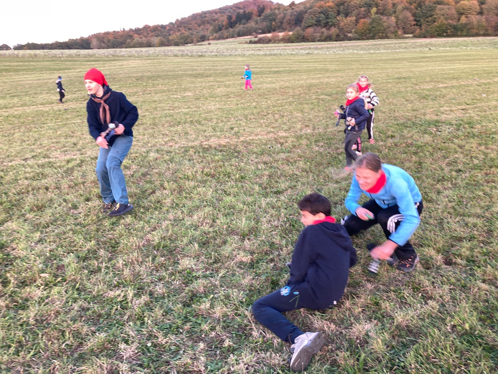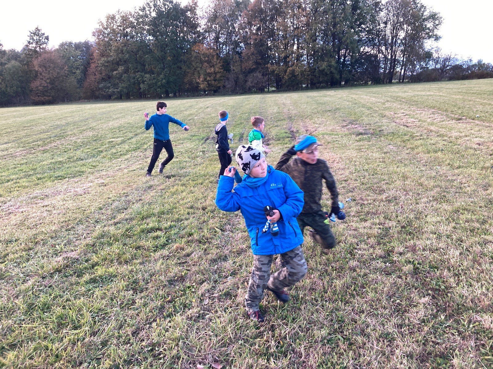 A o čem to dneska bude? Máme za sebou naši první, velkou, společnou oddílovku. Říkáte si „Takových už bylo….“ Ale ne, nebylo! Protože jsme se rozrostli o další dvě družinky Pand a Sokolů. Už nás je bez mála 40 a vypadá, že ještě dalších pár členů by mohlo brzy rozšířit naše řady. Oddílovku hostují Sokoli a začínáme tradičně nástupem, vyvěšením vlajek a pokřiky. Cením hlavně pokřiky nových družinek. Dali si záležet. Bereme hadrové koule a míříme na pole, kde nás čeká koulová bitva. Dělíme se do skupin. Já jsem vybrán do té lepší, jejíž kapitán je Filda. Druhým kapitánem je Vovon. Rozjíždíme první kolo. Brzy po startu však dostávám zásah od Vlaďky a jsem ze hry. Protihráči silně tlačí a ač je náš tým bez pochyby lepší, tak první kolo prohráváme. Náhoda… nevadí. V druhém kole střídáme strany a hra je dlouhá a napínavá. Daří se mi pomstít se za zásah v prvním kole a vyřazuju Vlaďku. Načež schytávám zásah od Mikyho. Závěr je napínavý a těsný, ale překvapivě opět vítězí ten horší tým - červení. Ve 3. kole je to jisté a musí se projevit převaha našeho týmu. Bohužel tomu tak není a i když je modrý tým lepší, tak znovu prohráváme. Konečný výsledek 3:0 tak spíše přičítám nedostatečnému počtu kol a statistické chybě :-). Na závěr se Pandy vrhají na Ondru a dávají mu slušnou nakládačku. Rád jsem se připojil a navrhuju mu ještě do pusy nacpat smradlavé fusekle. Bohužel Ondra vede holky a tam se smradlavé ponožky nenosí… Své věnovat odmítám. Především proto, že jsem dnes navléknul svůj oblíbený model růžových ponožek se vzorem volských ok.