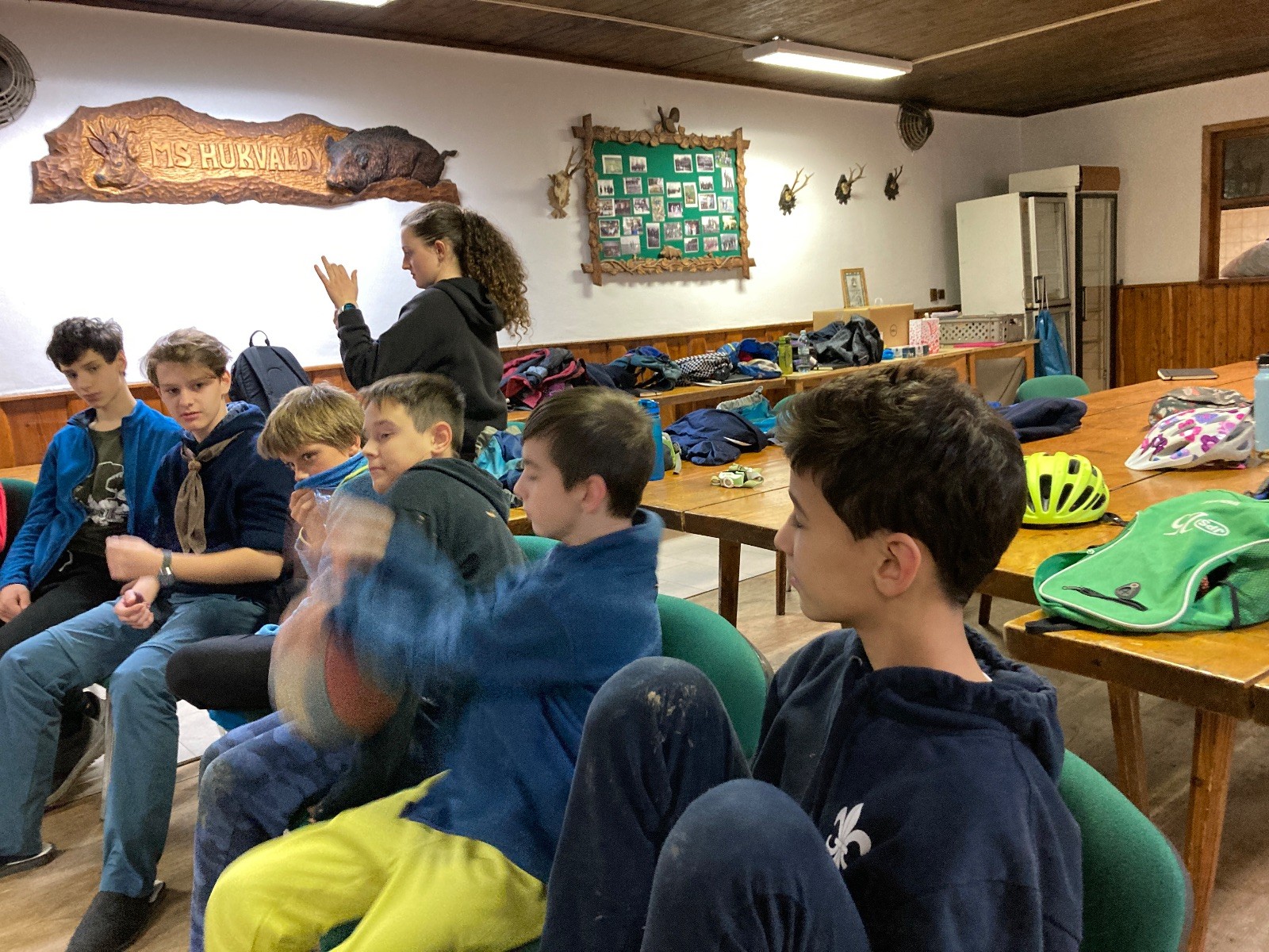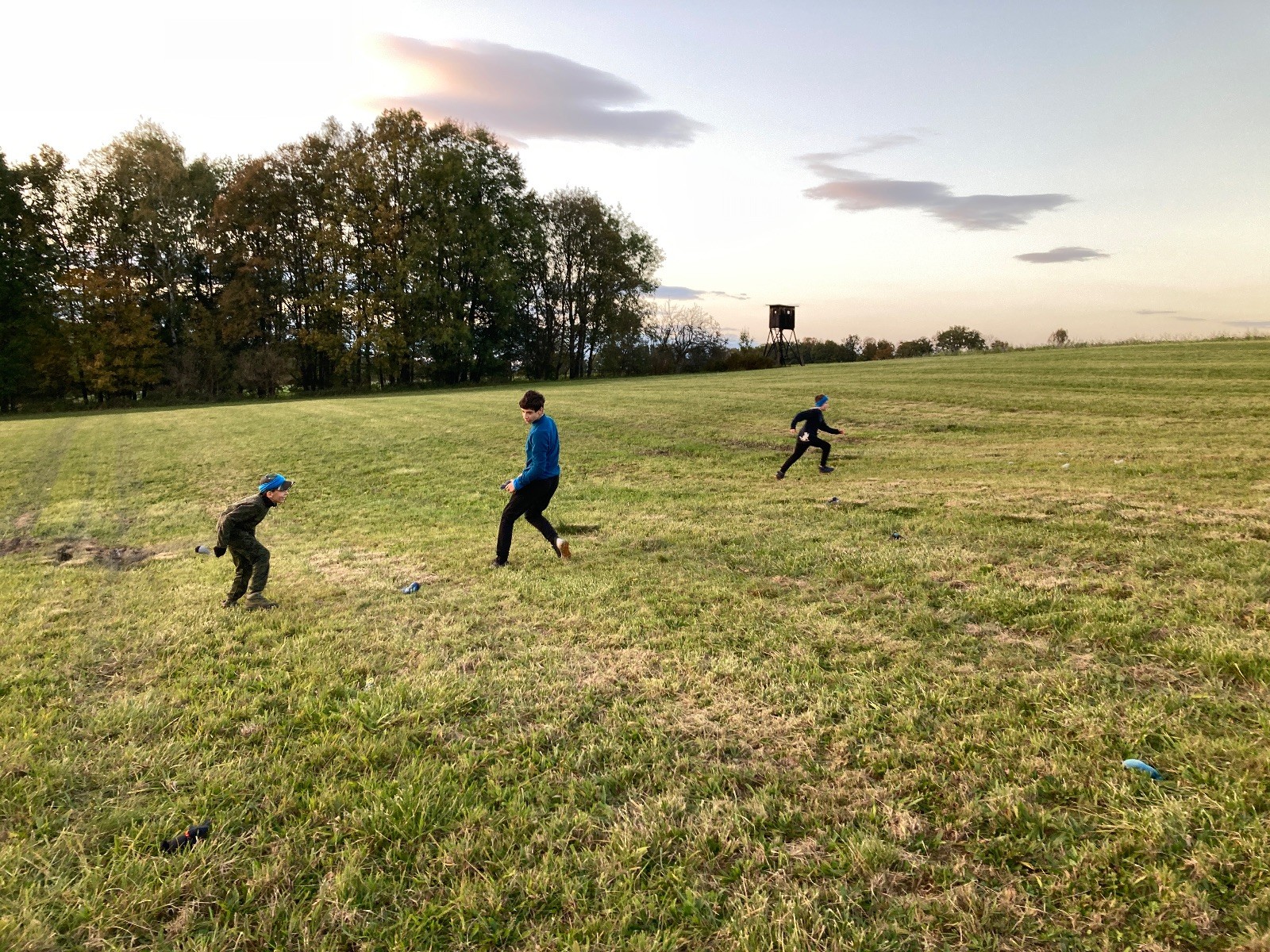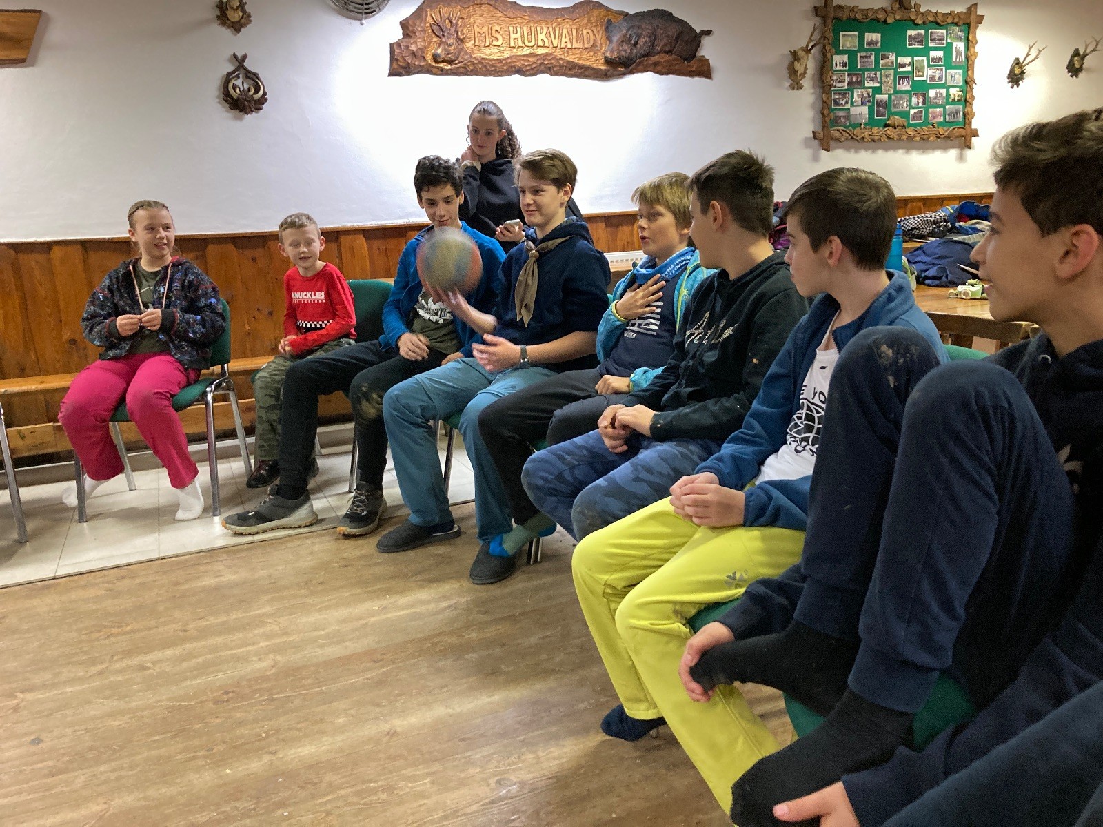Přesouváme se do myslivny, kde čteme kroniky. Kocouři kroniku nemají a místo toho si dáváme 30s ticha. Nevím čím to je, ale jsem velice mile překvapen, že jsme to fakt vydrželi, což se nikdy dříve nestalo. Takže tato událost určitě zasluhuje zvěčnění i v tomto zápise. Mám obavy, že opakovat se to už nebude…. Na závěr dáváme pár kol seznamovačky s balonem. Seznamovačka byla plodná a jelikož šlo někdy špatně rozumět, vznikla nám i nová přezdívka. Apoleonka z Pand budiž ode dneška známá jako Napoleonka či Napoleon.