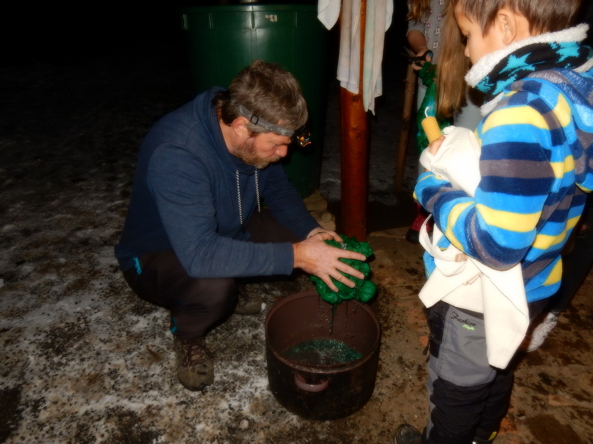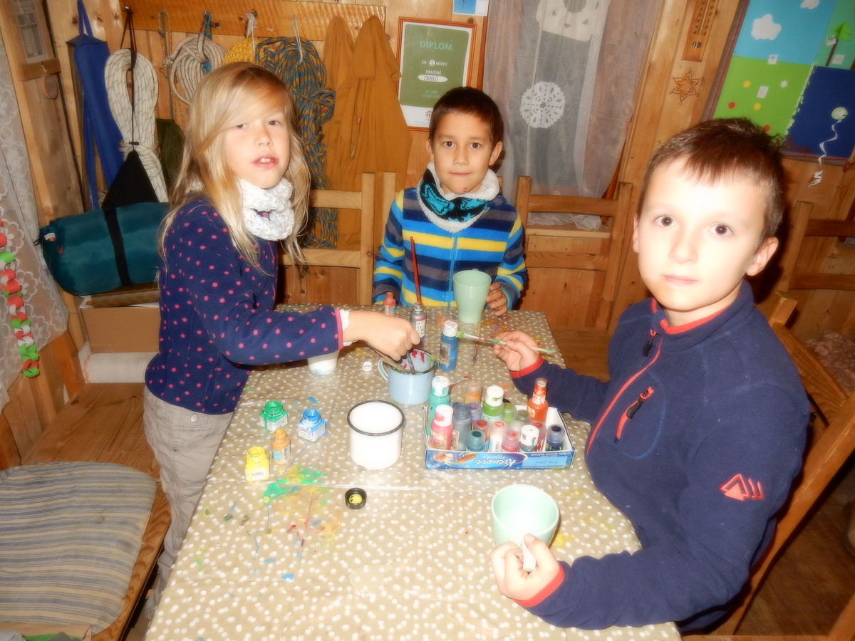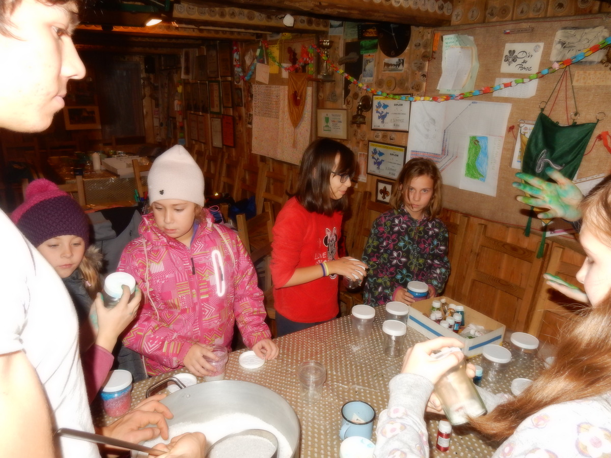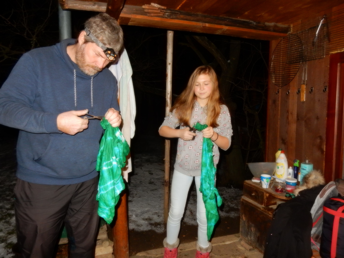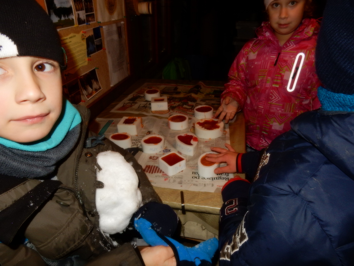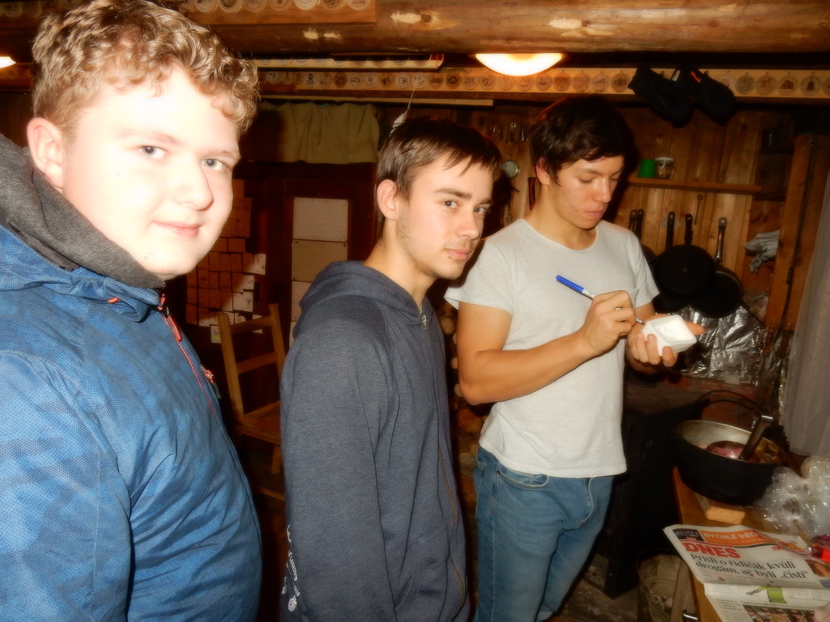 Pátek 13.12.2019. Všude řádí chřipky, šlapanická základka dokonce včera a dnes vyhlásila zavírací den, přesto se rukodělky docela povedly. Zájemců přišlo sice méně než loni, penízků se ale vybralo (a tudíž i výrobků vyrobilo) skoro stejně. A co že si mohli zájemci vyrobit? Ve Staré Boudě se usadil Honza Coufal spolu s Tygry a zájemci si zde mohli zhotovit svíčku ze včelího vosku. Hned vedle v Nové Boudě si mohli u Roxyho vyzdobit plátěnou nákupní tašku nebo u Džanyho stvořit leccos z bavlnek a korálků. Nejvíc husto bylo ve Trojce. U kamen a na lince odlévali do formiček zdobená mýdla Kloub s Krysaříkem, u vedlejšího stolu zase Filíš s Bertem barvili soli do koupele. Na dalším stole jsem já se zájemci svazoval trička k batikování a poslední dva stoly obsadila Terka s Renčou, u nichž se zdobily hrníčky a vázičky. Mladší členové se rozptýlili mezi výrobními místy, všelijak se přesouvali, mezi tím Pumy Ája se Soňou zdobily v podkroví vánoční stromeček a v koutě Staré Boudy Lost se Zubničkou stříhali film z letošního tábora. Prostě základna byla vytížena na 100%. Kolem šesté akce pomalu končila, mrňousci si s rozzářenými úsměvy odnášeli dárečky pro své blízké, vedoucí uklízeli zbylé ekvipmenty k výrobkům a osazenstvo základny se začalo měnit. Přicházeli sem nocovat starší členové, kteří zítra brzy ráno vyrazí pro Betlémské světlo do Vídně... Jura
