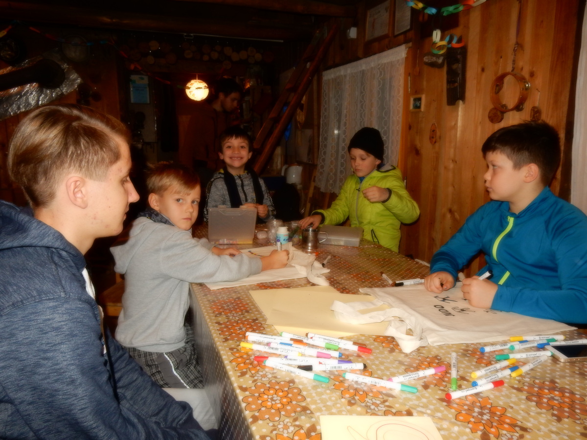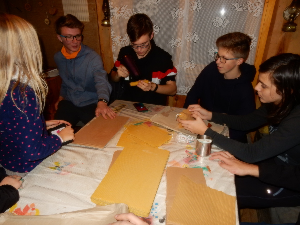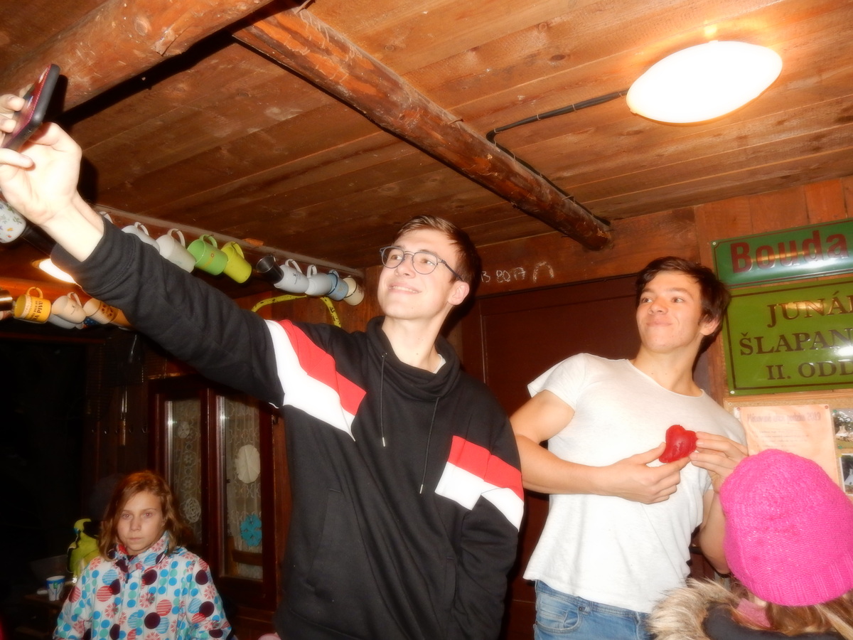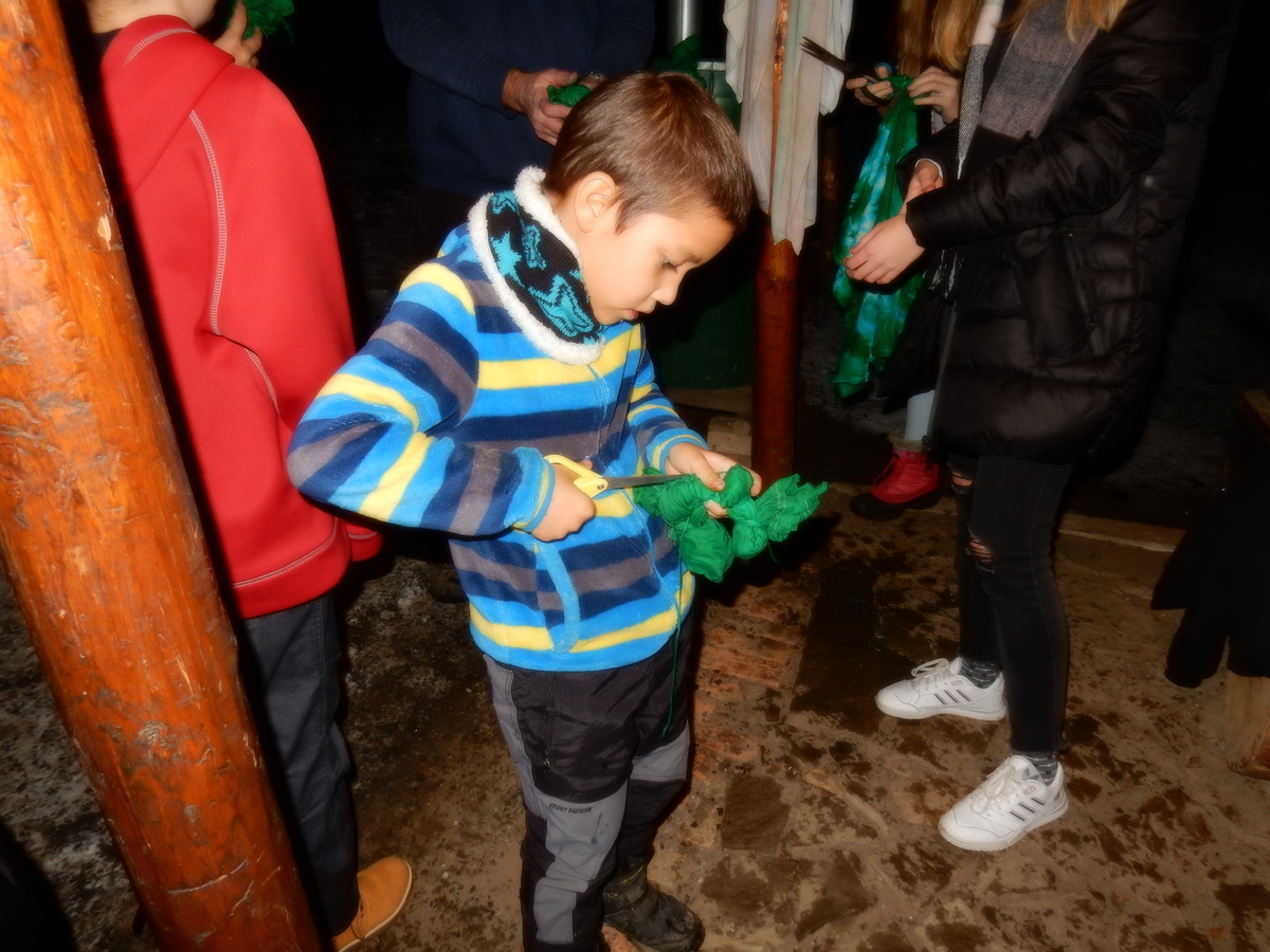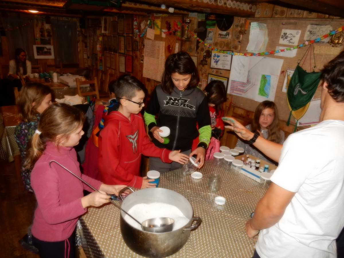 Pátek 13.12.2019. Všude řádí chřipky, šlapanická základka dokonce včera a dnes vyhlásila zavírací den, přesto se rukodělky docela povedly. Zájemců přišlo sice méně než loni, penízků se ale vybralo (a tudíž i výrobků vyrobilo) skoro stejně. A co že si mohli zájemci vyrobit? Ve Staré Boudě se usadil Honza Coufal spolu s Tygry a zájemci si zde mohli zhotovit svíčku ze včelího vosku. Hned vedle v Nové Boudě si mohli u Roxyho vyzdobit plátěnou nákupní tašku nebo u Džanyho stvořit leccos z bavlnek a korálků. Nejvíc husto bylo ve Trojce. U kamen a na lince odlévali do formiček zdobená mýdla Kloub s Krysaříkem, u vedlejšího stolu zase Filíš s Bertem barvili soli do koupele. Na dalším stole jsem já se zájemci svazoval trička k batikování a poslední dva stoly obsadila Terka s Renčou, u nichž se zdobily hrníčky a vázičky. Mladší členové se rozptýlili mezi výrobními místy, všelijak se přesouvali, mezi tím Pumy Ája se Soňou zdobily v podkroví vánoční stromeček a v koutě Staré Boudy Lost se Zubničkou stříhali film z letošního tábora. Prostě základna byla vytížena na 100%. Kolem šesté akce pomalu končila, mrňousci si s rozzářenými úsměvy odnášeli dárečky pro své blízké, vedoucí uklízeli zbylé ekvipmenty k výrobkům a osazenstvo základny se začalo měnit. Přicházeli sem nocovat starší členové, kteří zítra brzy ráno vyrazí pro Betlémské světlo do Vídně... Jura