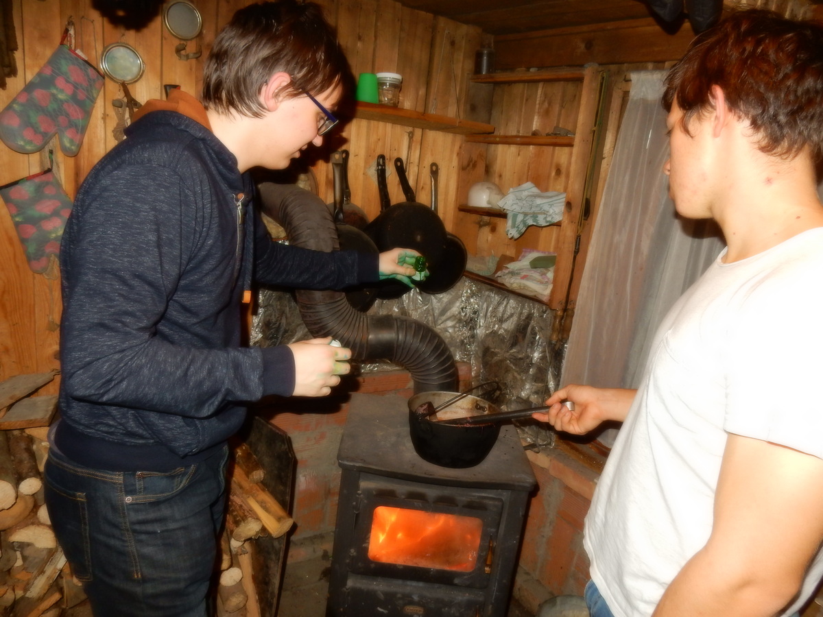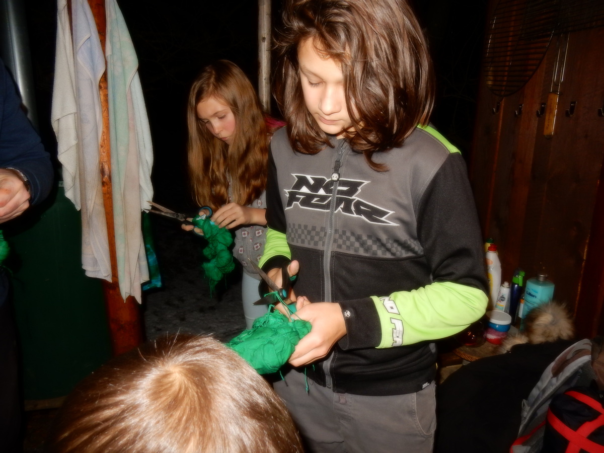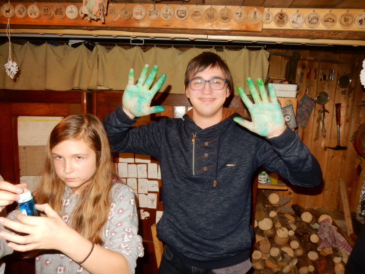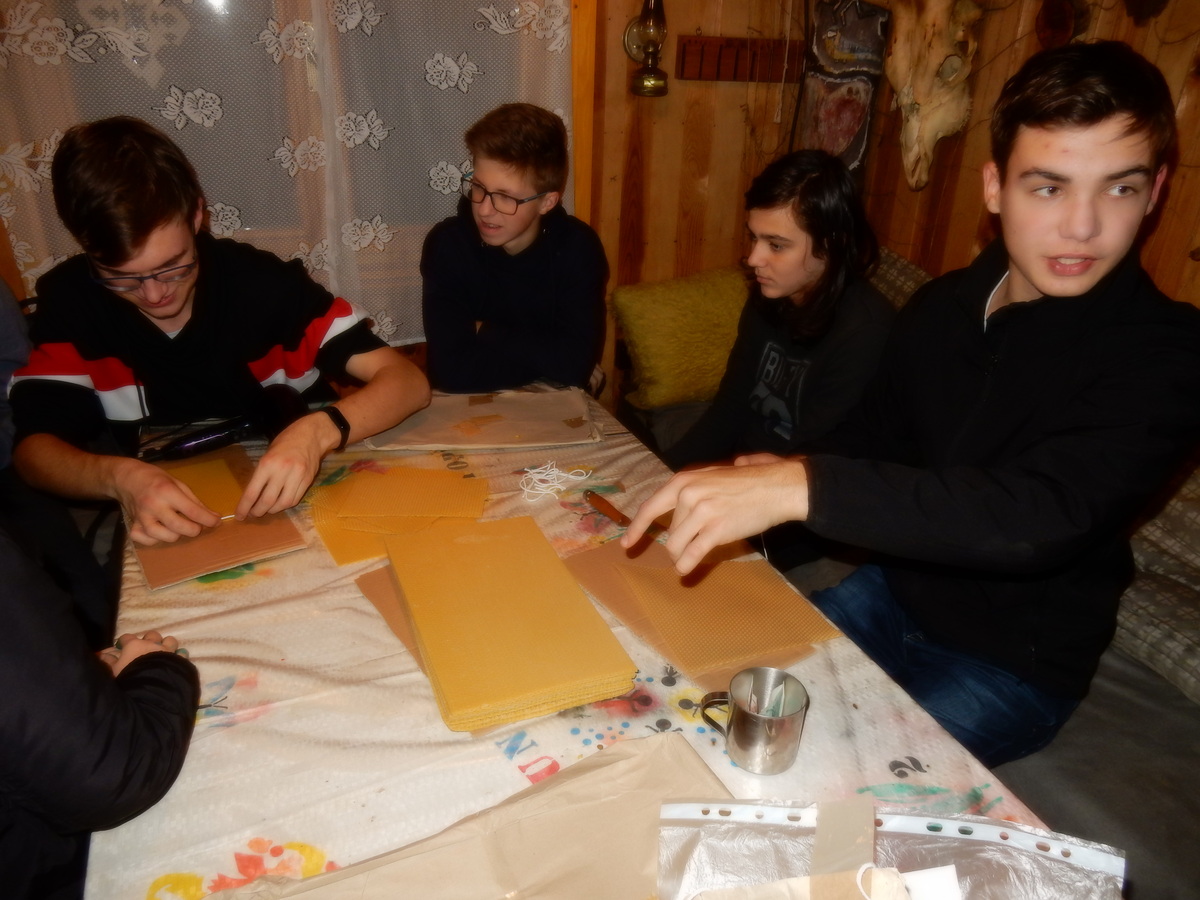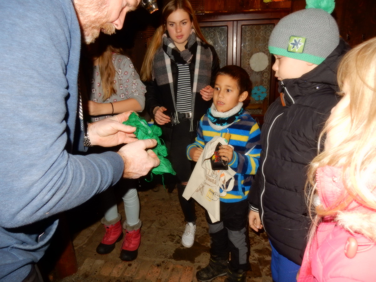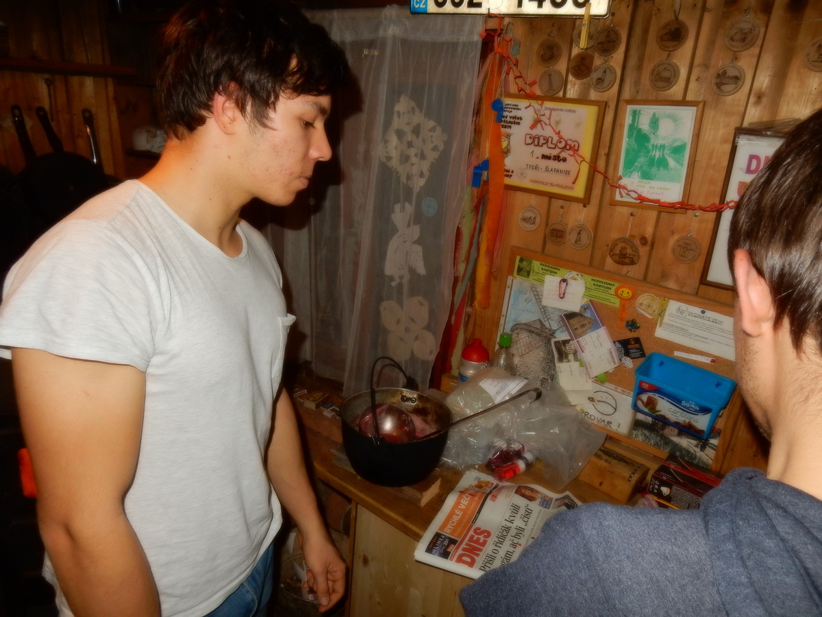 Pátek 13.12.2019. Všude řádí chřipky, šlapanická základka dokonce včera a dnes vyhlásila zavírací den, přesto se rukodělky docela povedly. Zájemců přišlo sice méně než loni, penízků se ale vybralo (a tudíž i výrobků vyrobilo) skoro stejně. A co že si mohli zájemci vyrobit? Ve Staré Boudě se usadil Honza Coufal spolu s Tygry a zájemci si zde mohli zhotovit svíčku ze včelího vosku. Hned vedle v Nové Boudě si mohli u Roxyho vyzdobit plátěnou nákupní tašku nebo u Džanyho stvořit leccos z bavlnek a korálků. Nejvíc husto bylo ve Trojce. U kamen a na lince odlévali do formiček zdobená mýdla Kloub s Krysaříkem, u vedlejšího stolu zase Filíš s Bertem barvili soli do koupele. Na dalším stole jsem já se zájemci svazoval trička k batikování a poslední dva stoly obsadila Terka s Renčou, u nichž se zdobily hrníčky a vázičky. Mladší členové se rozptýlili mezi výrobními místy, všelijak se přesouvali, mezi tím Pumy Ája se Soňou zdobily v podkroví vánoční stromeček a v koutě Staré Boudy Lost se Zubničkou stříhali film z letošního tábora. Prostě základna byla vytížena na 100%. Kolem šesté akce pomalu končila, mrňousci si s rozzářenými úsměvy odnášeli dárečky pro své blízké, vedoucí uklízeli zbylé ekvipmenty k výrobkům a osazenstvo základny se začalo měnit. Přicházeli sem nocovat starší členové, kteří zítra brzy ráno vyrazí pro Betlémské světlo do Vídně... Jura