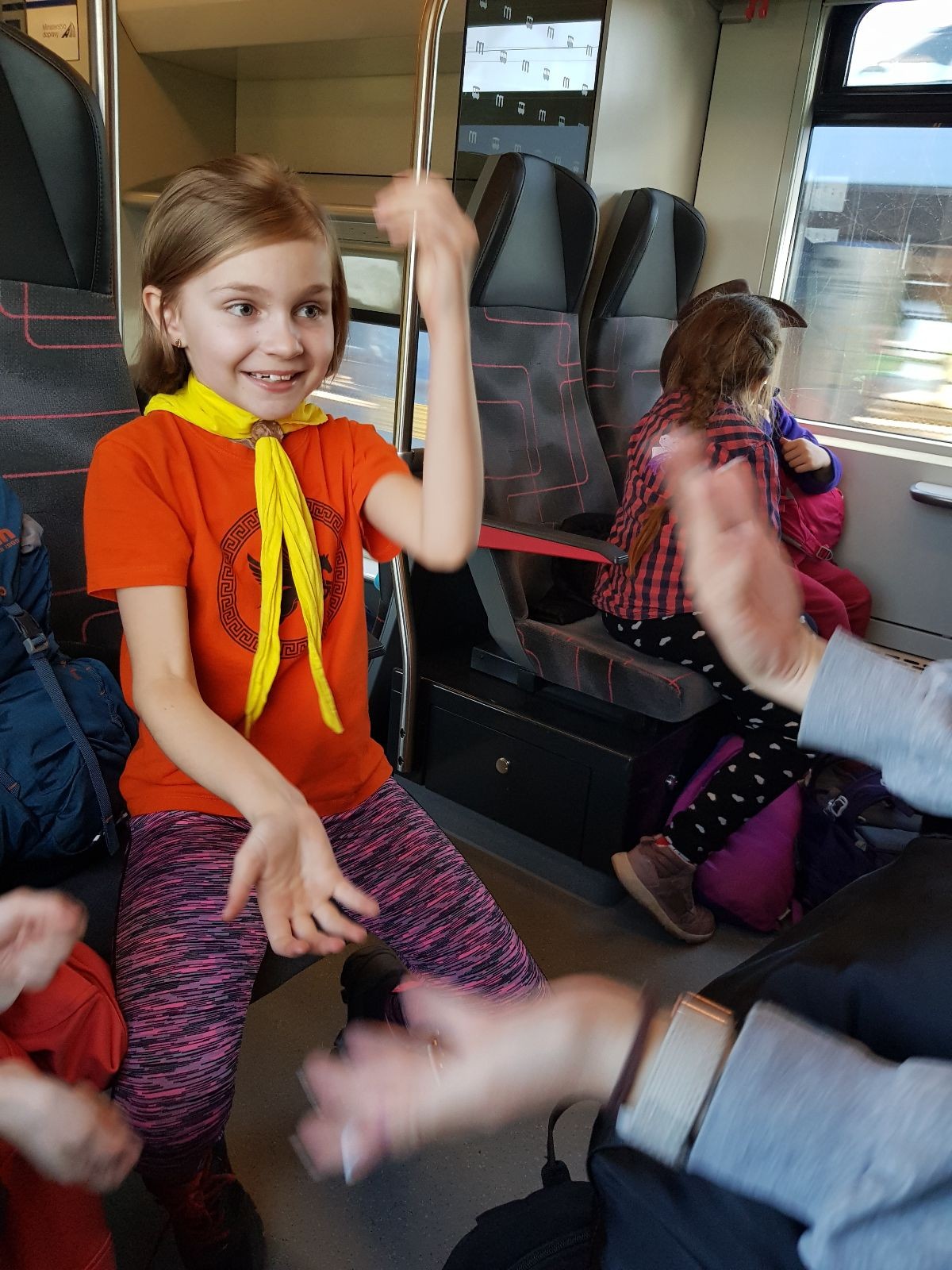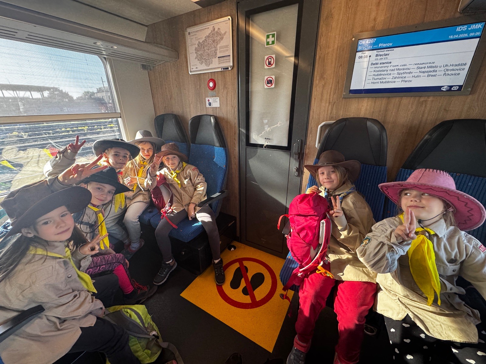 V 6:45 jsme vyrazily trolejbusem, kde se postupně začal probouzet zbytek výpravy. Následovala cesta dvěma vlaky do Mikulčic, během které jsme stihly svačiny, přesuny mezi vagóny i první vlny únavy. Přesto jsme dorazily v plném počtu a relativně v dobré náladě.