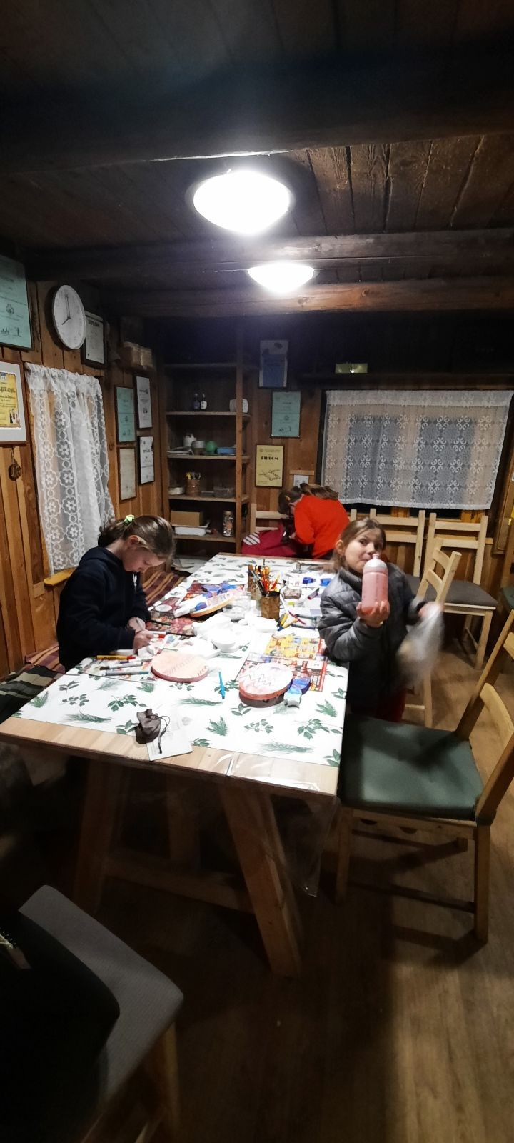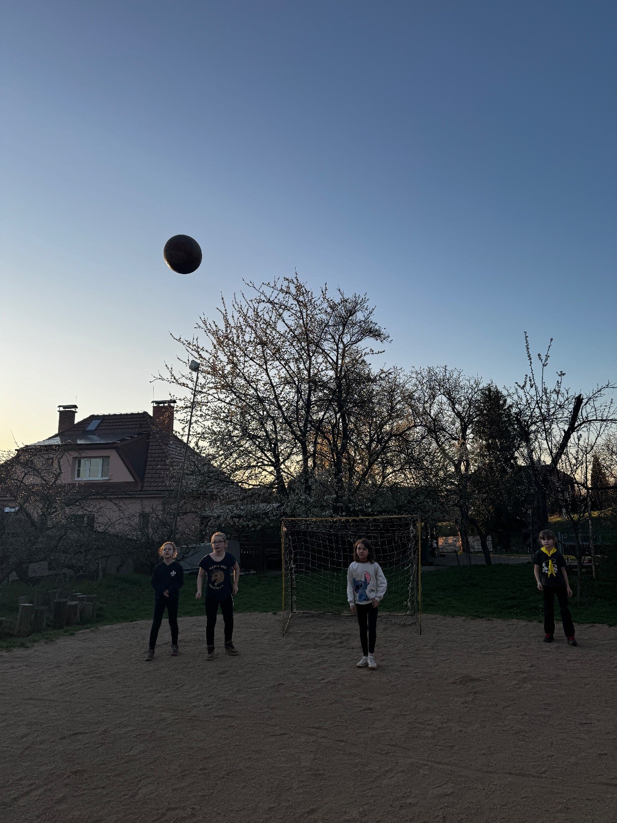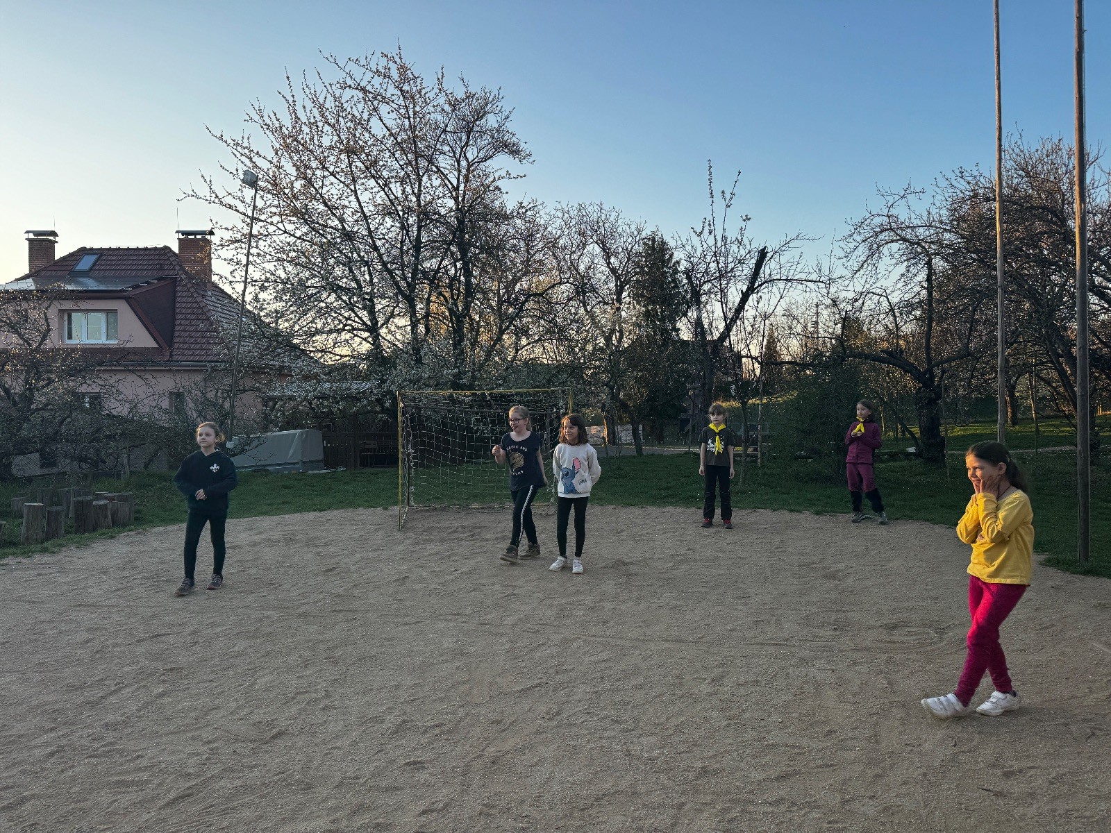 4.4. v pátek večer jsme se sešly na boudě v počtu 6+2. Jako první jsme daly vybišu na vyblbnutí a potom nám Ája jako dárek od jednoho hodného pána donesla polystyrenové vajíčka, slepičky, králíčky a motýlky, takže jsme do večeře malovaly a zpívaly skautské písničky. Pak už jsme se zase po dlouhé době přesunuly k ohni na večeři. Jakmile byly všichni najezení tak jsme se rozutekly do boudy a klasicky skoukly film. Tentokrát vyhrály Příšerky s.r.o. Pak už zbývalo jen vyčistit zuby a spát, abychom byly vyspaní na výpravu, co nás čekala další den.