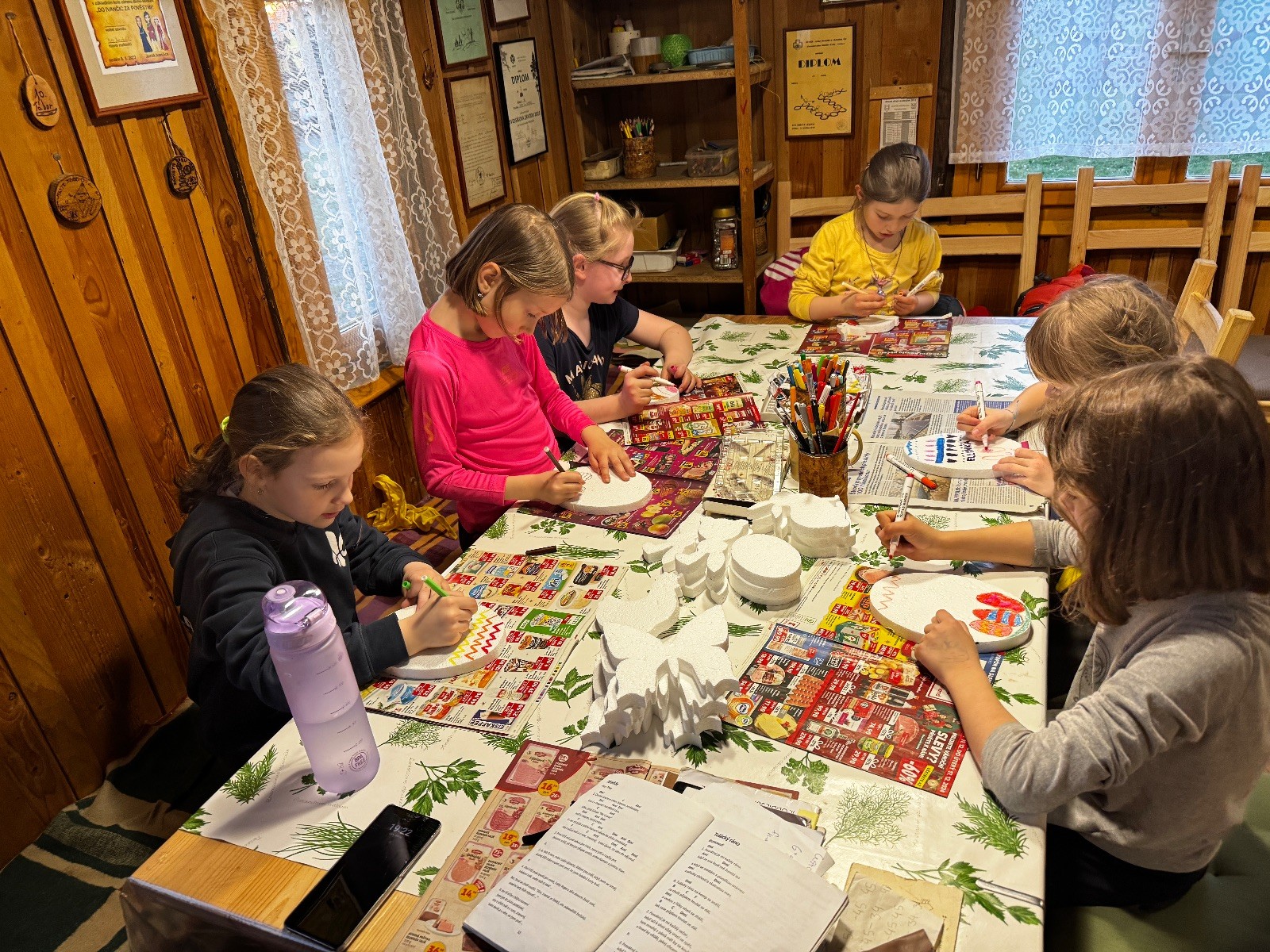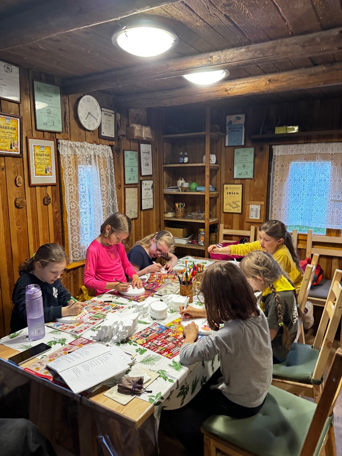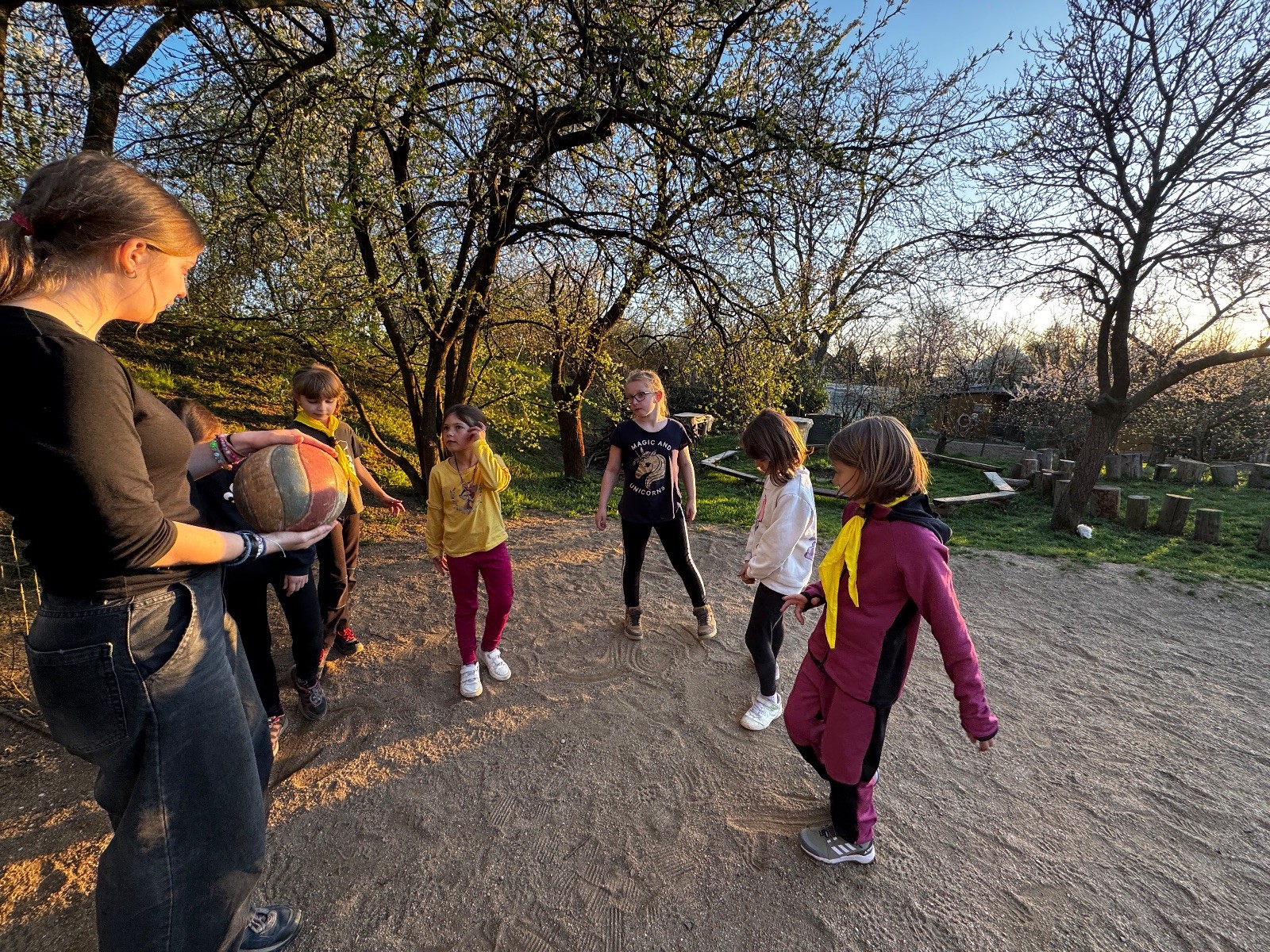 4.4. v pátek večer jsme se sešly na boudě v počtu 6+2. Jako první jsme daly vybišu na vyblbnutí a potom nám Ája jako dárek od jednoho hodného pána donesla polystyrenové vajíčka, slepičky, králíčky a motýlky, takže jsme do večeře malovaly a zpívaly skautské písničky. Pak už jsme se zase po dlouhé době přesunuly k ohni na večeři. Jakmile byly všichni najezení tak jsme se rozutekly do boudy a klasicky skoukly film. Tentokrát vyhrály Příšerky s.r.o. Pak už zbývalo jen vyčistit zuby a spát, abychom byly vyspaní na výpravu, co nás čekala další den.