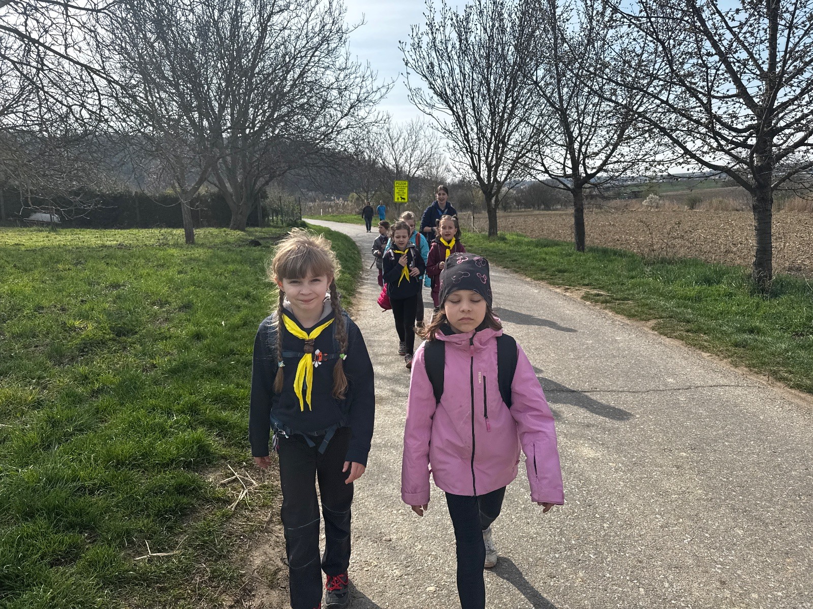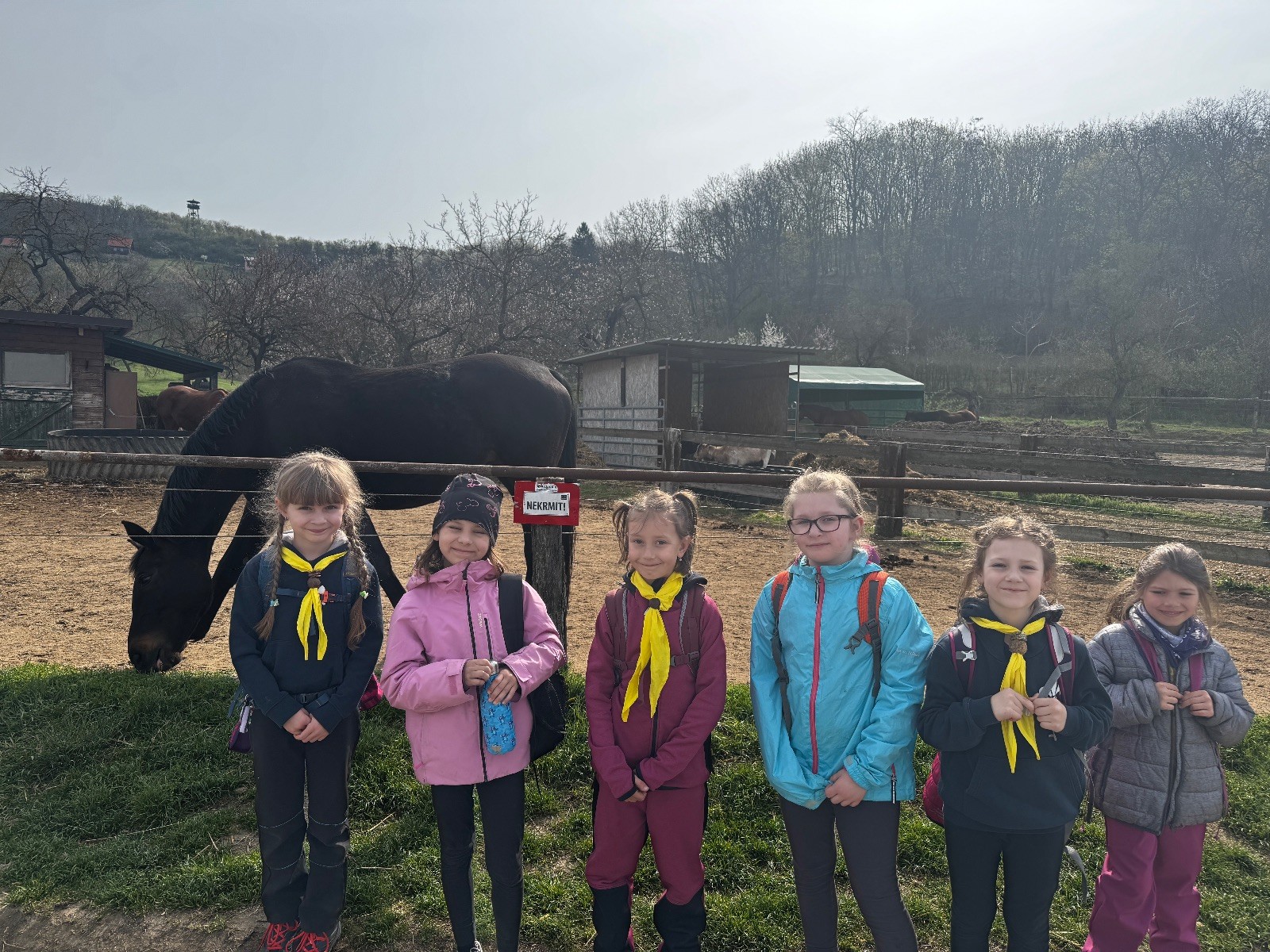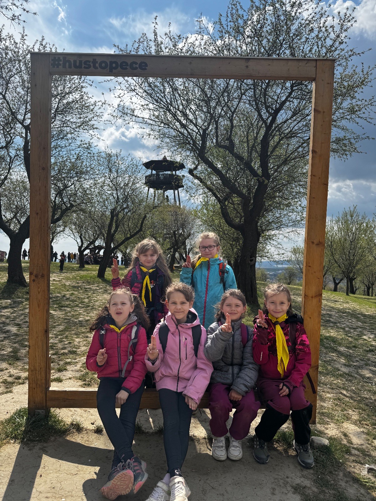 V sobotu jsme se probudily o půl osmé, v rychlosti se nachystaly, vyčistily zuby, někdo se stihl i nasnídat a pak už jsme vyrazily na vlak. Tam se většina holek dosnídala/doplňila energii. Vlak nás dovezl do Hustopečí u Brna, kde nás čekala hezká procházka, prošly jsme se kolem koní, vyšláply si kopeček na rozhlednu, kde jsme poobědvaly, a pak vyrazily zase zpátky dolů. Za odměnu, za hezky vyšlápnutý kopec, jsme se stavily do COOPu a pak se přesunuly pár metrů do lesíka, kde jsme se zabavily pár hrami. Pak už zase jenom hopem na vlak do Brna, trolejákem do Šlapek, kopec na boudu, poklidit a domů!!!