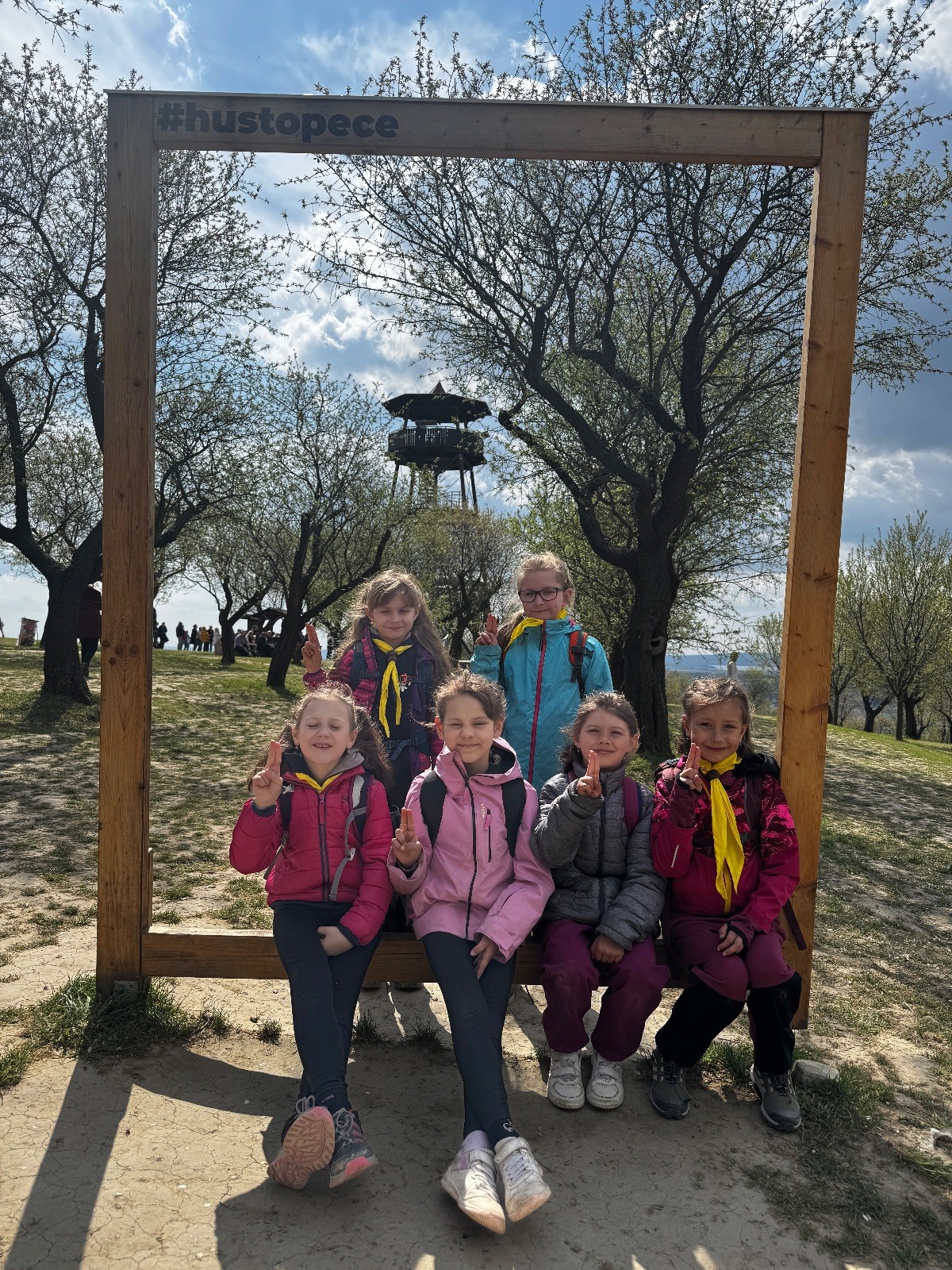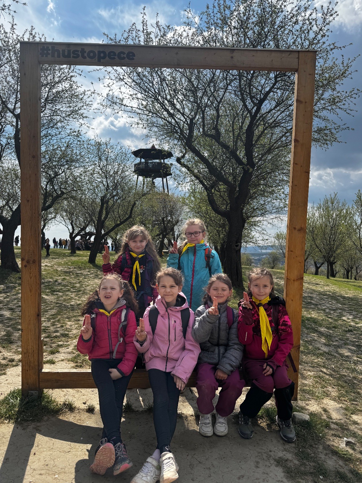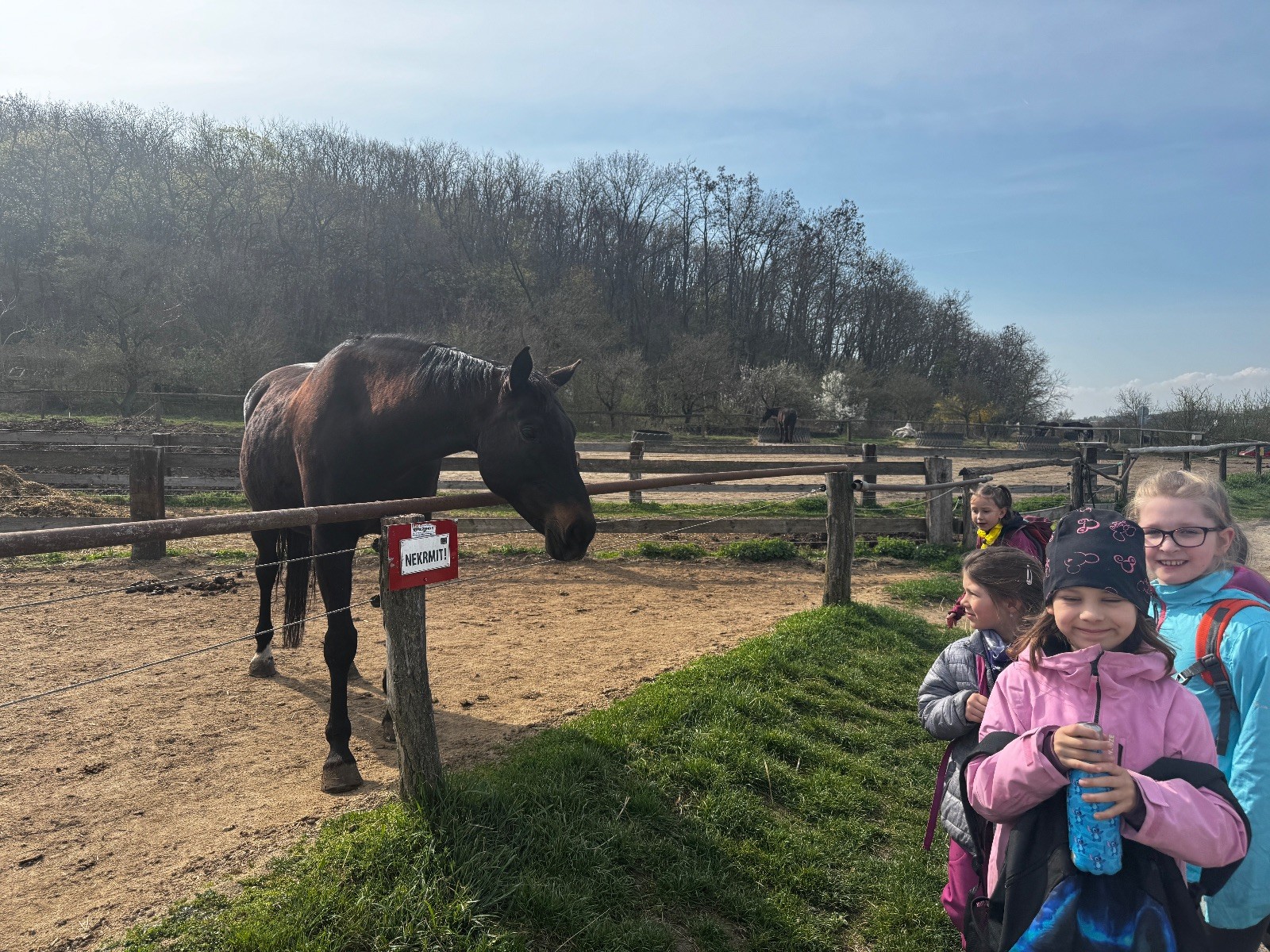 V sobotu jsme se probudily o půl osmé, v rychlosti se nachystaly, vyčistily zuby, někdo se stihl i nasnídat a pak už jsme vyrazily na vlak. Tam se většina holek dosnídala/doplňila energii. Vlak nás dovezl do Hustopečí u Brna, kde nás čekala hezká procházka, prošly jsme se kolem koní, vyšláply si kopeček na rozhlednu, kde jsme poobědvaly, a pak vyrazily zase zpátky dolů. Za odměnu, za hezky vyšlápnutý kopec, jsme se stavily do COOPu a pak se přesunuly pár metrů do lesíka, kde jsme se zabavily pár hrami. Pak už zase jenom hopem na vlak do Brna, trolejákem do Šlapek, kopec na boudu, poklidit a domů!!!