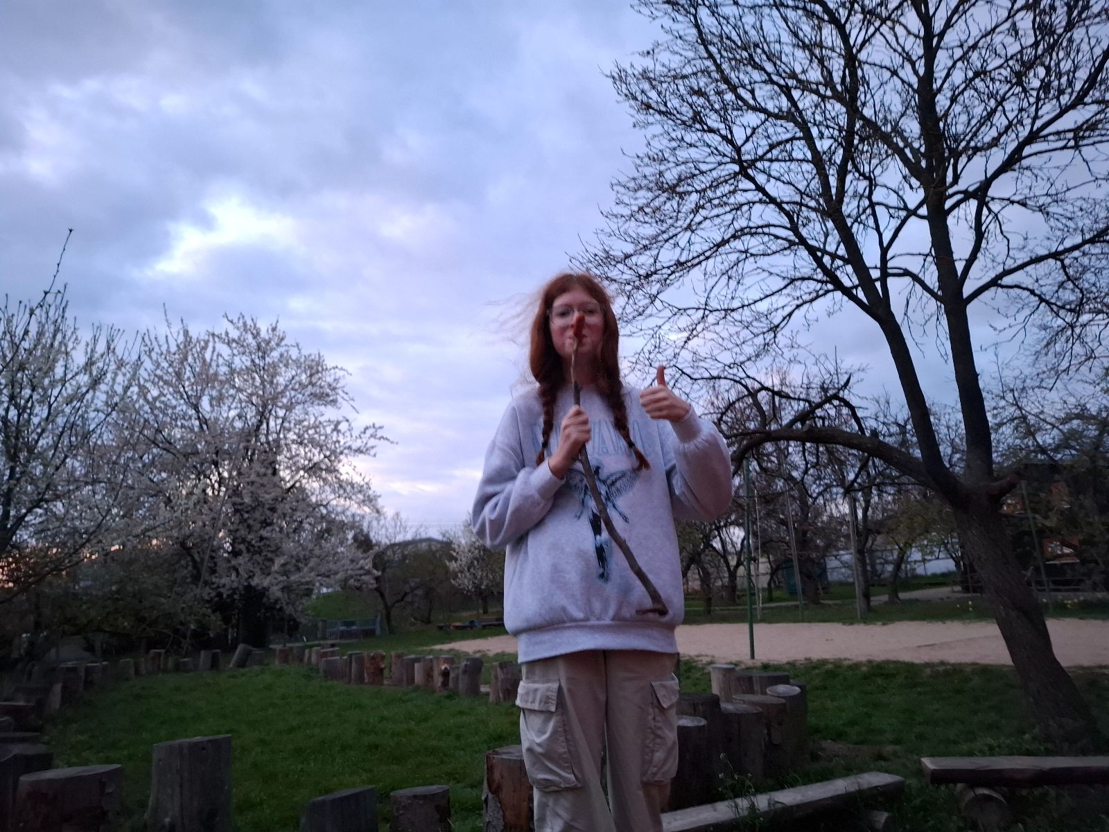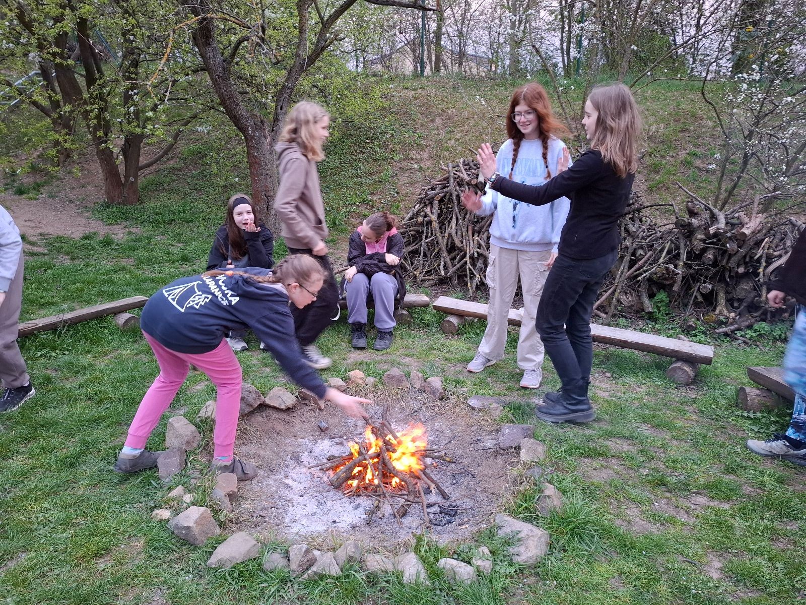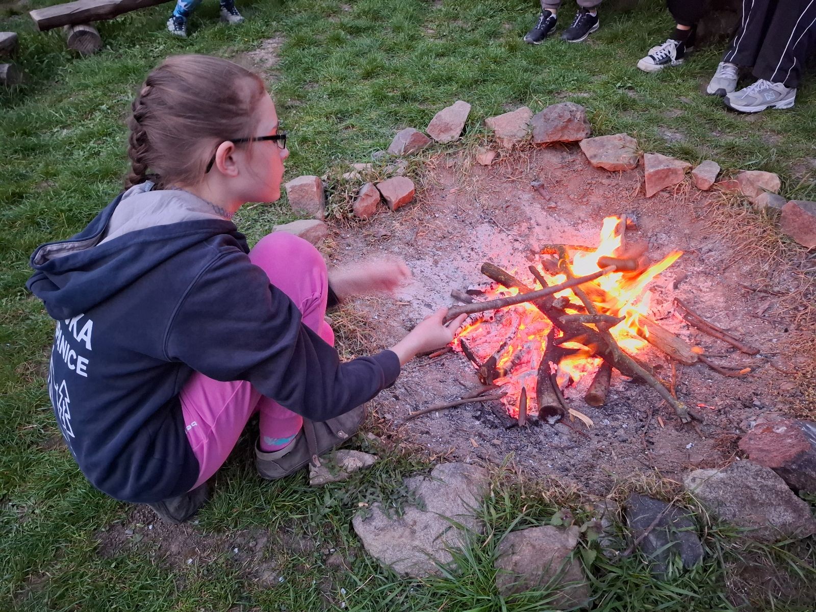 Ty z nás, které se zúčastní Svojsíkáče, rozdělaly oheň, na kterém jsme si opekly večeři. Zrovna, když jsme si pochutnávaly na našich výtvorech, přišla Viki s Týnou, že na nástěnce našly balíček. Na něm bylo napsáno že o obsah si máme zahrát hru. Vybraly jsme Výbušná koťátka. Výhercem naší napínavé hry byla Any, která jako vítěz mohla rozbalit balíček, ve kterém našla ručně vyráběnou soví duběnku. Kdo ji vyrobil, to nevíme a asi ani nezjistíme.