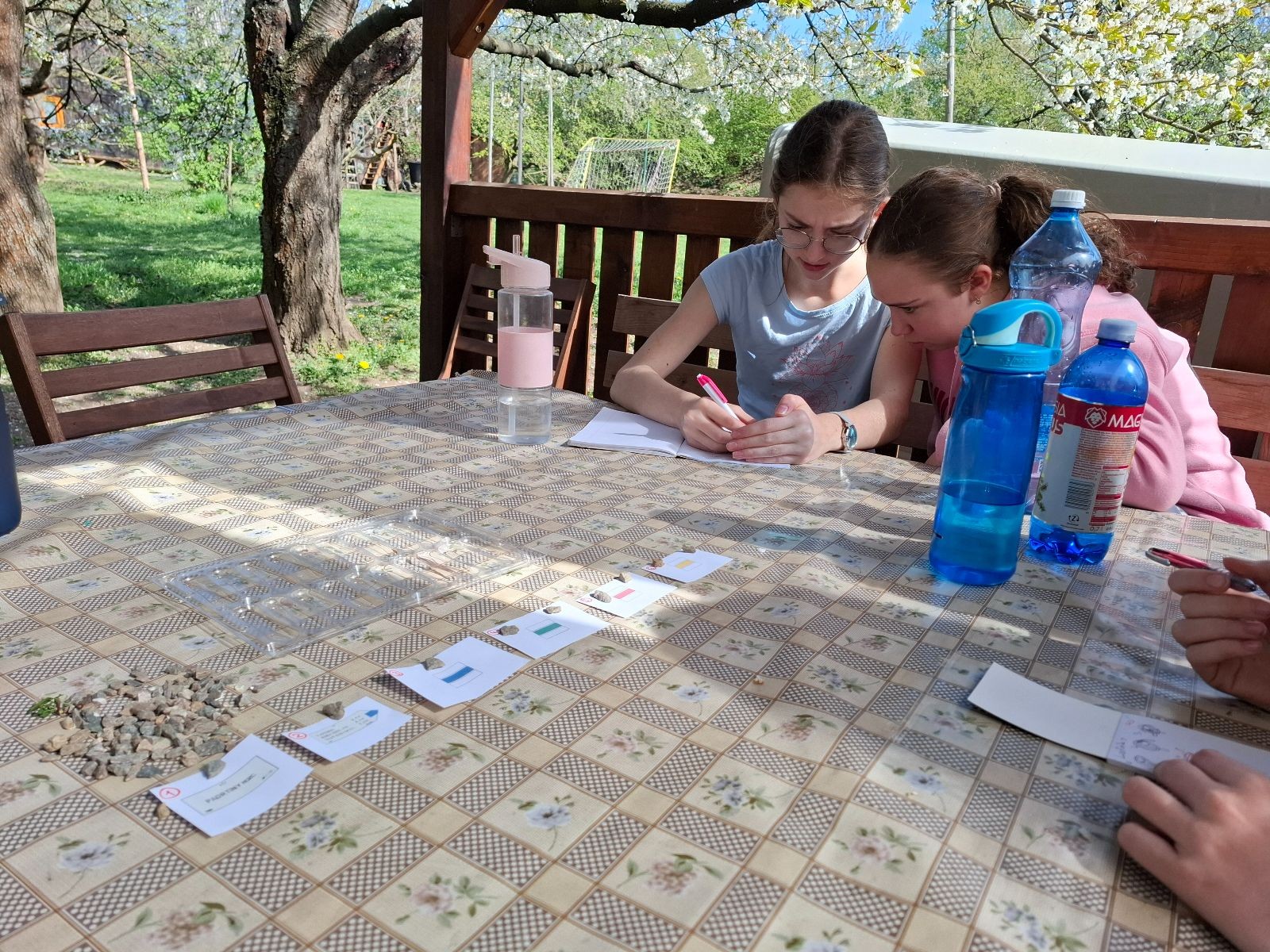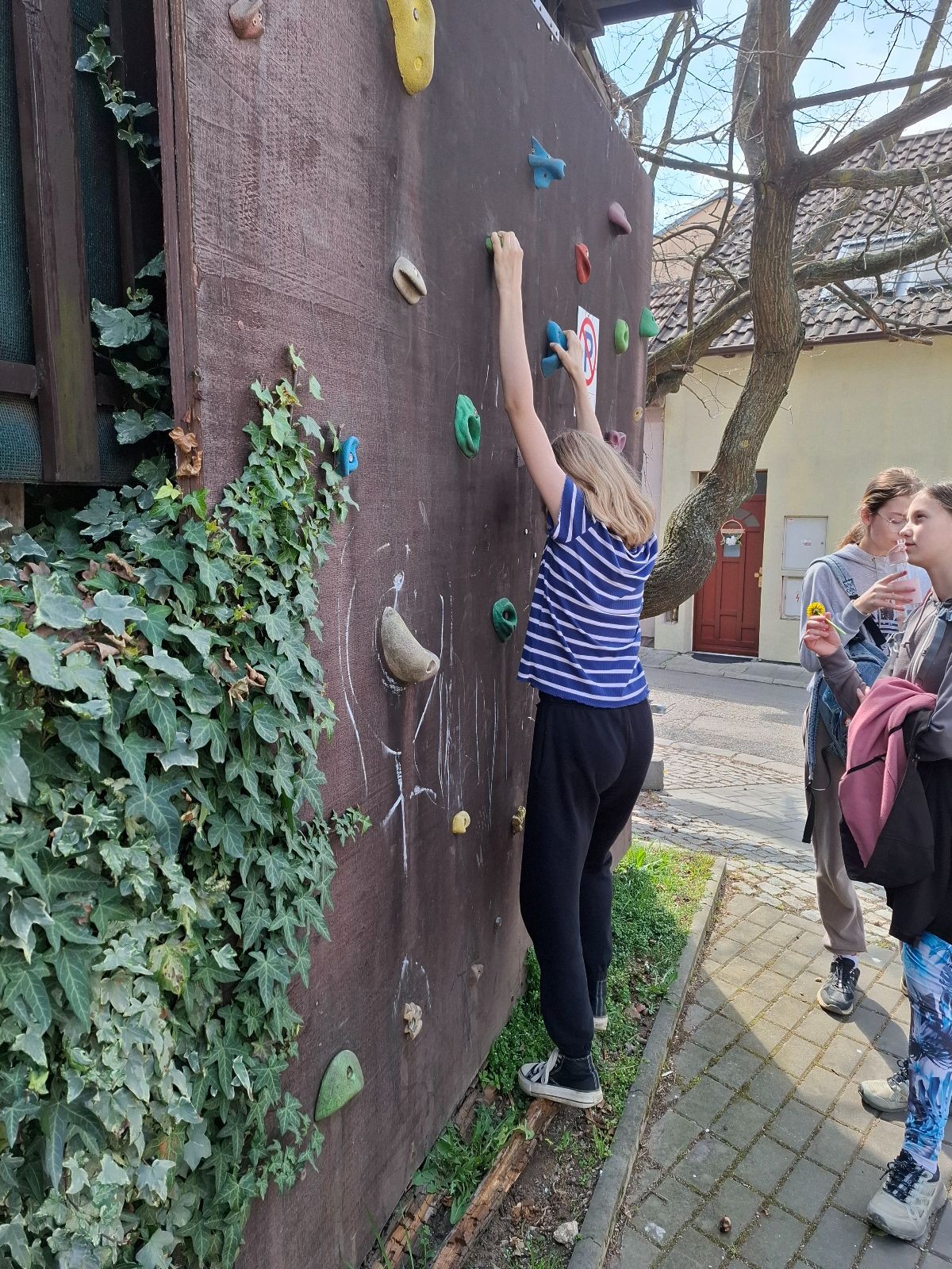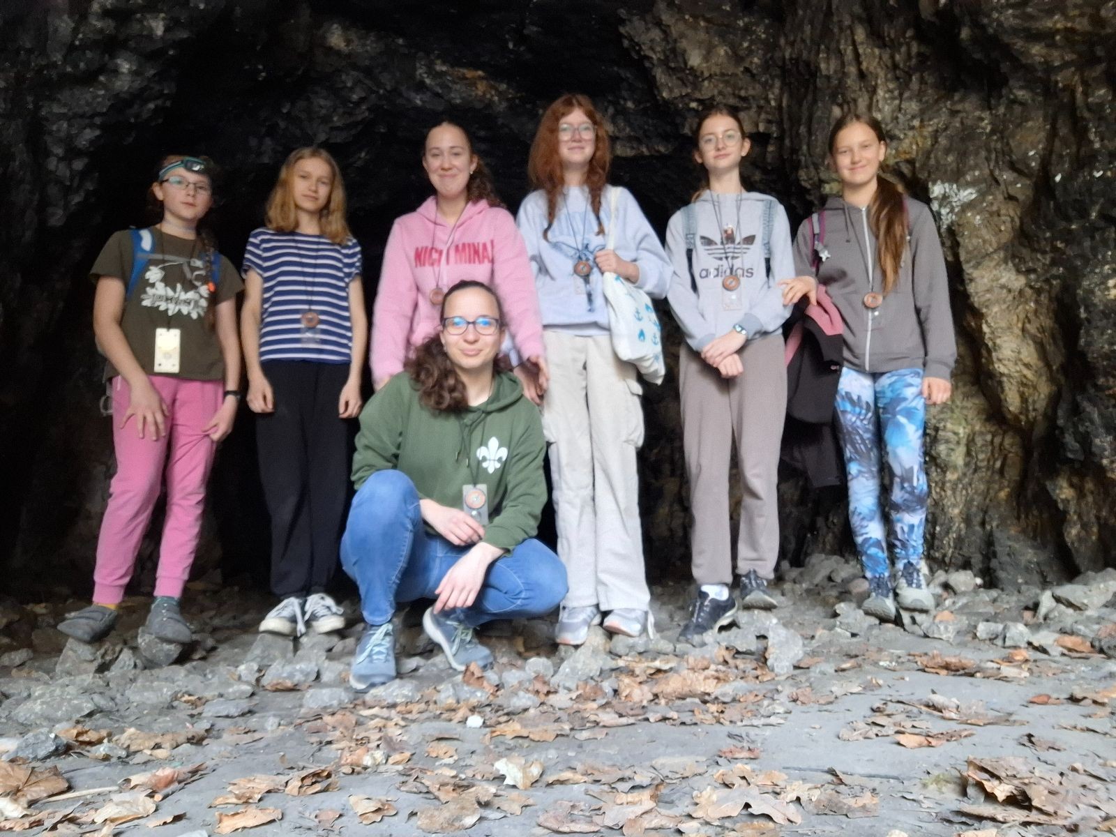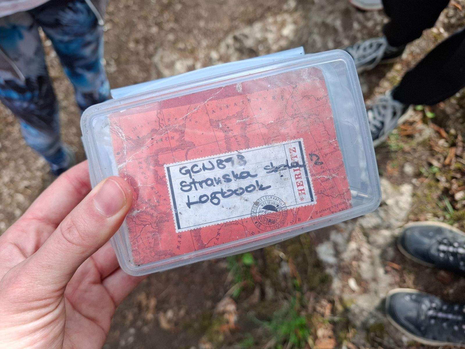 Našly jsme zde podivný temný tunel, který jsme se rozhodly prozkoumat. Všem nám tuhla krev v žilách, když jsme uslyšely v tunelu podivné kroky, teda mně ne, protože to byly právě moje kroky, co všechny vyděsily. Rozhodly jsme se ukončit náš průzkum jeskyně a vydat se na vrchol Stránské skály. Na cestě jsme si vyzkoušely orientaci s buzolou. Dokonce se nám podařilo i najít kešku.