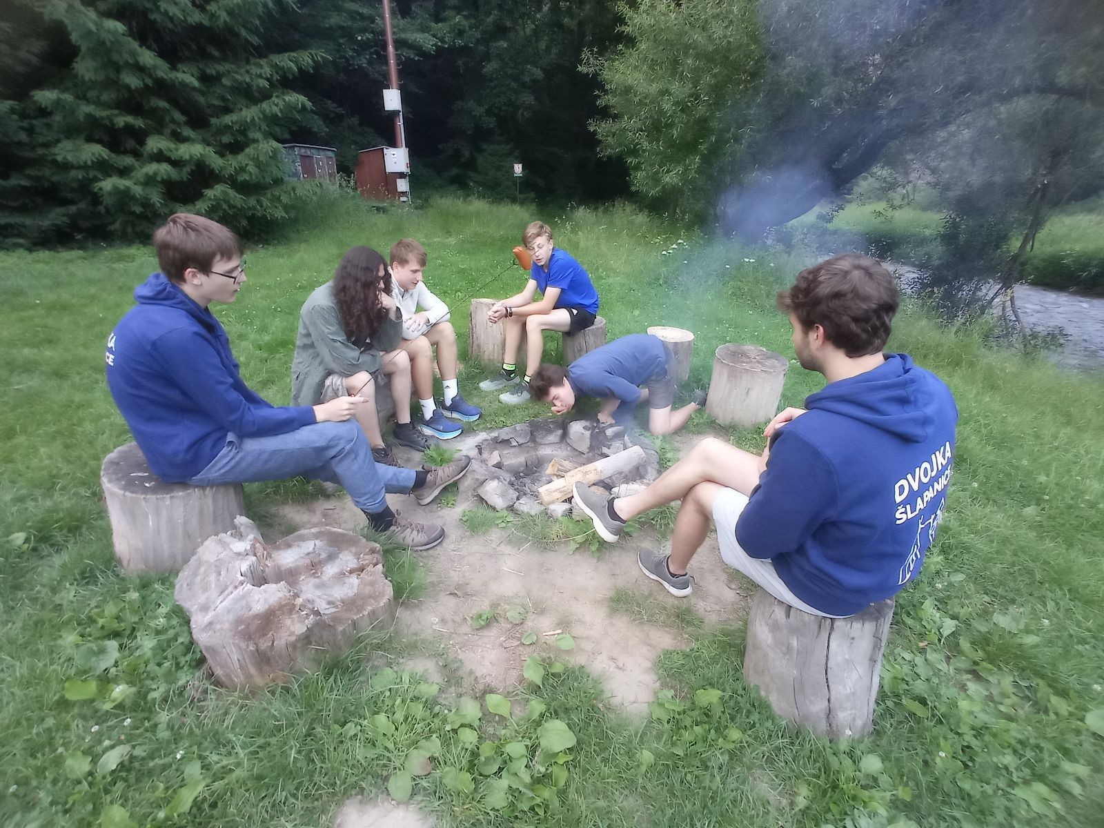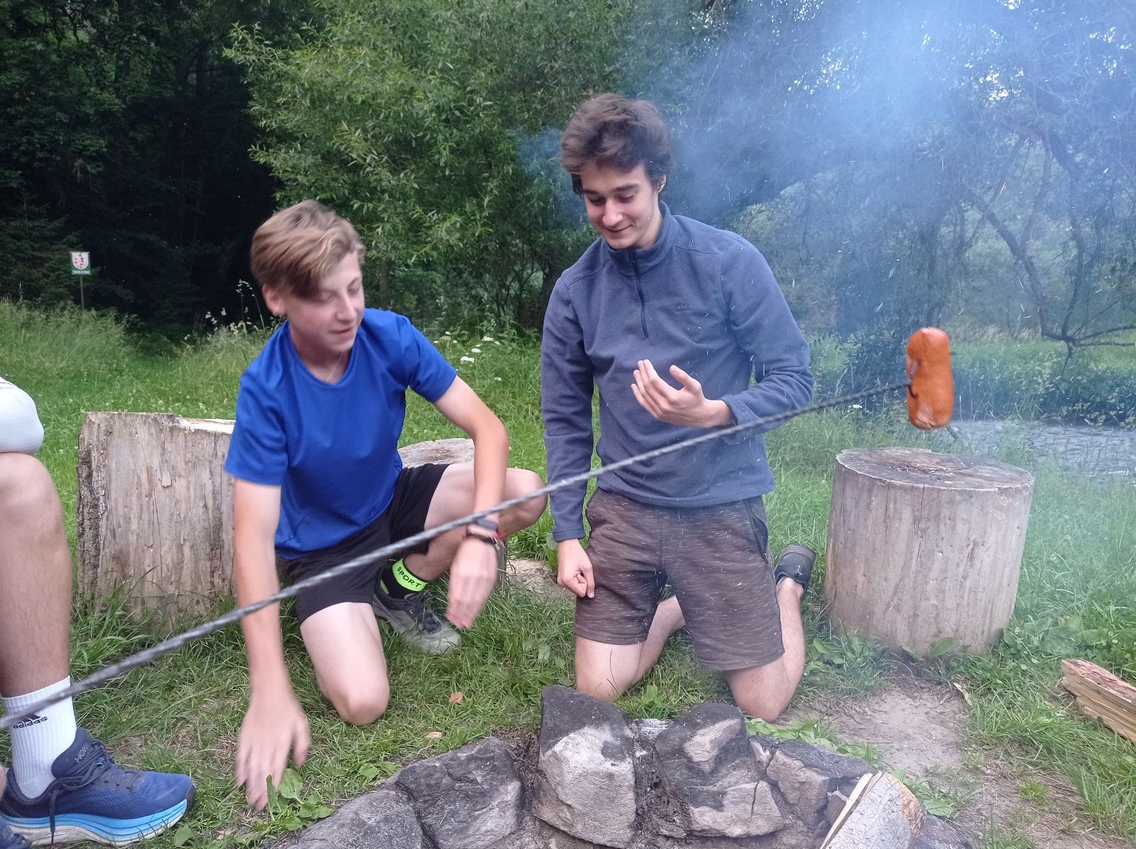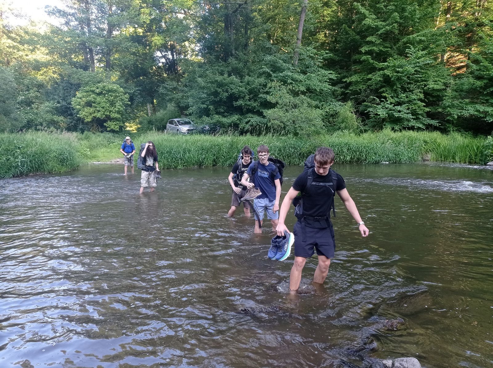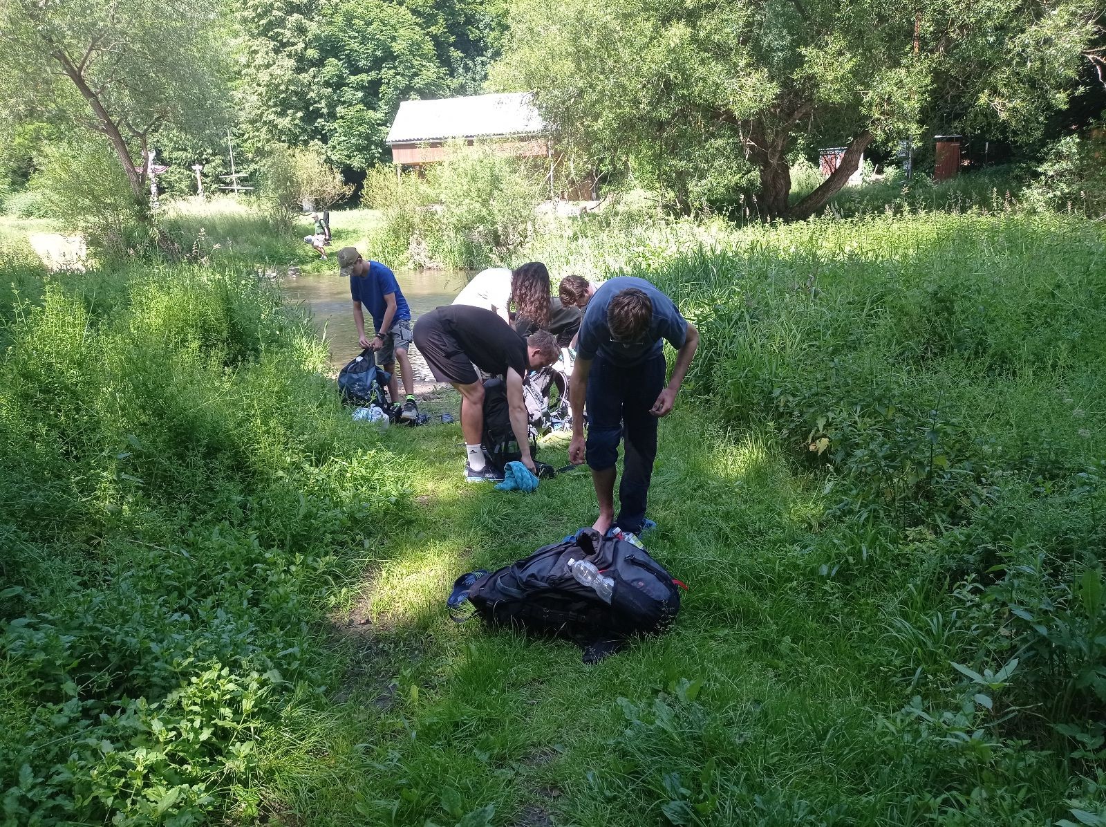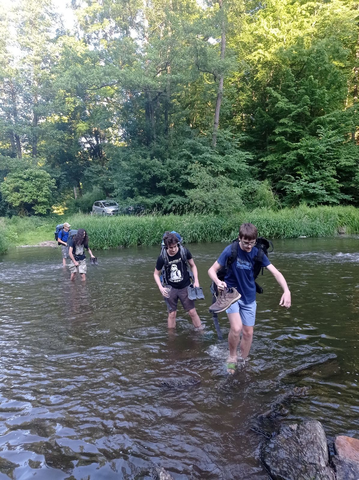 V pátek 13.6. jsme se sešli v 16:00 na zastávce Kalvodova, odkud jsme jeli trolejbusem do Brna, kde se k nám přidal Robin. Pak jsme nasedli na vlak do Tetčic, kde jsme rozdělali první závin, protože jsme ho měli navíc. Poté jsme nasedli na autobus do Senorad, odkud jsme se vydali na chatu pod Ketkovákem. Po cestě jsme zavzpomínali na hospodu Senobike do které jsme každoročně chodili a letos byla zavřená. Také jsme se stavili do kantýny a pokračovali jsme k chatě. Po přebrodění jsme byli kolem sedmé konečně v cíli. Jak jsme došli, tak jsme se šli vykoupat do řeky. K večeři jsme si dali polívku. Po vykoupání jsme rozdělali oheň a chvíli u něho seděli, jak začalo být chladno tak jsme se přesunuli do chatky, tam si zahráli šachy a pak Bang. David tam asi od desíti do dvou luštil nějakou skládací IQ hru a ráno říkal že „Jestli chceš mít klidný spaní tak to nelušti.“ takže ho to asi hodně poznamenalo.