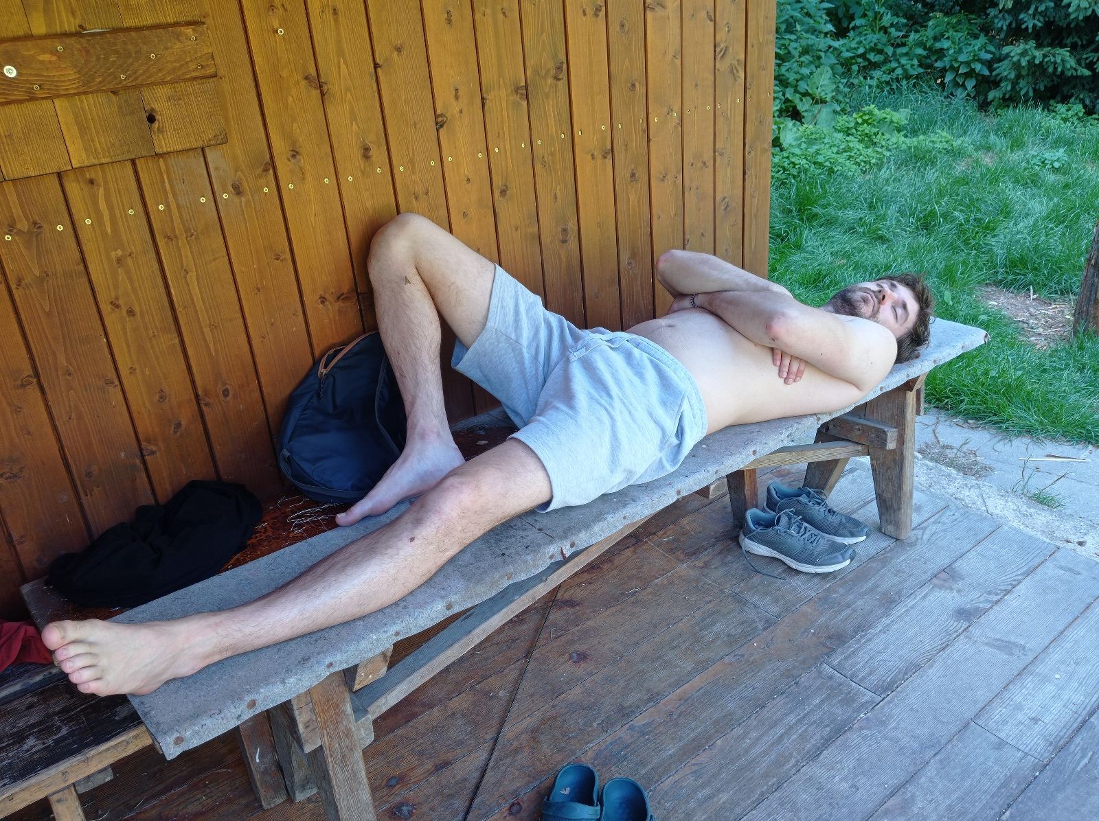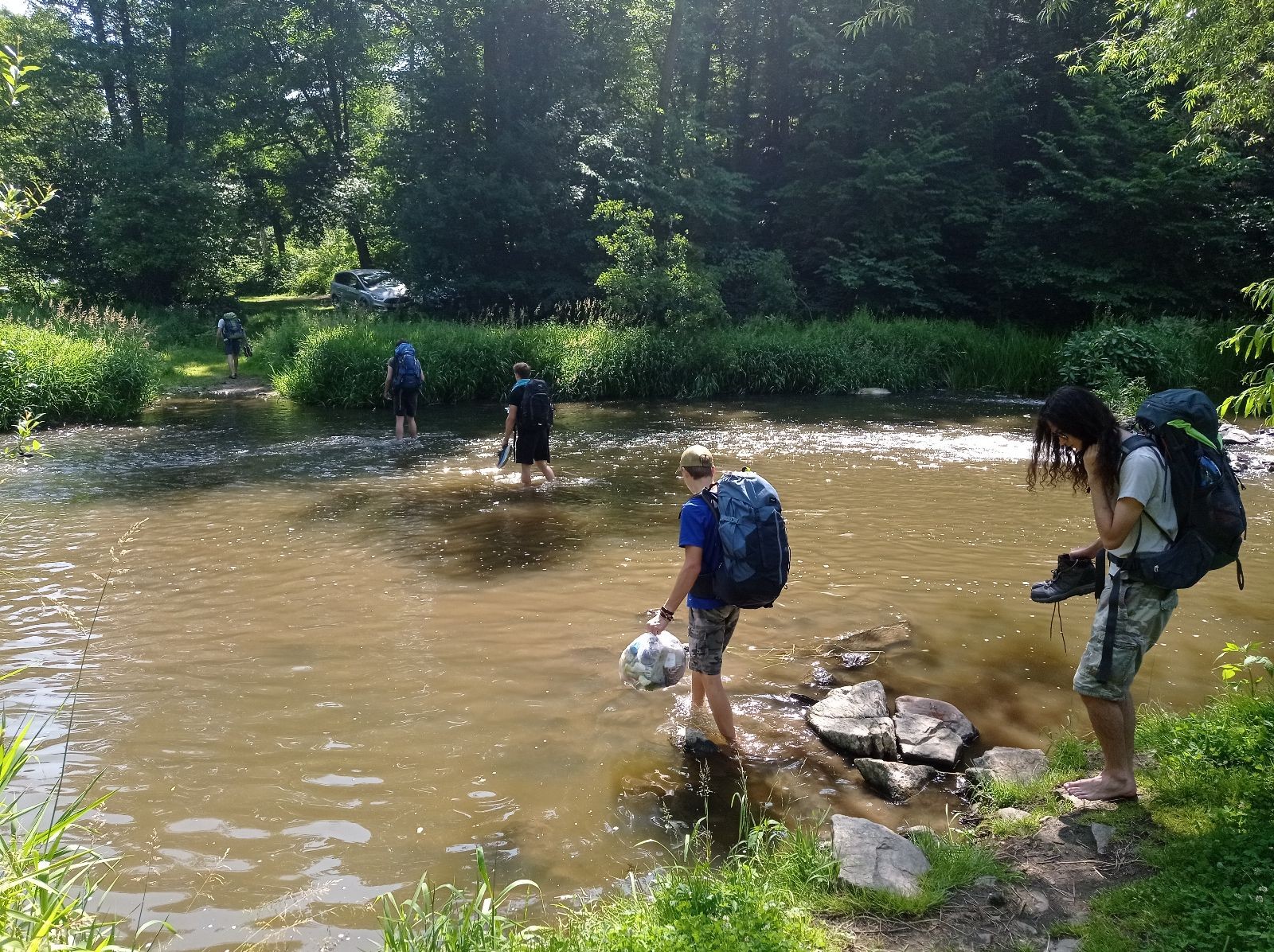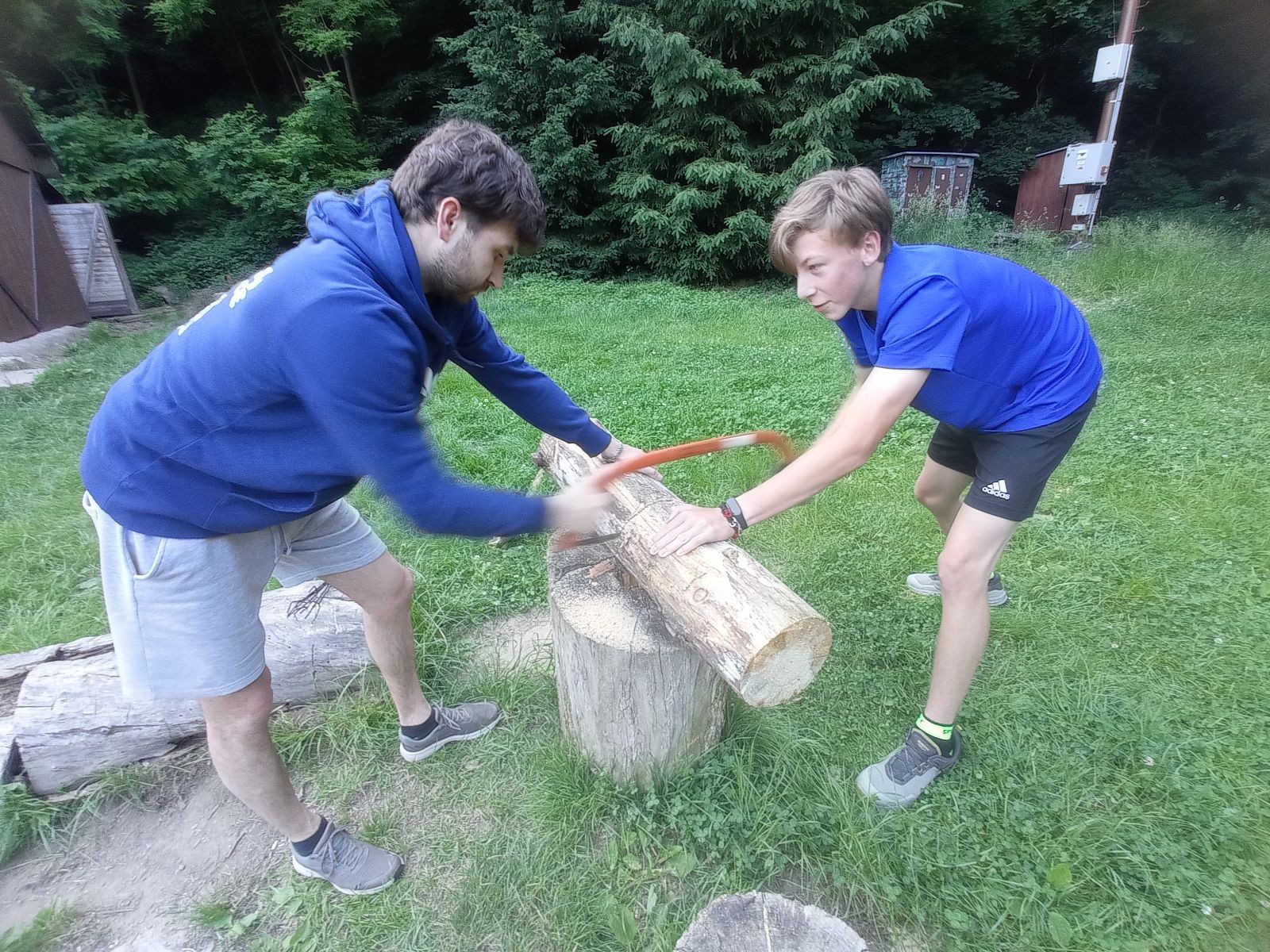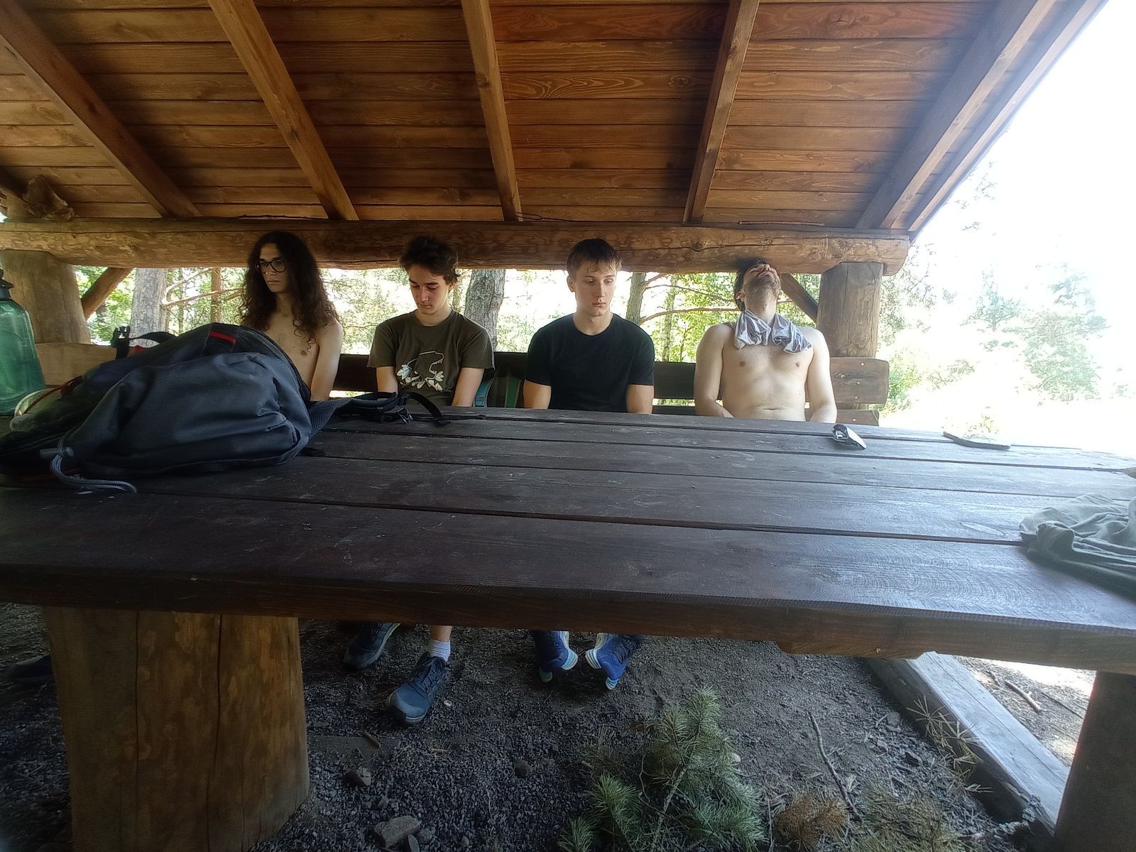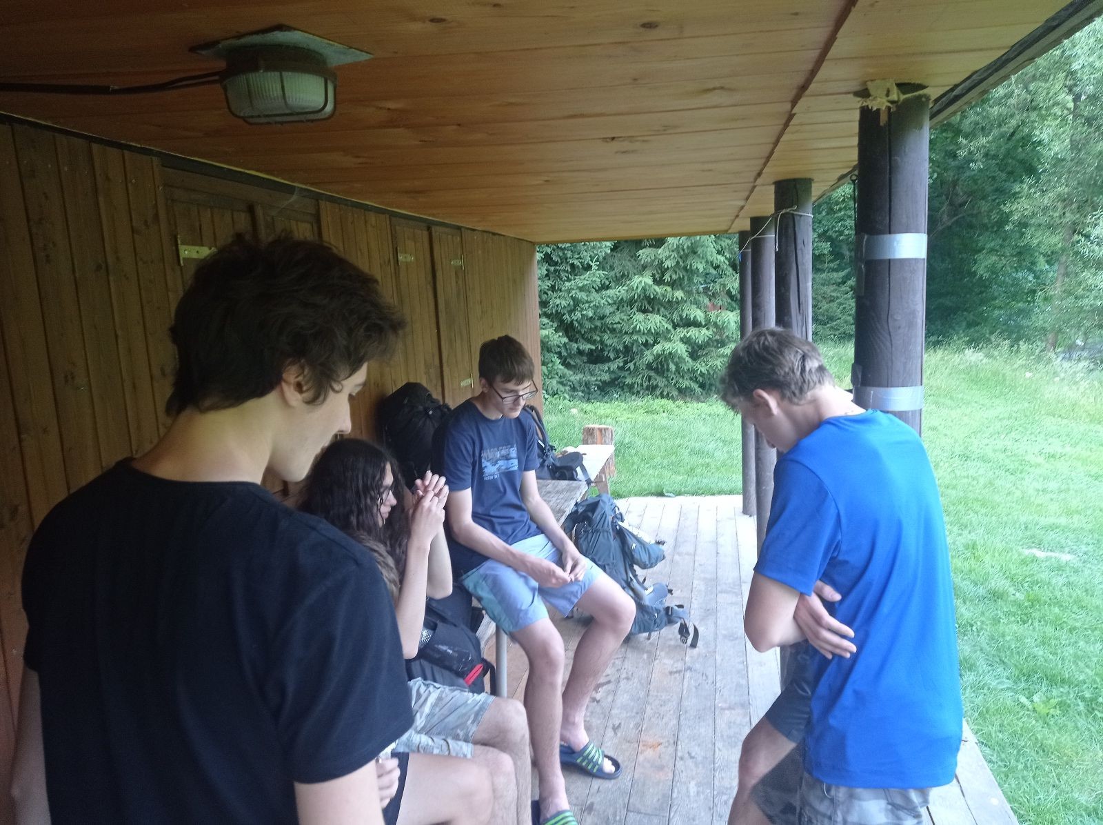 V pátek 13.6. jsme se sešli v 16:00 na zastávce Kalvodova, odkud jsme jeli trolejbusem do Brna, kde se k nám přidal Robin. Pak jsme nasedli na vlak do Tetčic, kde jsme rozdělali první závin, protože jsme ho měli navíc. Poté jsme nasedli na autobus do Senorad, odkud jsme se vydali na chatu pod Ketkovákem. Po cestě jsme zavzpomínali na hospodu Senobike do které jsme každoročně chodili a letos byla zavřená. Také jsme se stavili do kantýny a pokračovali jsme k chatě. Po přebrodění jsme byli kolem sedmé konečně v cíli. Jak jsme došli, tak jsme se šli vykoupat do řeky. K večeři jsme si dali polívku. Po vykoupání jsme rozdělali oheň a chvíli u něho seděli, jak začalo být chladno tak jsme se přesunuli do chatky, tam si zahráli šachy a pak Bang. David tam asi od desíti do dvou luštil nějakou skládací IQ hru a ráno říkal že „Jestli chceš mít klidný spaní tak to nelušti.“ takže ho to asi hodně poznamenalo.