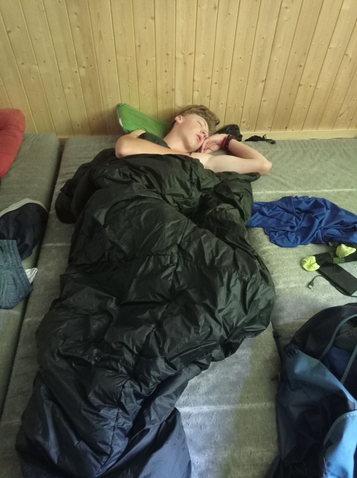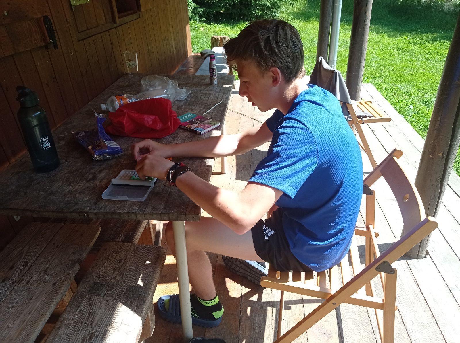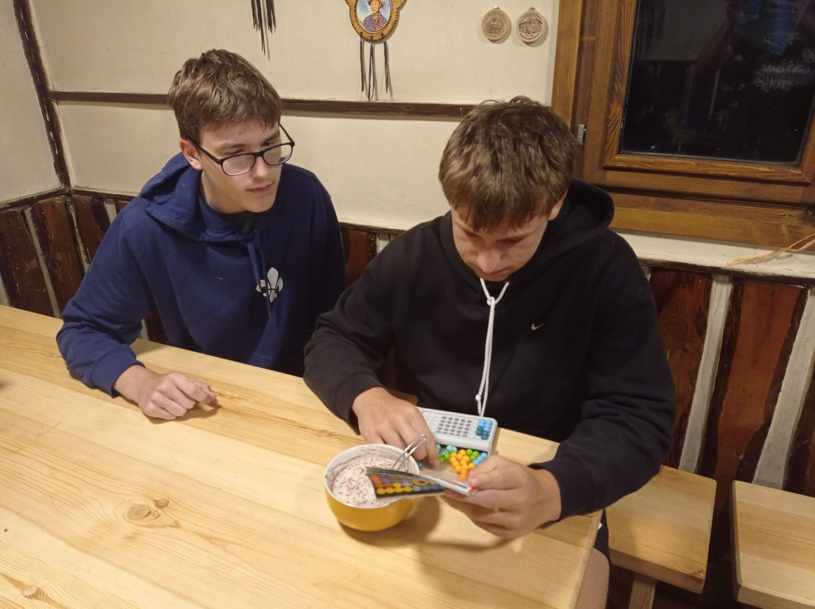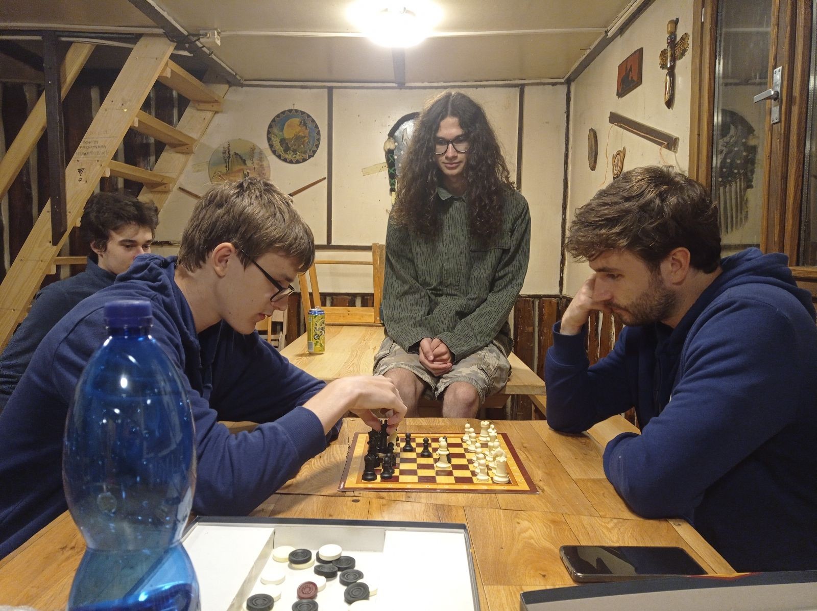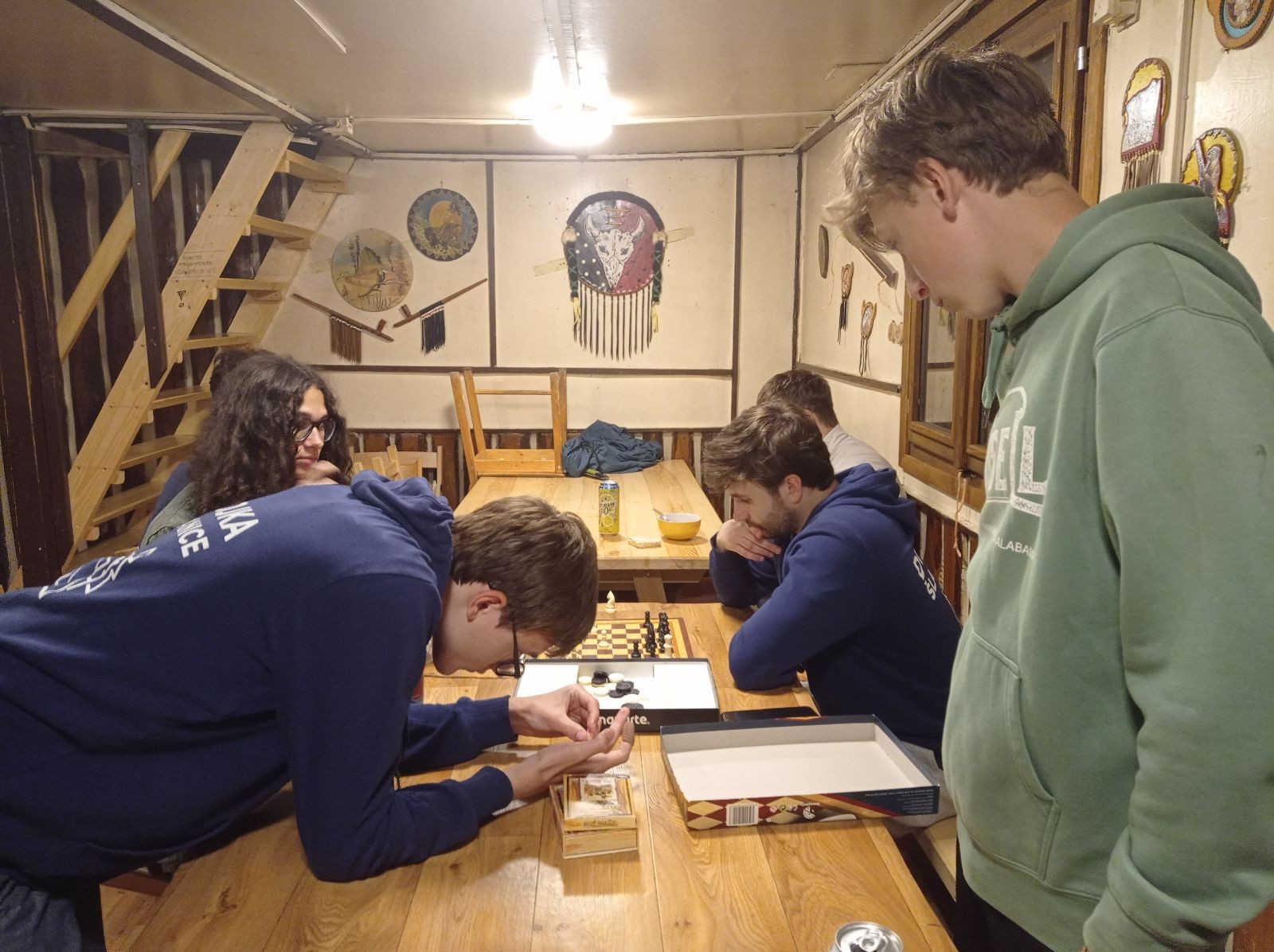 Mezi šestou a sedmou hodinou jsme rozdělali oheň a začali opékat špekáčky. Kolem půl jedenácté jsme se přesunuli do chaty a znovu hráli šachy a Bang. Tentokrát jsme to docela protáhli a šli jsme spát až o půl druhé ráno.