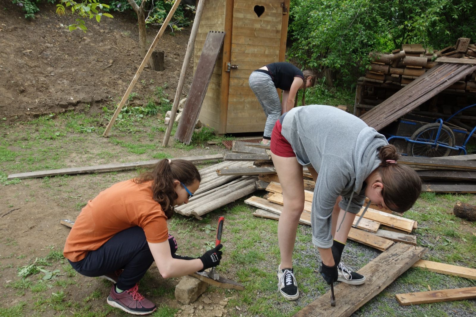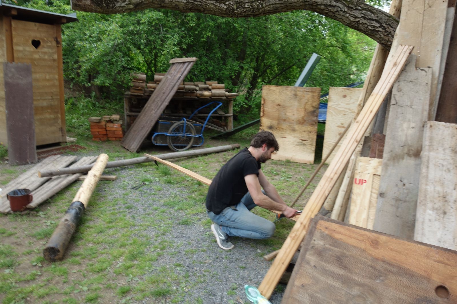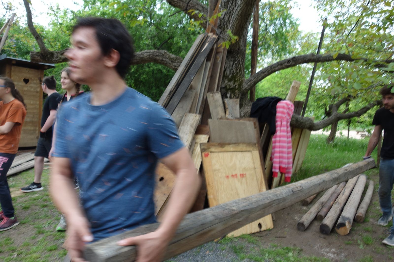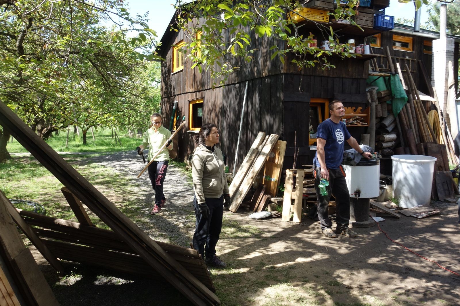 Dlouho dopředu plánovaná akce konečně proběhla. Faktem je, že starý podsadovník na půdorysu 3x3 metry se stavěl kdysi koncem 90. let. Jak přibývalo táborového vybavení, časem k němu bývalí členové Eda, Kartáček a spol. přistavěli první přílepek široký něco přes metr. Chvíli to stačilo, ale před nějakými pěti lety se přistavovalo znovu. Druhý přílepek měl něco kolem dvou metrů, smontovala ho dvojčata Hodkovic z dřevotřískových ploten, které nám věnoval kamarád Ondra Libus. Vzhledem k tomu, jak dynamicky nám roste členská základna, ani ten dlouho nestačil a vybavení se skladovalo, kde to šlo. Neúnosná situace.