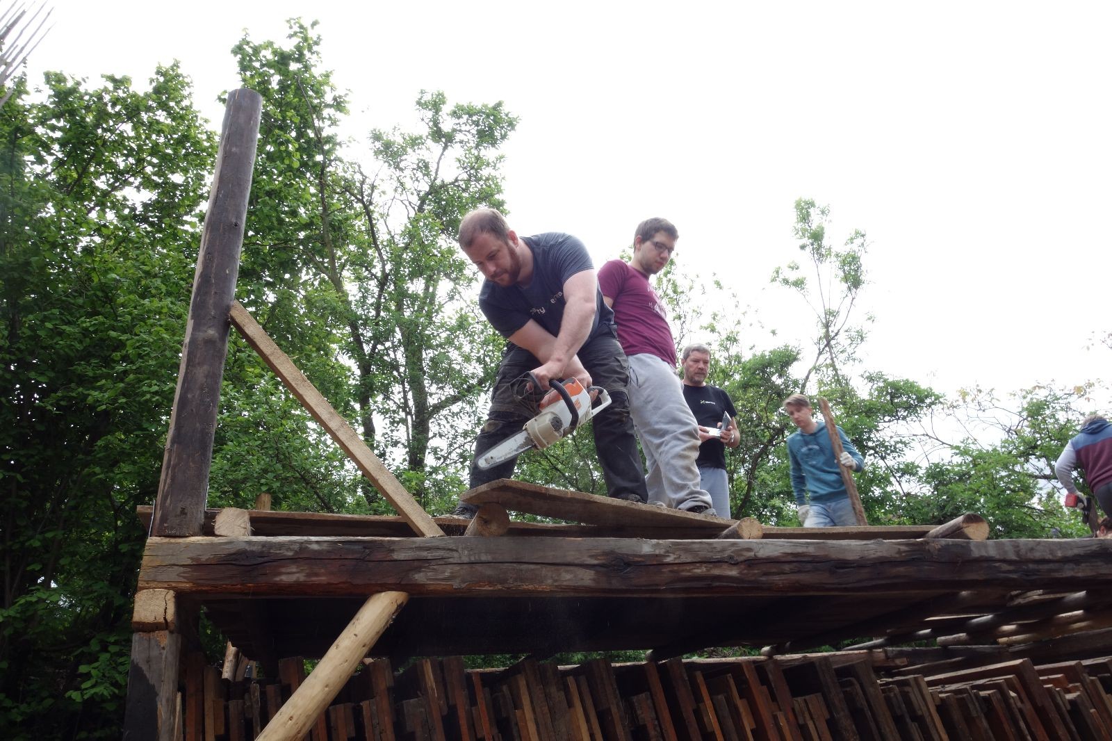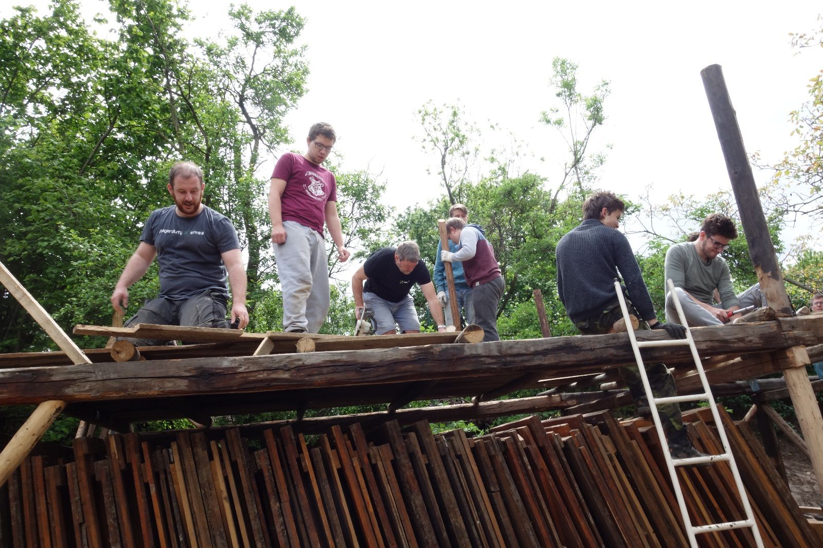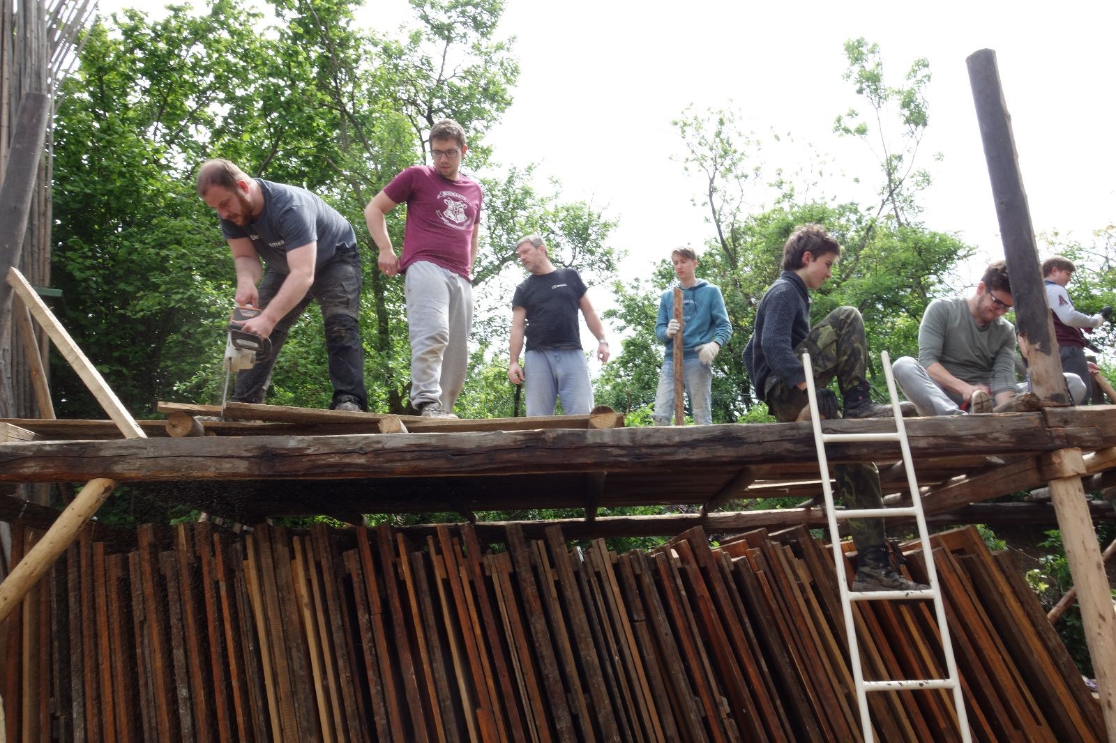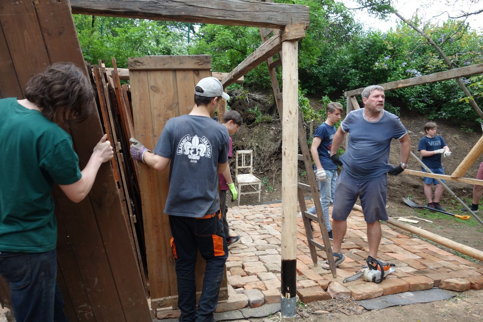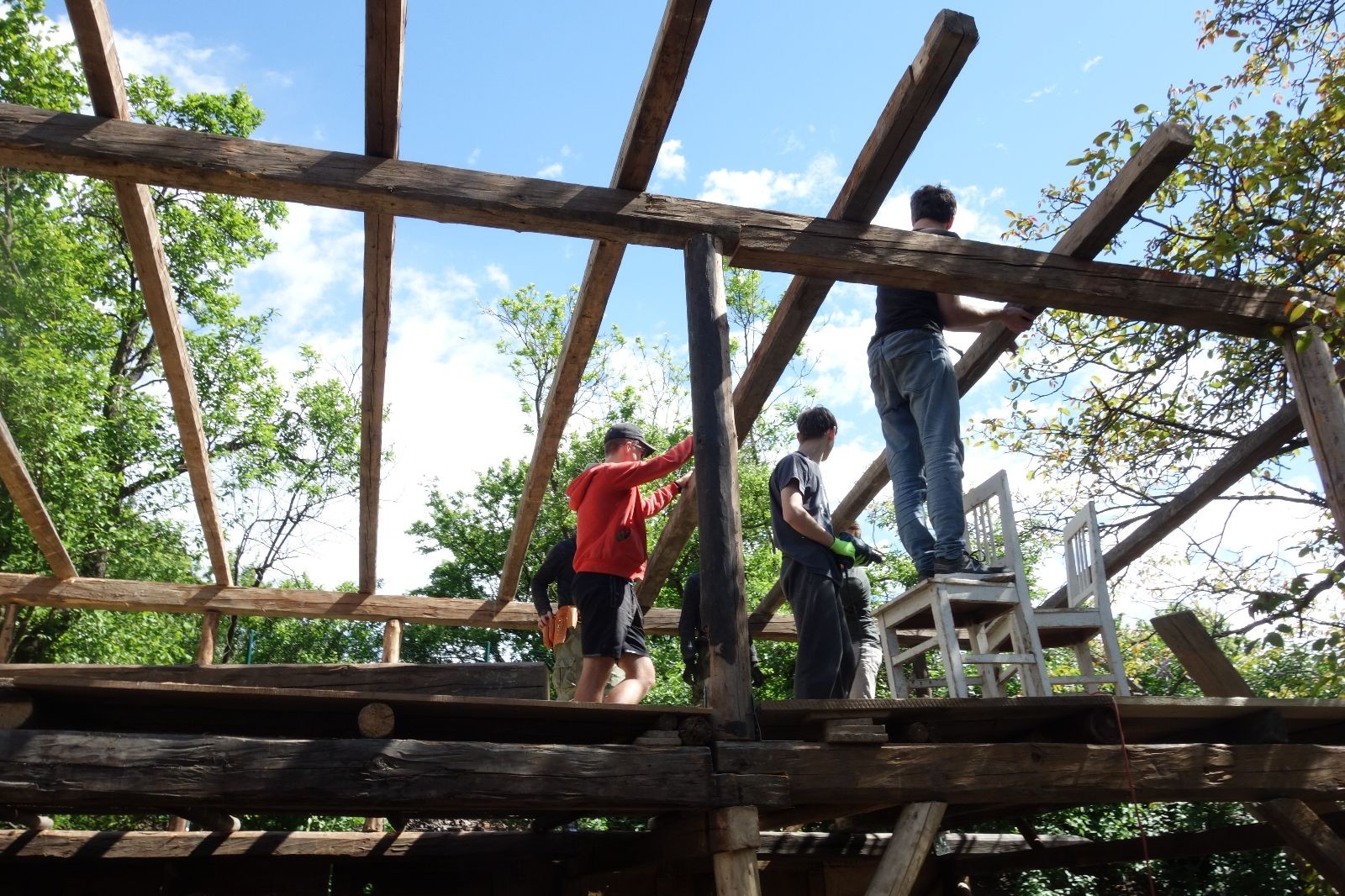 Je skvělé mít v oddíle tak schopný a motivovaný pracovitý tým starších členů a vedoucích. Stejně skvělé je mít podporu sponzorů ať už je to zmíněná firma Bravo Europa, která nám věnovala plechy na střechu, stavební firma Tomáš Winkler, která nám plechy dovezla, nebo třeba kamarád Buťa, který nám zapůjčil veliký vozík za auto na převoz trámů. Bez těchto lidiček by žádný nový podsadovník nebyl. Díky všem!