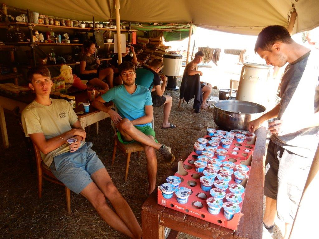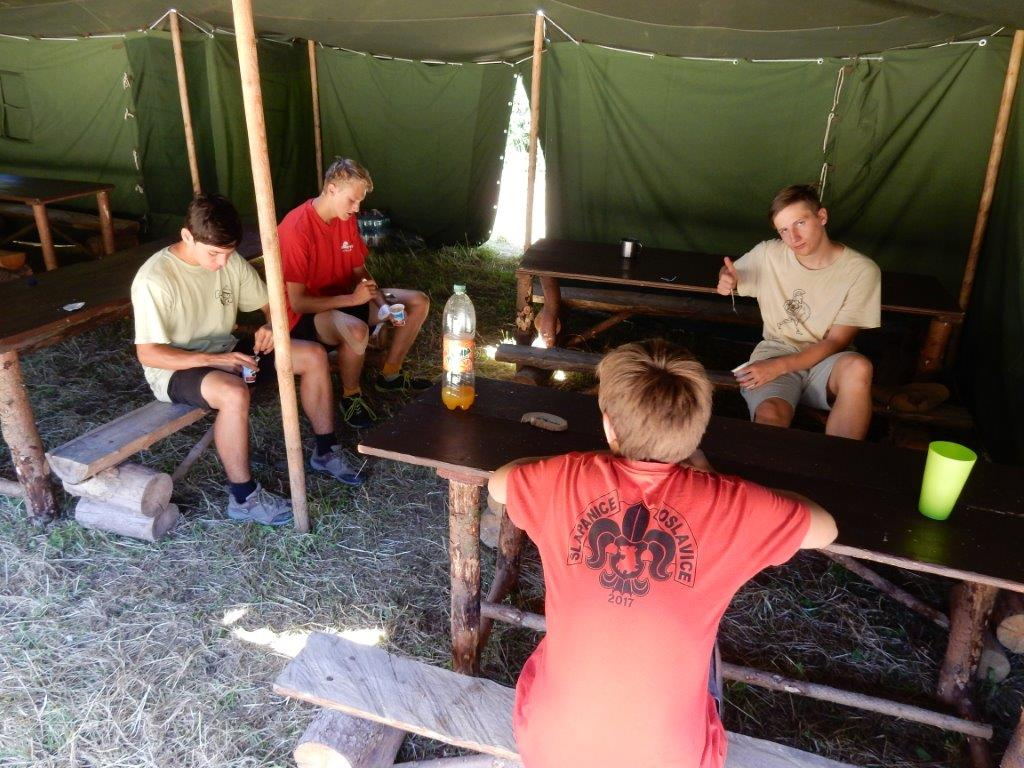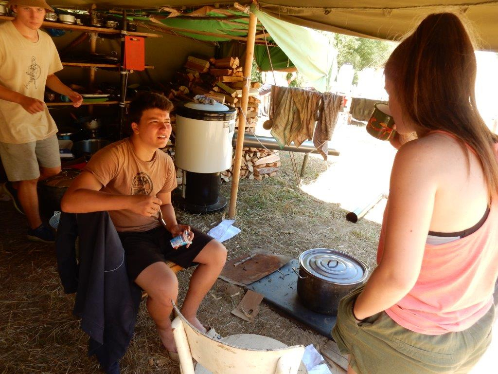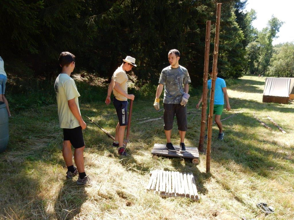 Tento den by se dal nazvat dnem společných prací. Na poradě večer se všichni rozdělili do pracovních skupin a po snídani se mohli pustit do práce. Kodo, Kaša a spol stavěli bránu, Džany, Brácha a spol se věnovali sprše, Corado se svojí skupinou chystal ohniště a zahajovací oheň, Babů, Hihňa a Kiki se svými pomocníky svázaly sušárny, Kanec si vzal na starost hřiště na volejbal a hřiště na fotbal, Petr se svojí skupinou sestavil hrnkovníky a ešusovník, Lentil a spol vykopali sklep a odpadovku a Kloub s Kosťou zavěsili nástěnky a vykopali flusjámu. O jídlo se starali Fuf s Roxym a my dva s Uzlem obstarali nákupy a zprovoznili brutar. Odpoledne pak zejména mladší dokončovali svoje týpí a postele v nich, starší relaxovali. Pohoda na palubě trvá a všichni se už těší na zítřek na koupačku ... Jura