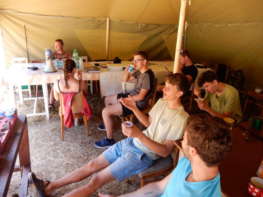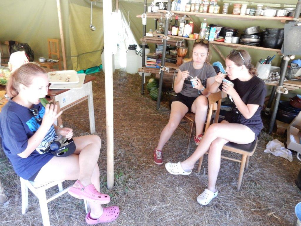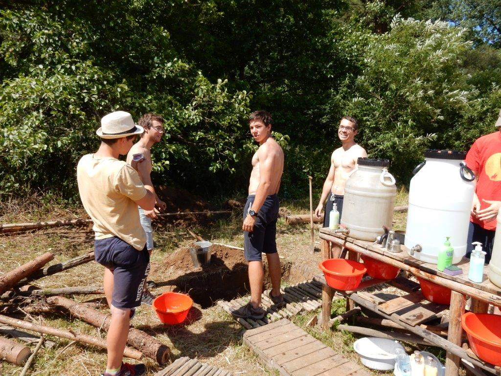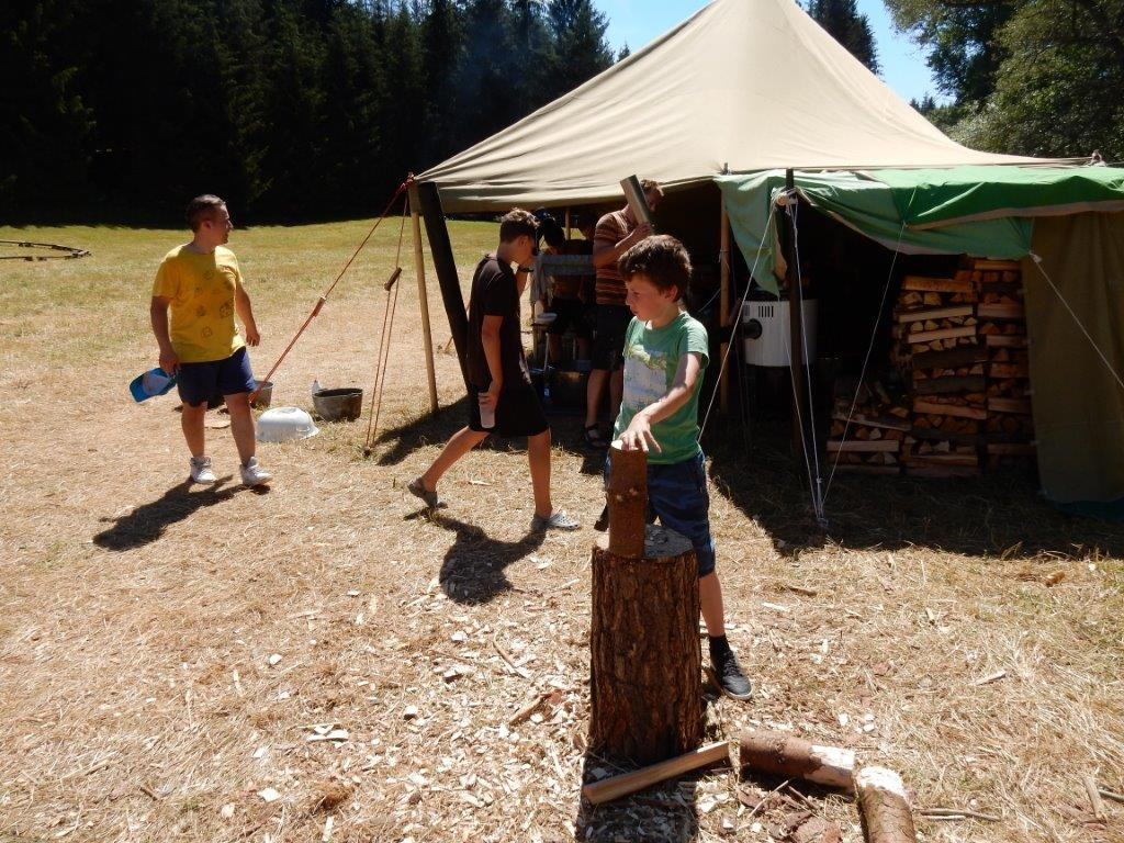 Tento den by se dal nazvat dnem společných prací. Na poradě večer se všichni rozdělili do pracovních skupin a po snídani se mohli pustit do práce. Kodo, Kaša a spol stavěli bránu, Džany, Brácha a spol se věnovali sprše, Corado se svojí skupinou chystal ohniště a zahajovací oheň, Babů, Hihňa a Kiki se svými pomocníky svázaly sušárny, Kanec si vzal na starost hřiště na volejbal a hřiště na fotbal, Petr se svojí skupinou sestavil hrnkovníky a ešusovník, Lentil a spol vykopali sklep a odpadovku a Kloub s Kosťou zavěsili nástěnky a vykopali flusjámu. O jídlo se starali Fuf s Roxym a my dva s Uzlem obstarali nákupy a zprovoznili brutar. Odpoledne pak zejména mladší dokončovali svoje týpí a postele v nich, starší relaxovali. Pohoda na palubě trvá a všichni se už těší na zítřek na koupačku ... Jura