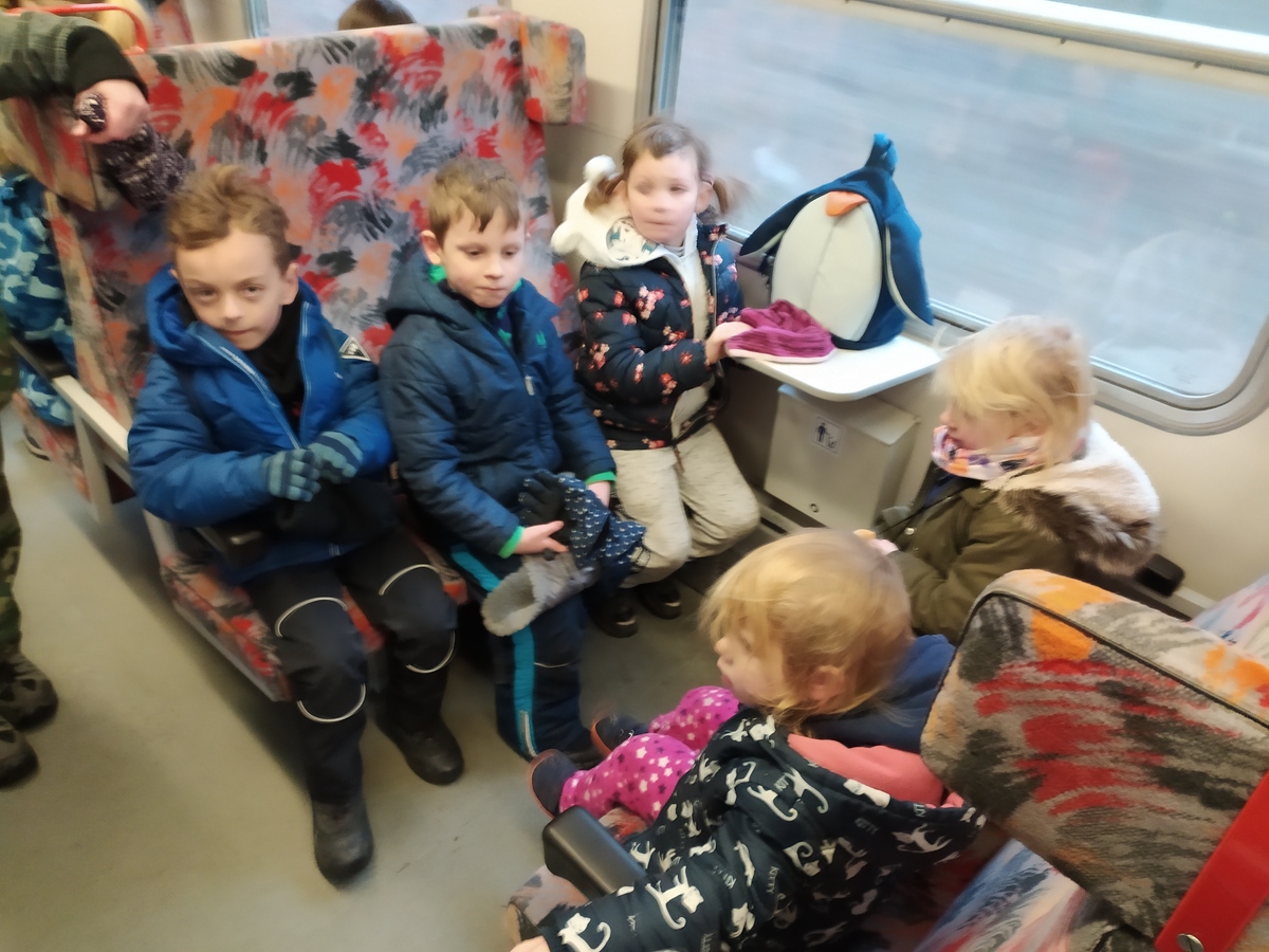 Na vlakové zastávce při čekání na vlak na nás začal padat sníh. V Chrlicích na nádraží jsme viděli Perníkovou chaloupku i s ježibabou. Vlak nás dovezl do Brna na hlavní nádraží. Taky jsme předali Matyho mamince, protože spěchali na oslavu narozenin. A my ostatní jsme jeli trolejbusem domů. Dokonce jsme stihli dřívější trolejbus. Tady už na nás čekali rodiče a my se rozloučili a spěli jsme domů.