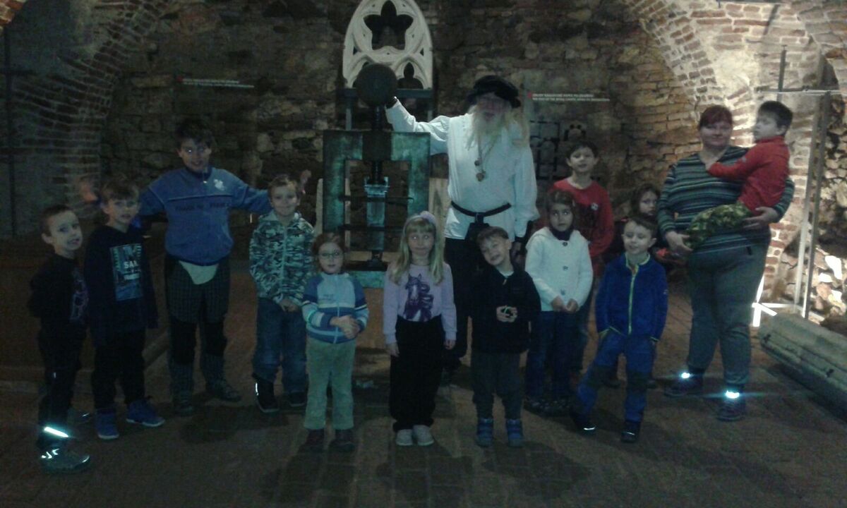 Je osm hodin a scházíme se na konečné trolejbusu. Fí vybírá lístky a čekáme na spoj, který nás odveze do Brna. Je nás celkem hojný počet na to, jaký je ošklivý počasí. Jirka, Matěj, Míša, Ondra, Mia, Tomík, Verča, Malvínka, Max a Patrik. Z Vlků již tradičně naši dva "pomocníci" František a Davson. Po hodině a půl v MHD vystupujeme u hvězdárny. Děti se moc těší co je tam vlastně vůbec čeká. Ke koupeným lístkům dostáváme svítící náramky na ruku, to abychom se v té vesmírné tmě nebáli. Koukáme na nejznámější souhvězdí a planety a pak následuje film Robinsonka. Moc hezky udělaný. Po představení jdeme do suterénu, kde si prohlížíme různé mlhoviny a u jedné, té nejkrásnější, se fotíme. Po svačině jdeme zase na MHD a míříme tentokrát do mincmistrovského sklepa. Máme chvíli čas, koukáme na betlém a na různá dřevěná zvířata. V jednu hodinu se dostáváme na prohlídku sklepení. Pan mincmistr zkrátí povídání na ty nejzajímavější věci, protože historie by těm našim Svištíkům moc neřekla. Koukáme do studny, na vězení, na úzký vchod do sklepa a samozřejmě nás nejvíce zajímá výroba mincí. Tu nám ukazuje mincmistr. Krásné a zajímavé! Čas rychle utíká, je čas koupit si malý suvenýr pro maminku nebo tatínka. Po cestě na hlavas se ještě jdeme podívat na opravdového brněnského draka a kolo s krokodýlem, kde si vyprávíme pověsti a nakonec se vracíme do Šlapanic. Těšíme se na další putování po Brně, tentokrát do kapucínského sklepa a na vánoční trhy. Fí a Mony